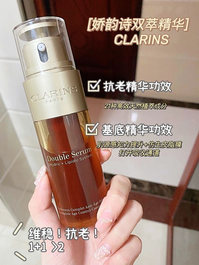 本篇笔记关联了CLARINS/娇韵诗 黄金双萃赋活精华液 御龄紧致抗皱抗老淡纹保湿修护轻感 第八代经典款等商品,为用户提供真实的使用体验和购买参考。