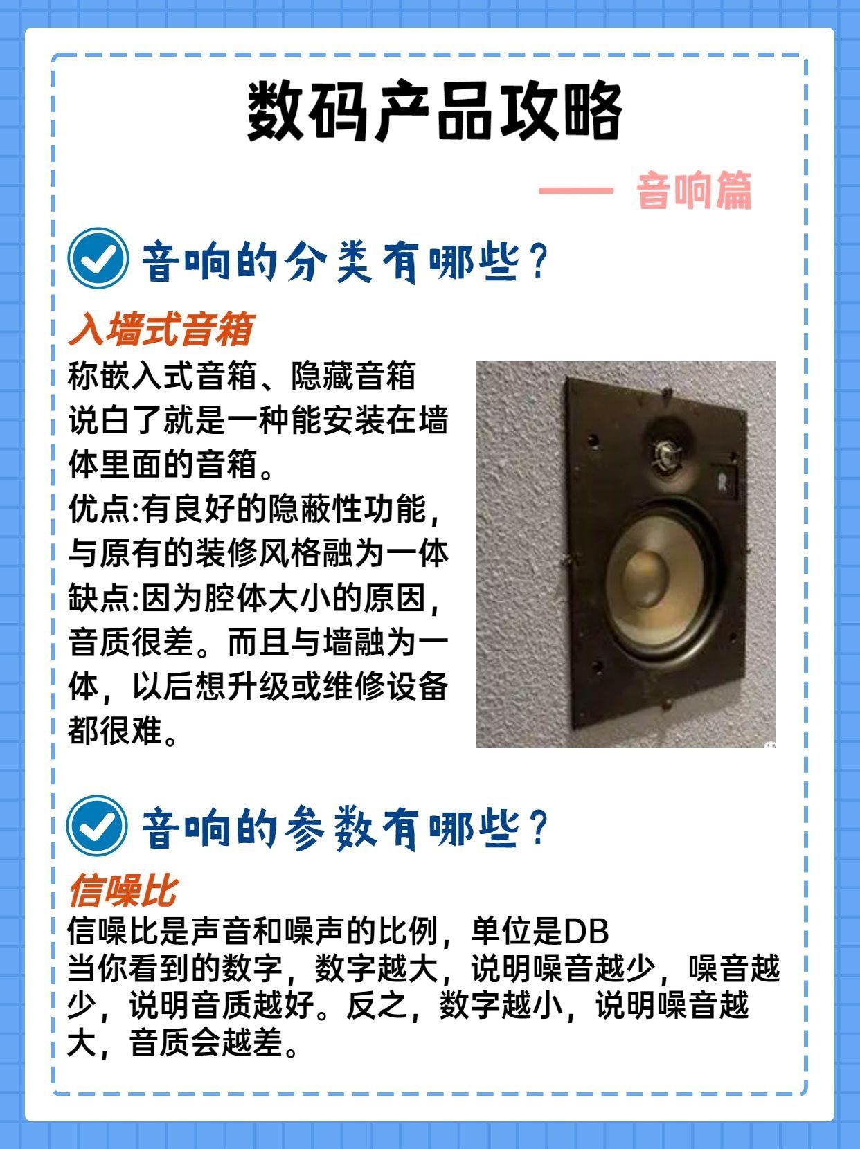 🐒随着科技的快速发展,现在音响的市场也是花样百出,从大家最早见到的落地音响,再到现如今的蓝牙音响,甚至是吸顶音响…… ~~~ 最近有朋友来问我,自己想趁着给房子装修,来给客厅安排一个音响📦,究竟如何选择? 下面来给大家写一篇选购干货—音响篇✍🏻 ♦️♦️♦️♦️♦️ ⭐ 1-首选去明确音响分类 ·吸顶音箱:适合客厅,卧室或是全屋音响因为足够隐藏,所以做到了节省空间,也能适应各种装修风格 ·传统落地...