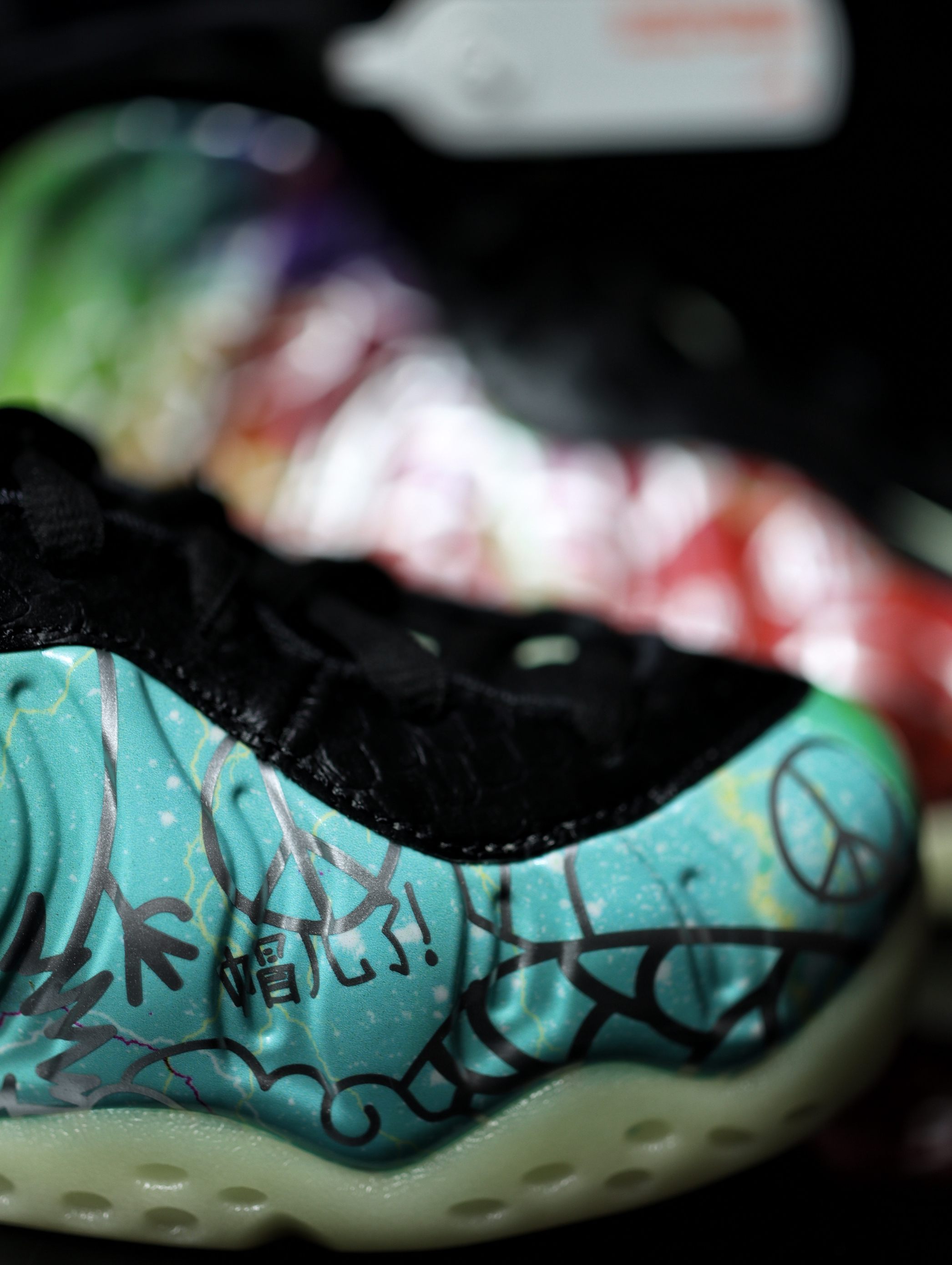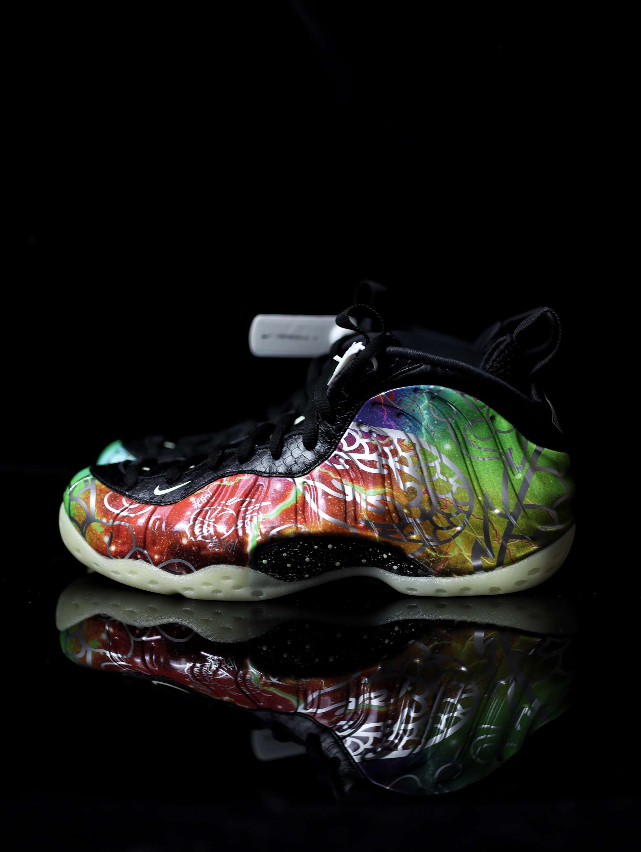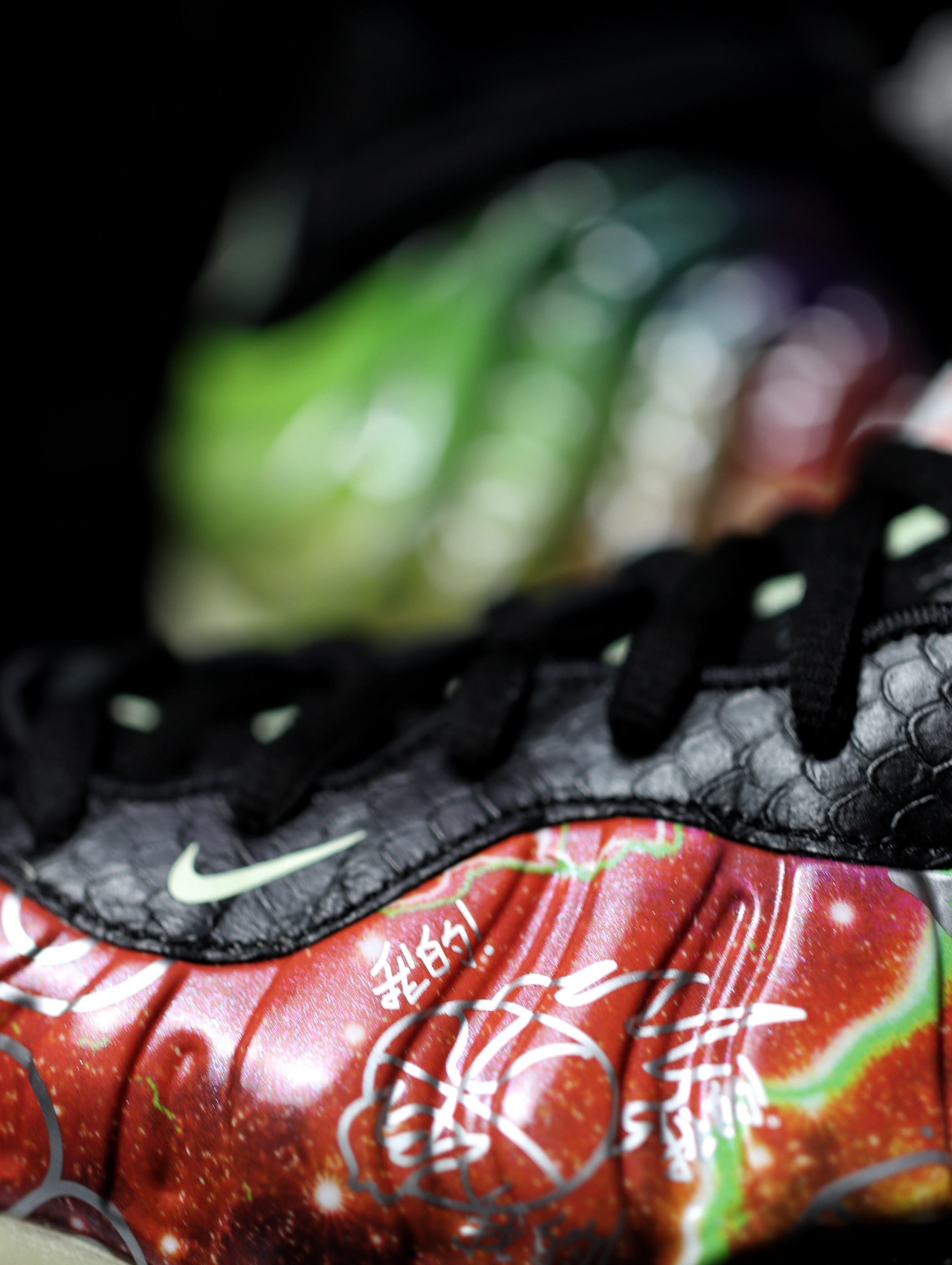 鞋款名称:Nike Air Foamposite One "Beijing" 北京 喷泡 鞋款介绍:鞋子的整体给人一种非常骚气的感觉,但是仔细看细节你会看到鞋子带来的细节,中国风的祥云,龙鳞,还有最具代表性中国文化的“古往今来,上下四方”的字眼,左脚内侧有着“帽儿,我的我的”京味十足,夜光大底的设计,将鞋子的整体细节拉满,这么好看的一双喷泡你心动了吗!!