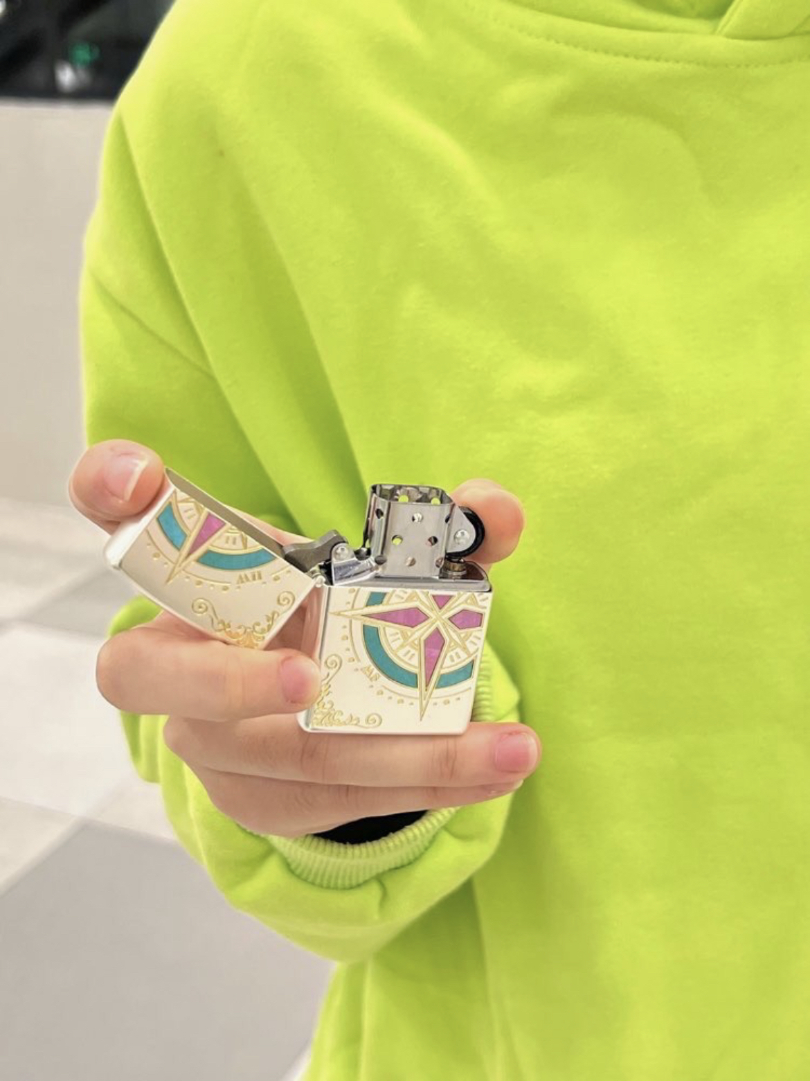 低调出街的酷酷女孩,鲜绿的卫衣搭配工装裤简直不要太帅! 再加上闺蜜送的这款颜值超高的ZIPPO粉绿罗盘打火机✨!居然还可以作为拍照的时尚单品📸,简直不要太好搭,真的好出片呀! 喜欢的姐妹们也可以买来自己收藏! 不知道给对象送什么礼物的姐妹也可以🐴码住!送礼非常拿得出手!粉绿的罗盘直接宣示主权!🐛 图片来源于网络侵删