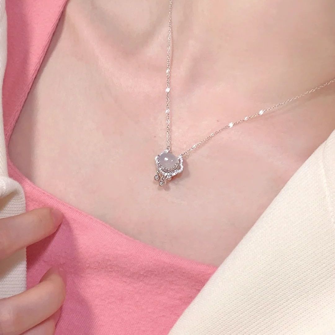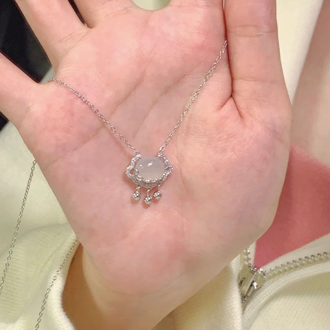 被问了很多次链接的项链~ 清透的白玉髓镶嵌在祥云上,搭配好温柔~ 上面的小碎钻特别闪 小小一个很精致✨ 下面的小流苏灵动又优雅,👀敲好看! 寓意很好哦,平安锁守护平安~ 一年四季都可以戴 图源网络侵删