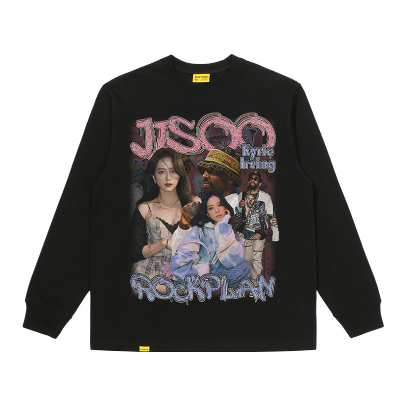本篇笔记关联了摇滚计划 欧美复古vibe球星欧文&金智秀JISOO美式印花水洗纯棉圆领套头长袖T恤 男女同款 A2422 黑等商品,为用户提供真实的使用体验和购买参考。