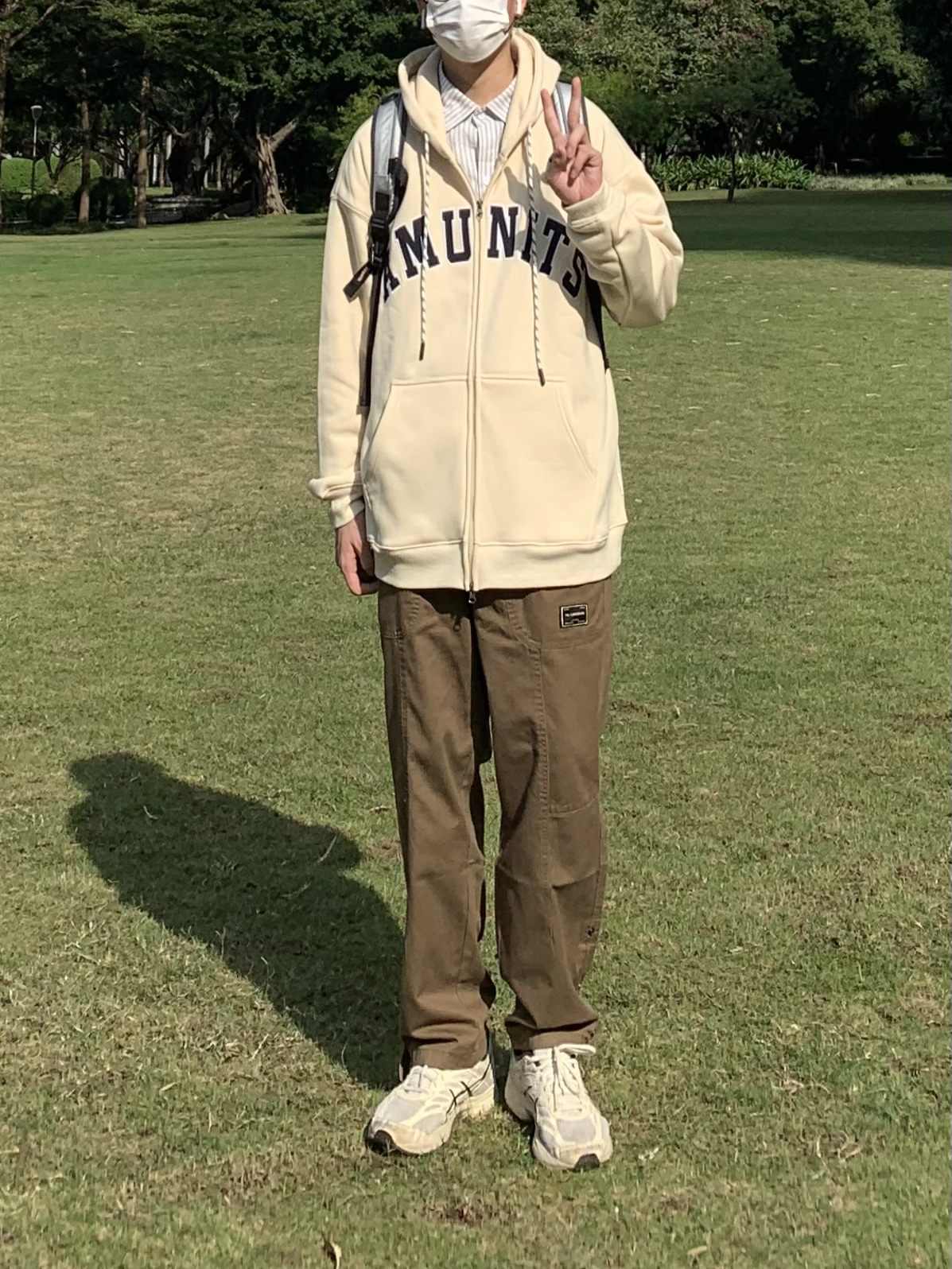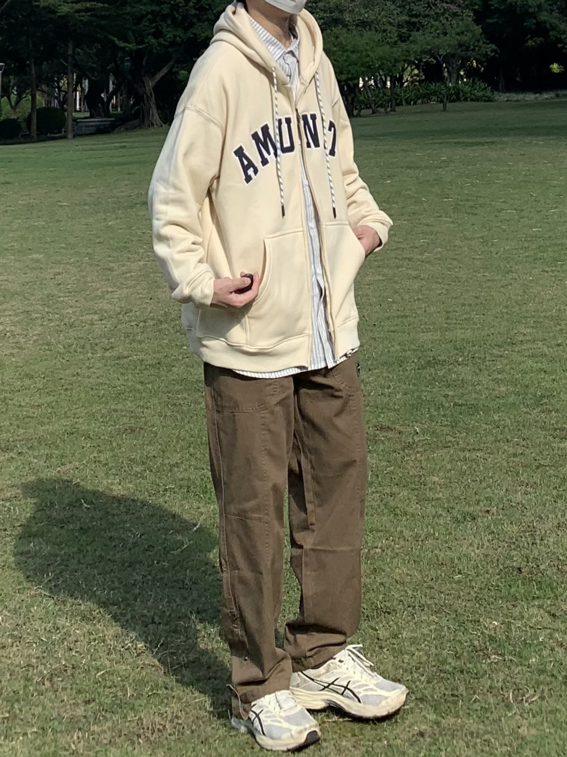 暖色秋冬在秋冬搭配里占据着不可缺少的地位 上身:卡其色卫衣 双拉链的设计搭配性很高 经典字母撞色印花日常休闲穿都很合适 很喜欢抽绳处的小细节 下身:休闲直筒裤 棕色在秋冬穿太适合了 可调节的裤腿抽绳 宽松版型不会挑人 面料厚度在南方也足够过冬了 鞋:亚瑟士 ⬆️清水町SMZD ⬇️KGK