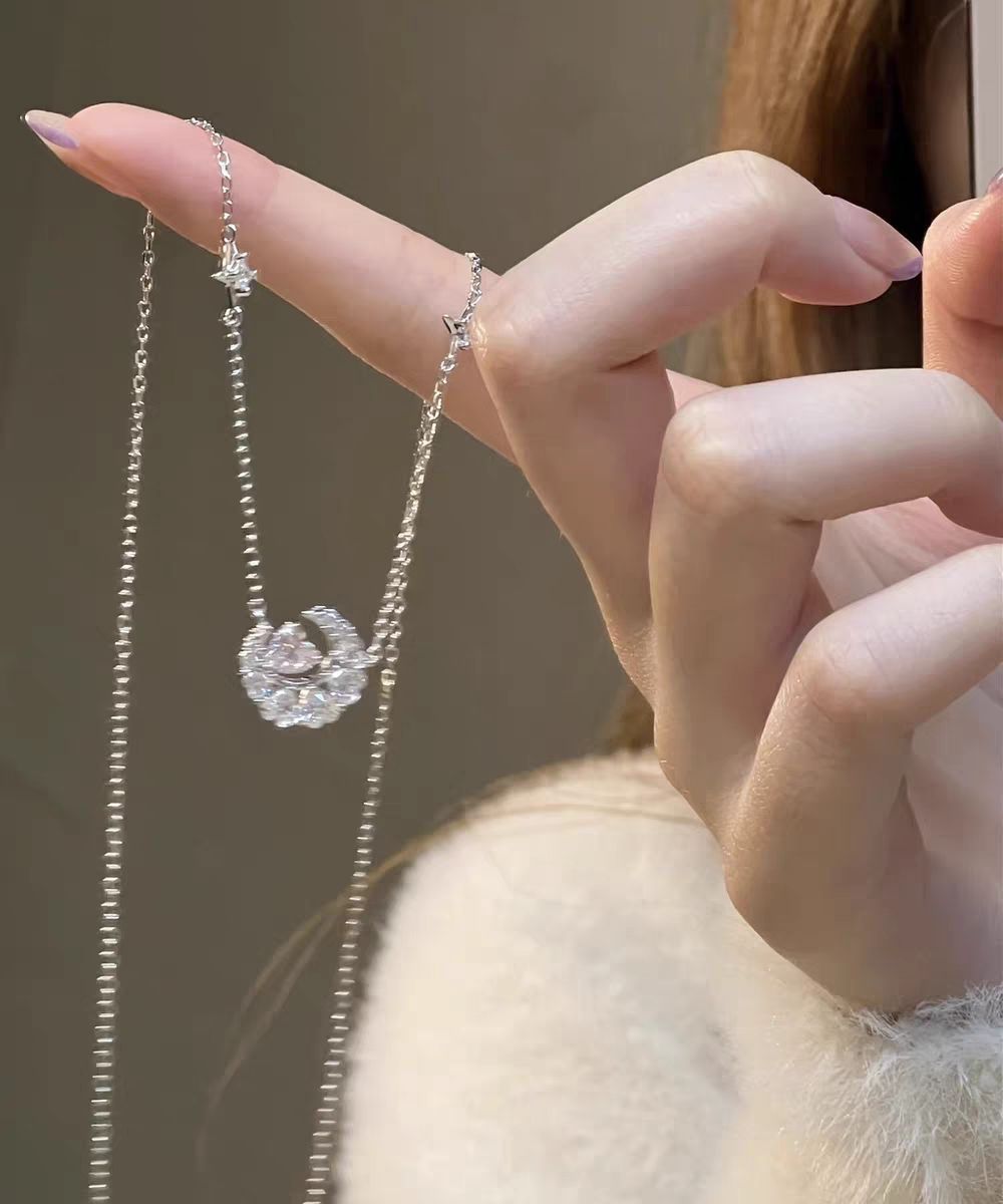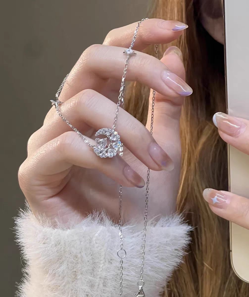 这款番茄的星月项链,即使没有佩戴在身上,在手上拍照也很好看哦\(//∇//)\ 上身搭配毛茸茸的白色上衣,再带上这条项链简直就是本仙女下凡😇 采用的依旧是925银材质,不易褪色,长时间佩戴也没有关系