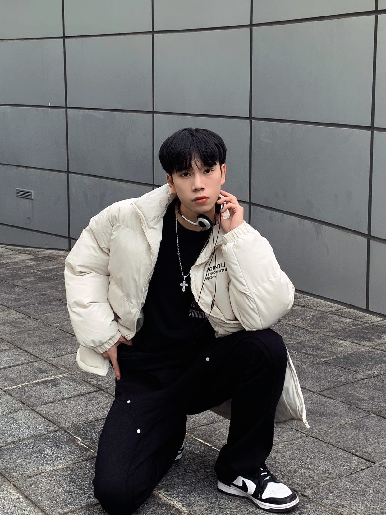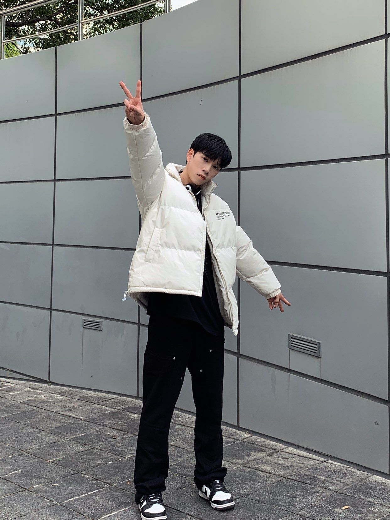 🍀加厚不臃肿白棉服绝了,是冬季首选 👇🏻,韩系简约风,冬天怎么能少的了温柔的白色棉服呢❗️很nice 🍀冬天立领的棉服就很抗风了,不用怕风钻进脖子里了 🍀内搭一件黑色T恤,下身搭配黑色工装裤,让整体颜色丰富起来,但看上去又很统一协调 (图源网络侵删)