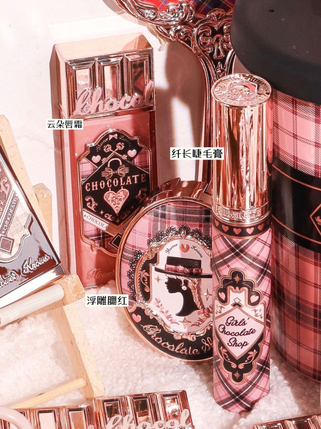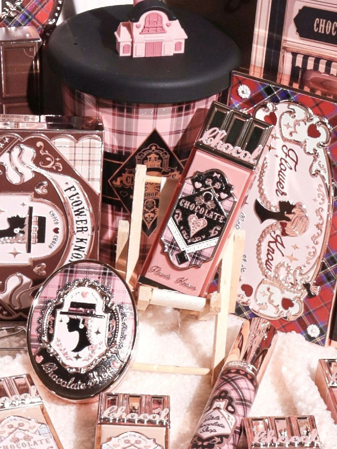 花知晓你纵享丝滑!这是和德芙抢生意啊|||好复古!好鬼马!巧克力商店系列! 我感觉它的美是有灵魂的那种 一位烫着小卷发 穿着小包裙的复古精致名伶 它的精致程度只在画报上见过😭 先欣赏一下预告 试色上嘴已经在拍了 拿下巧克力商店全套周边!看这篇就够了~|||花知晓周边商店又开张! 在这个秋冬和巧克力商店系列一起诞生的全新周边 温暖复古的英伦格纹裙风格 原来心动真的没有界限! - 👍三色手持镜、醋酸发...