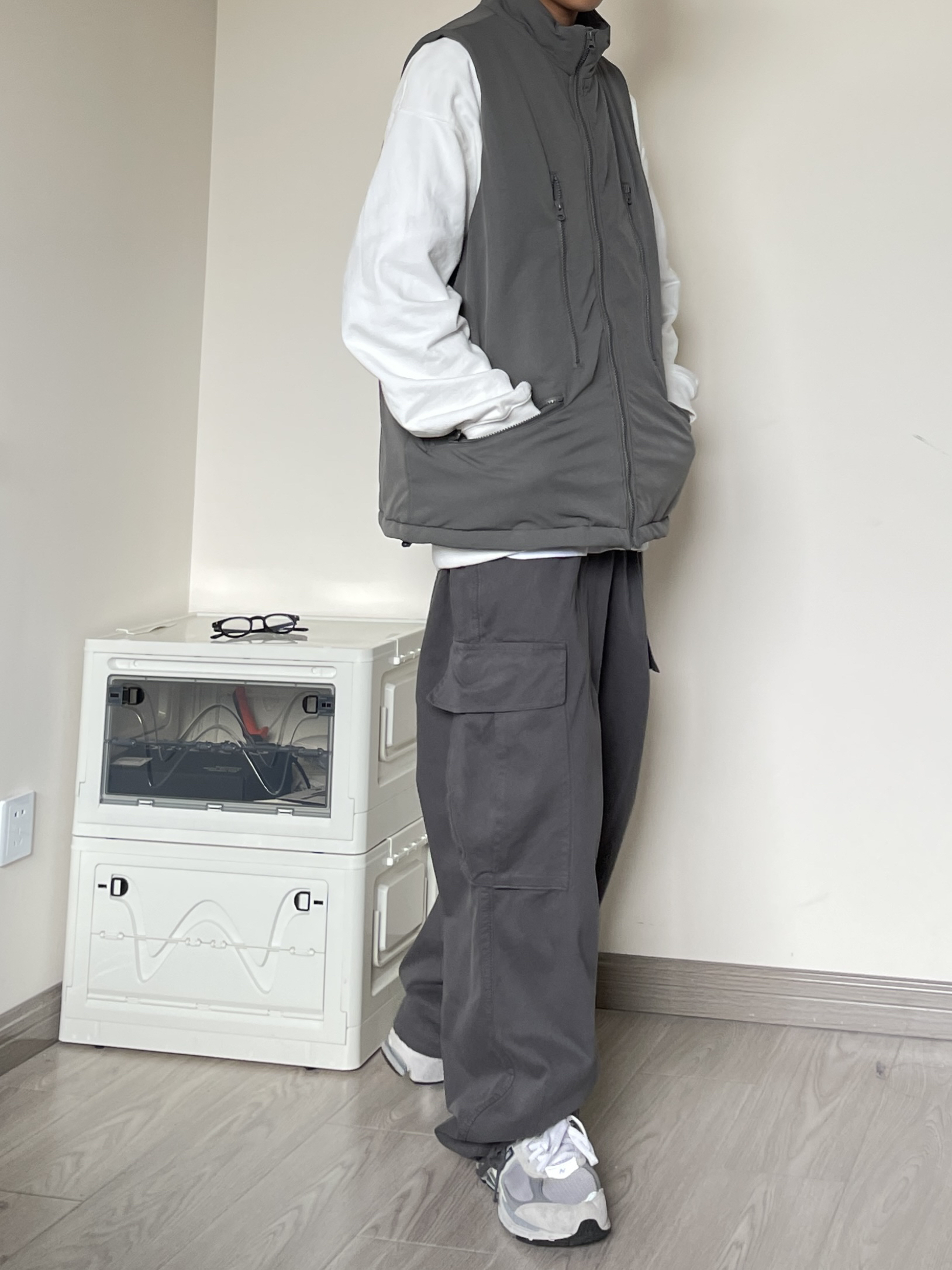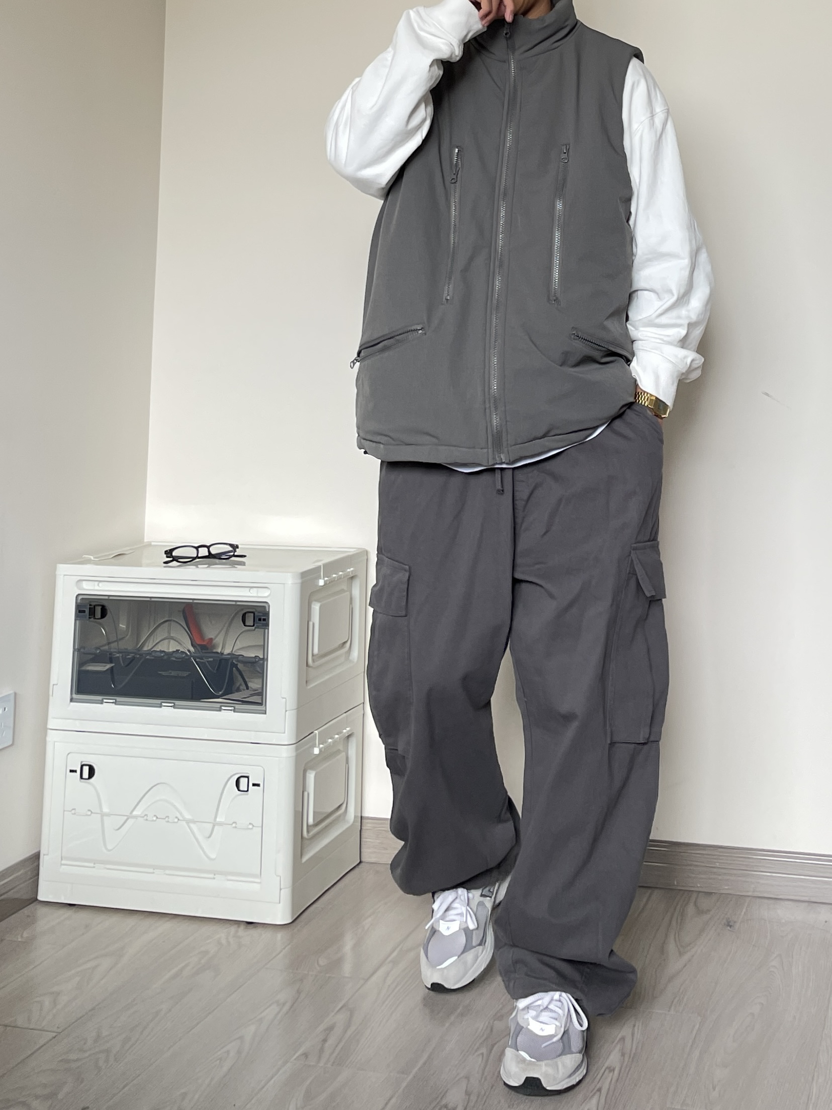 马甲真是我的心头爱!100件也不嫌多!!! 🎽 上衣是来自MF工作室的马甲,他家的马甲我入了好几件了,版型都超爱,价格基本都在80-120不等,物美价廉! 👖 裤子是来自Wrlife的工装长裤,之前也分享过,深灰色不沉闷且不浮夸,日常搭配也比较简单。 👟 NB2002R云雾灰