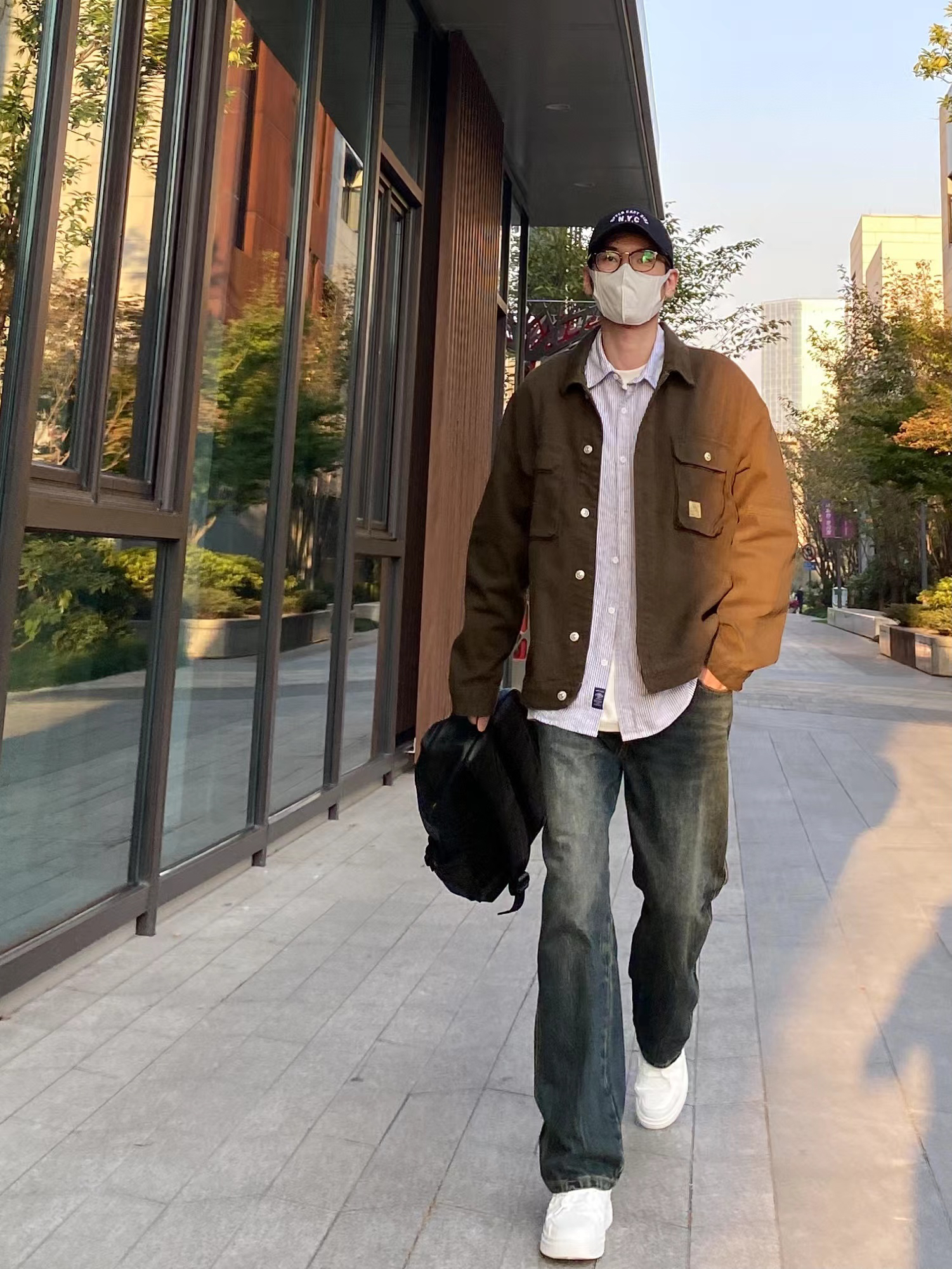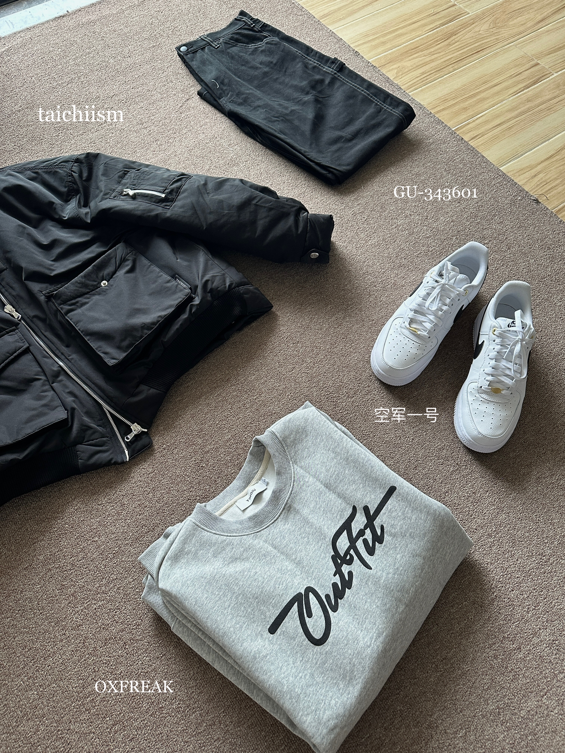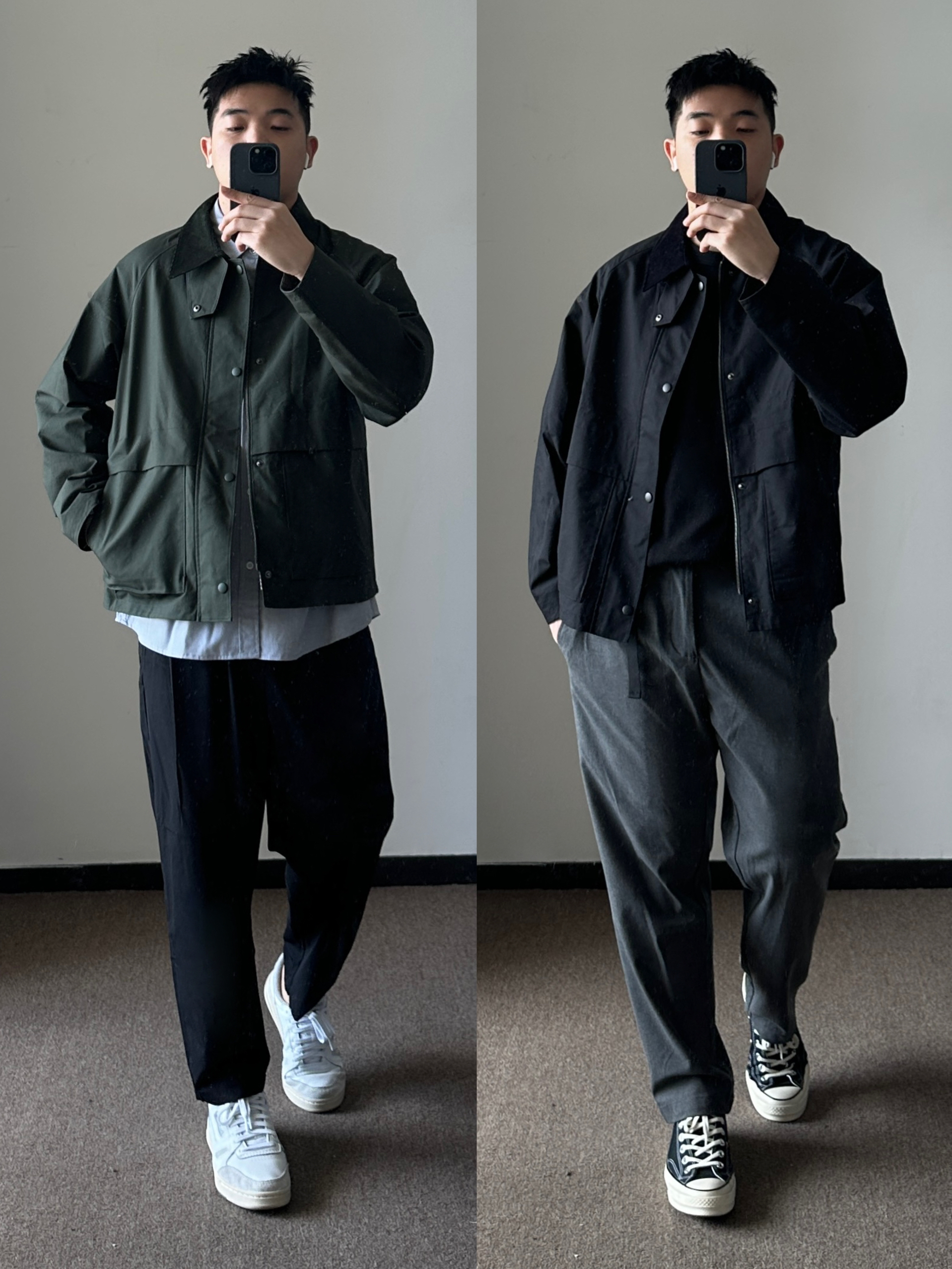 素人也能好看系列~ 174cm/65kg 🧥-像这种解构风的夹克像是自带了烟草味道,找件有印花的卫衣内搭一下就可。 👖-百元内的性价比裤子,面料不厚,版型规矩,腿粗也能驾驭。 👟- 小白鞋来一双