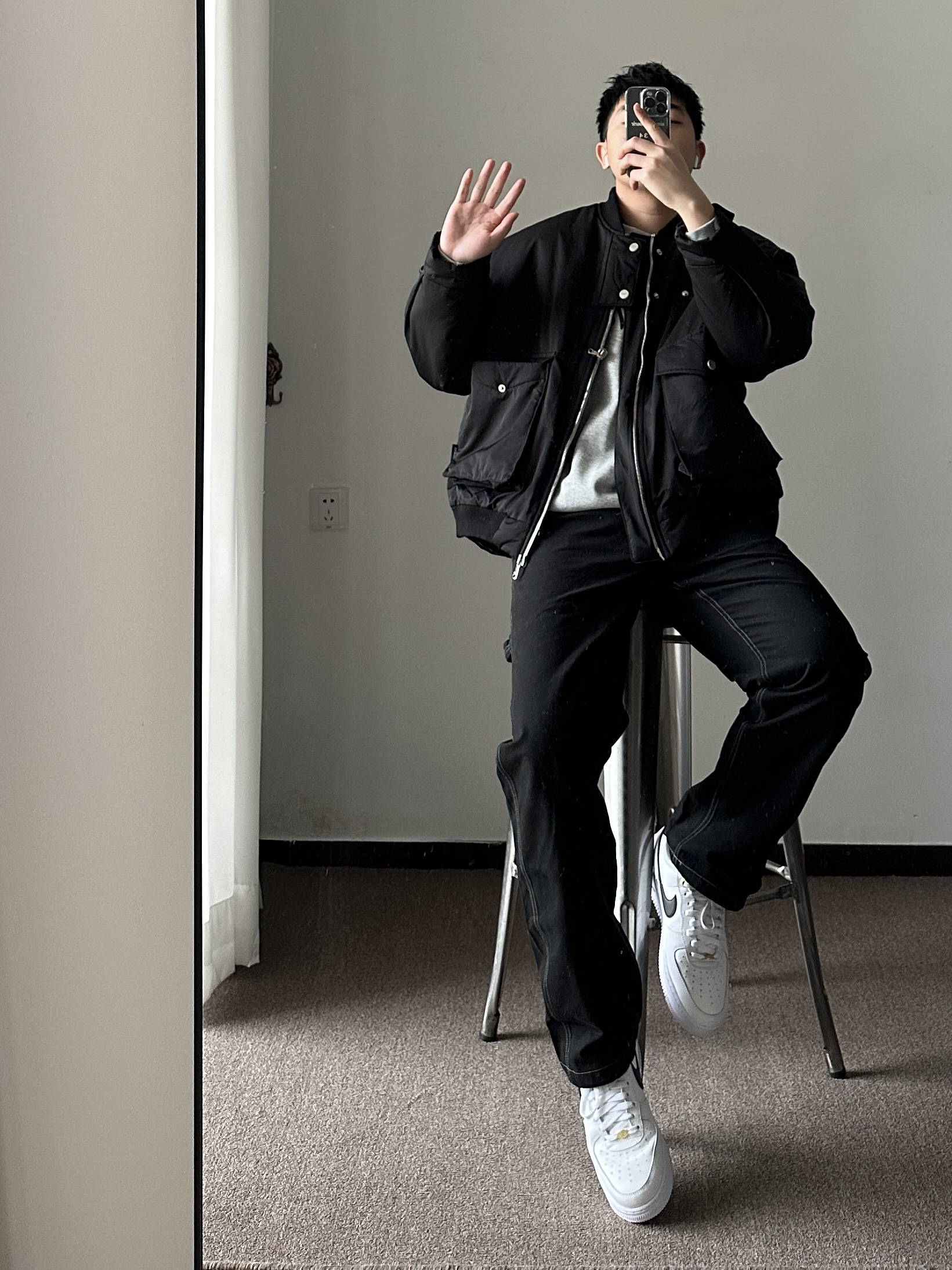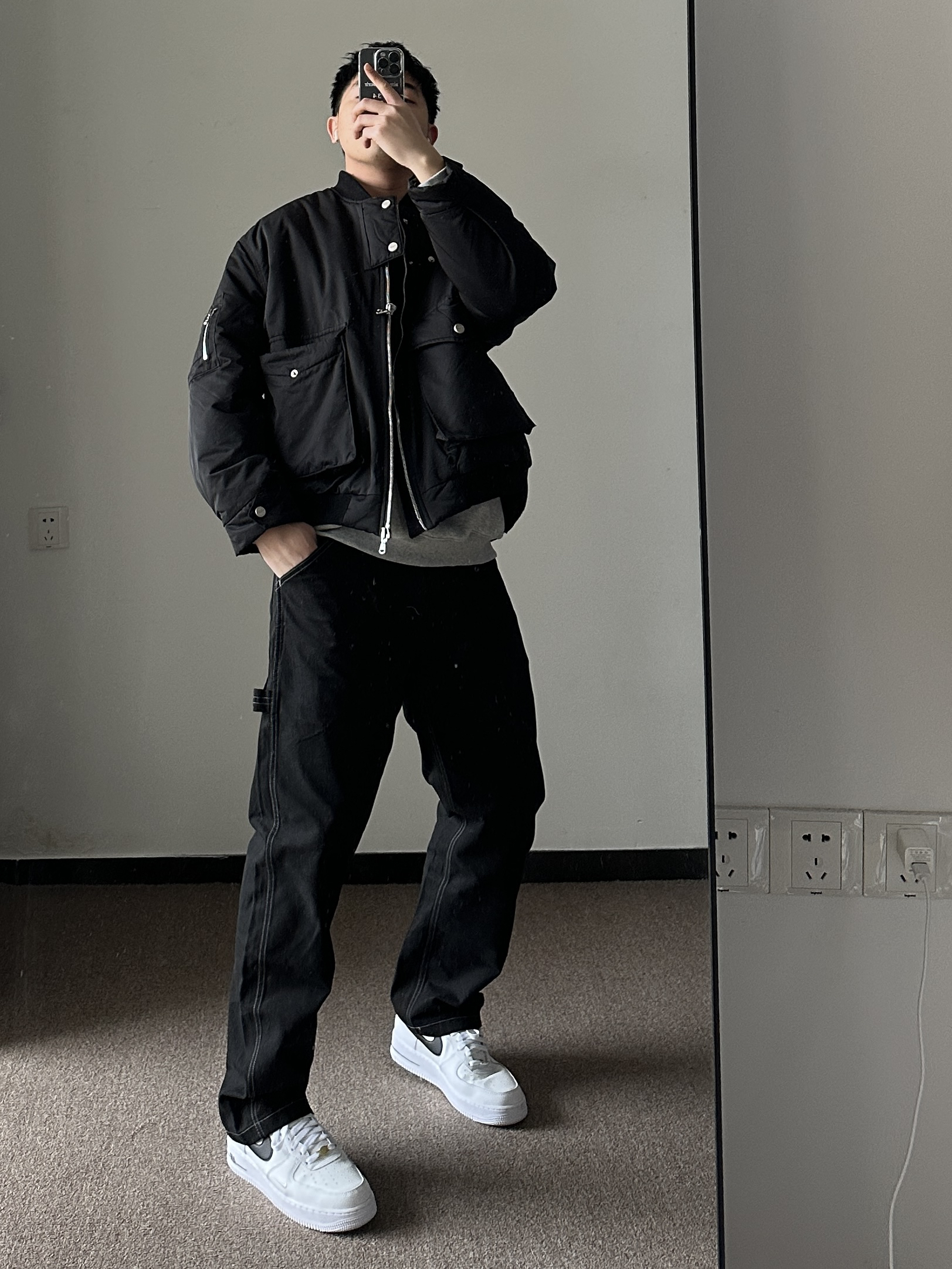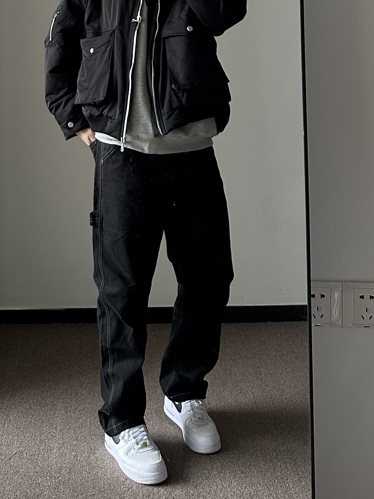 素人也能好看系列~ 174cm/65kg 🧥-像这种解构风的夹克像是自带了烟草味道,找件有印花的卫衣内搭一下就可。 👖-百元内的性价比裤子,面料不厚,版型规矩,腿粗也能驾驭。 👟- 小白鞋来一双