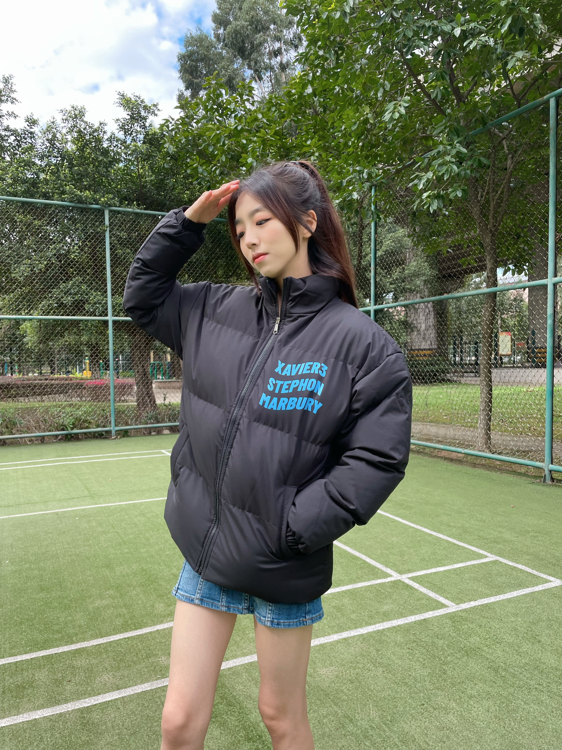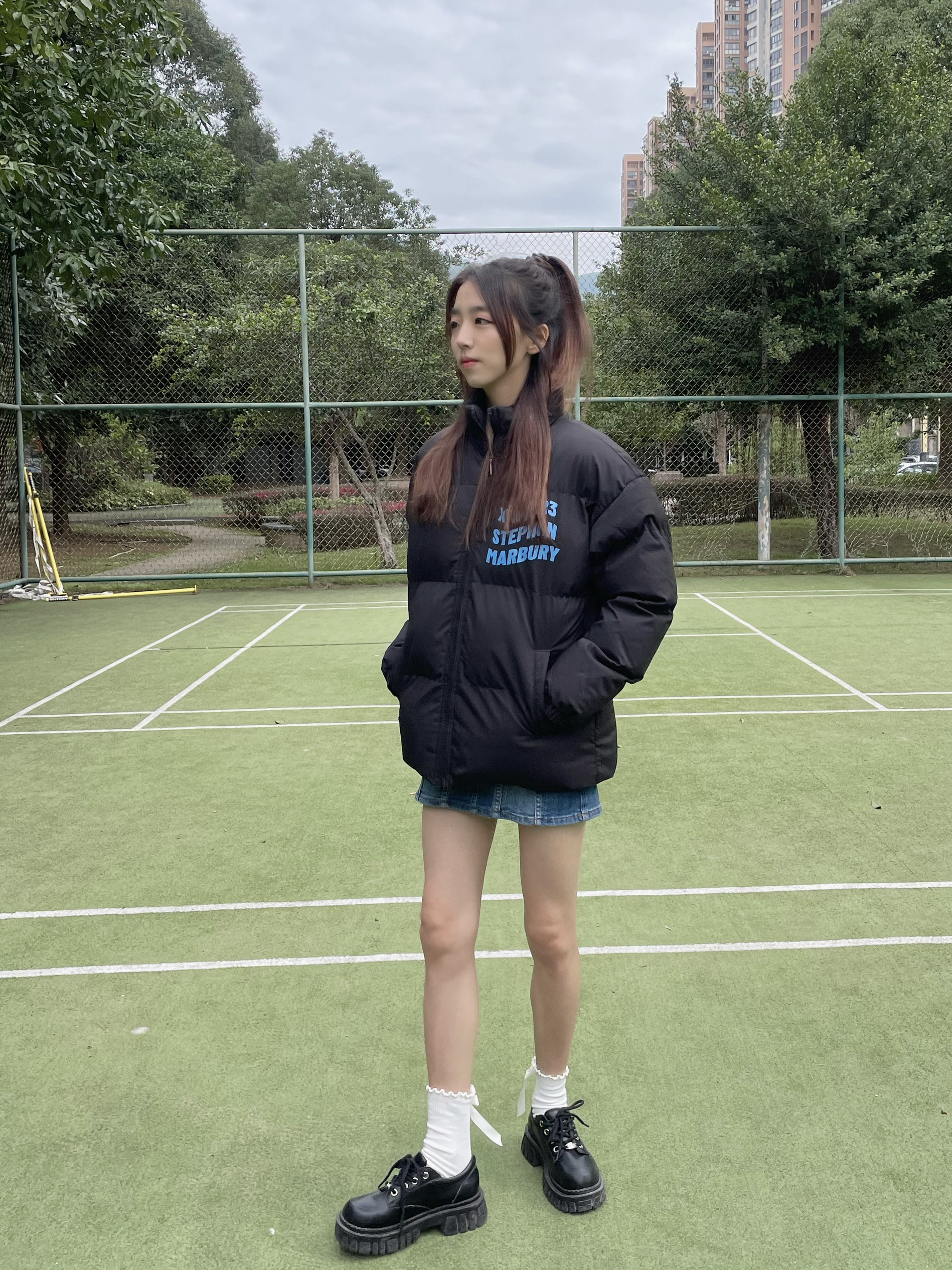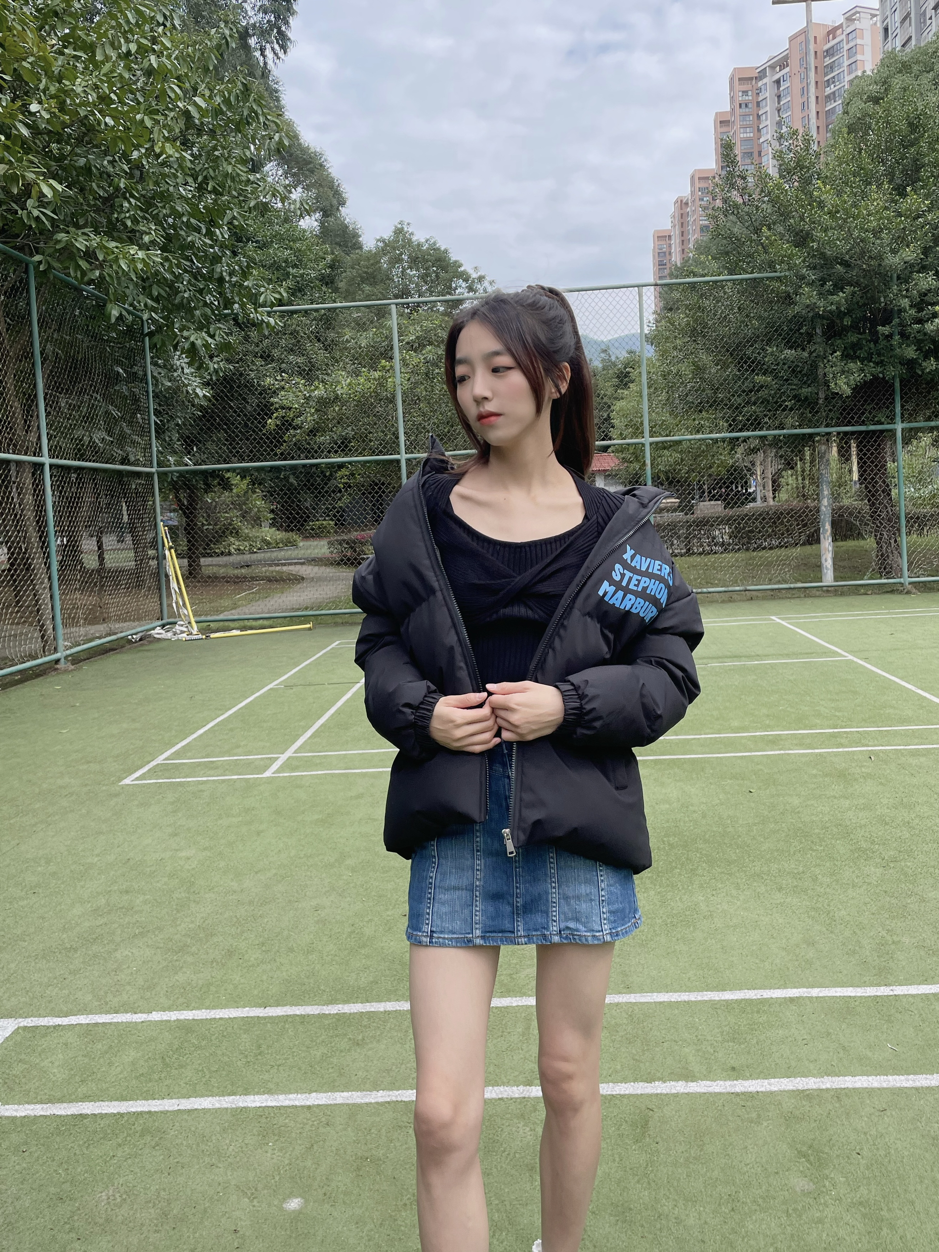 Halo!这里是小铭同学的穿搭分享频道📺 身高:168 体重:44 风格:日系/街头/潮流 美式复古羽绒服🍞➕牛仔裙💙 冬天真的和低饱和度很配~ 胸前和背面的彩色logo设计让黑色不单调 厚厚的棉服太有安全感啦🍁