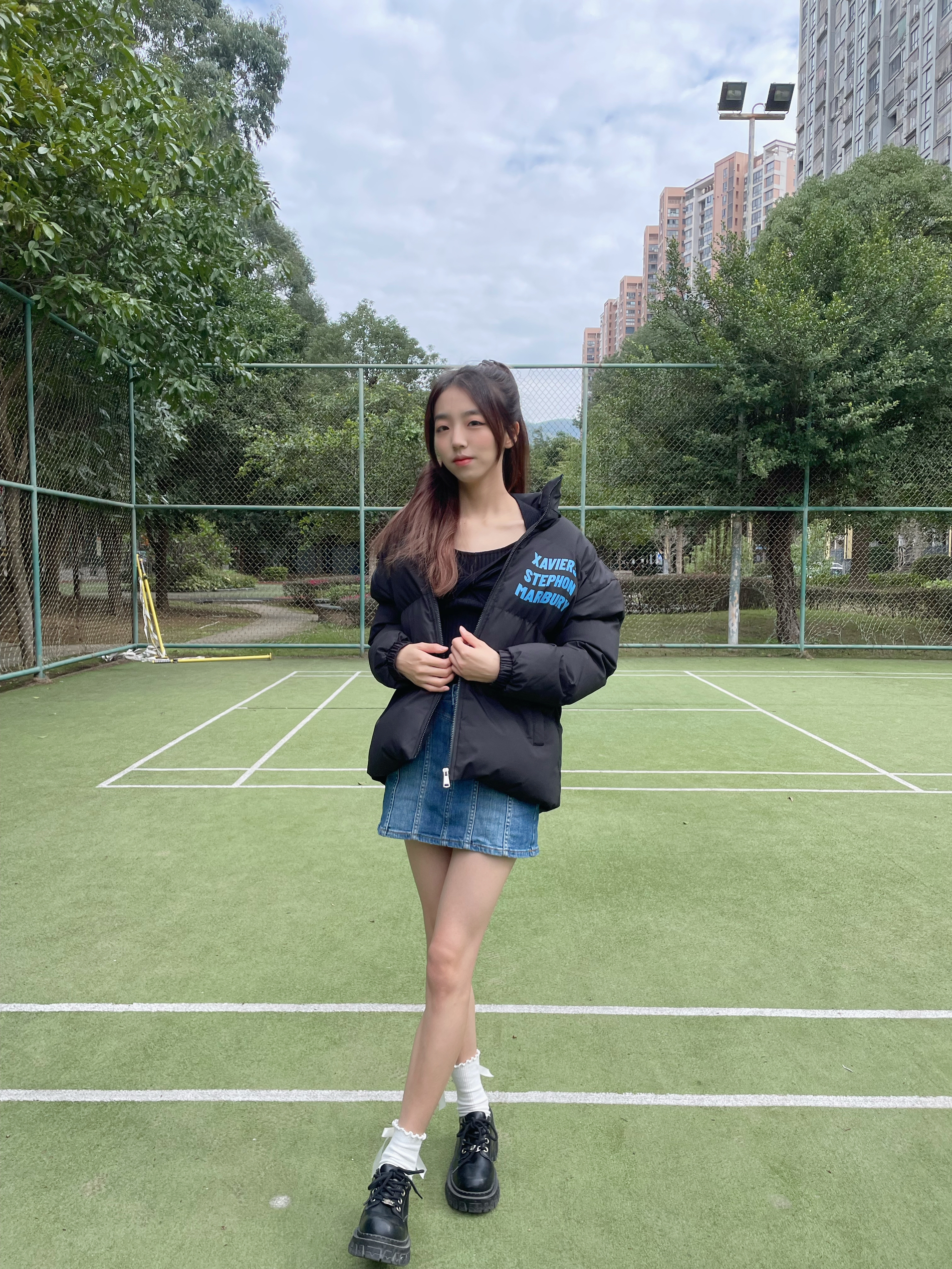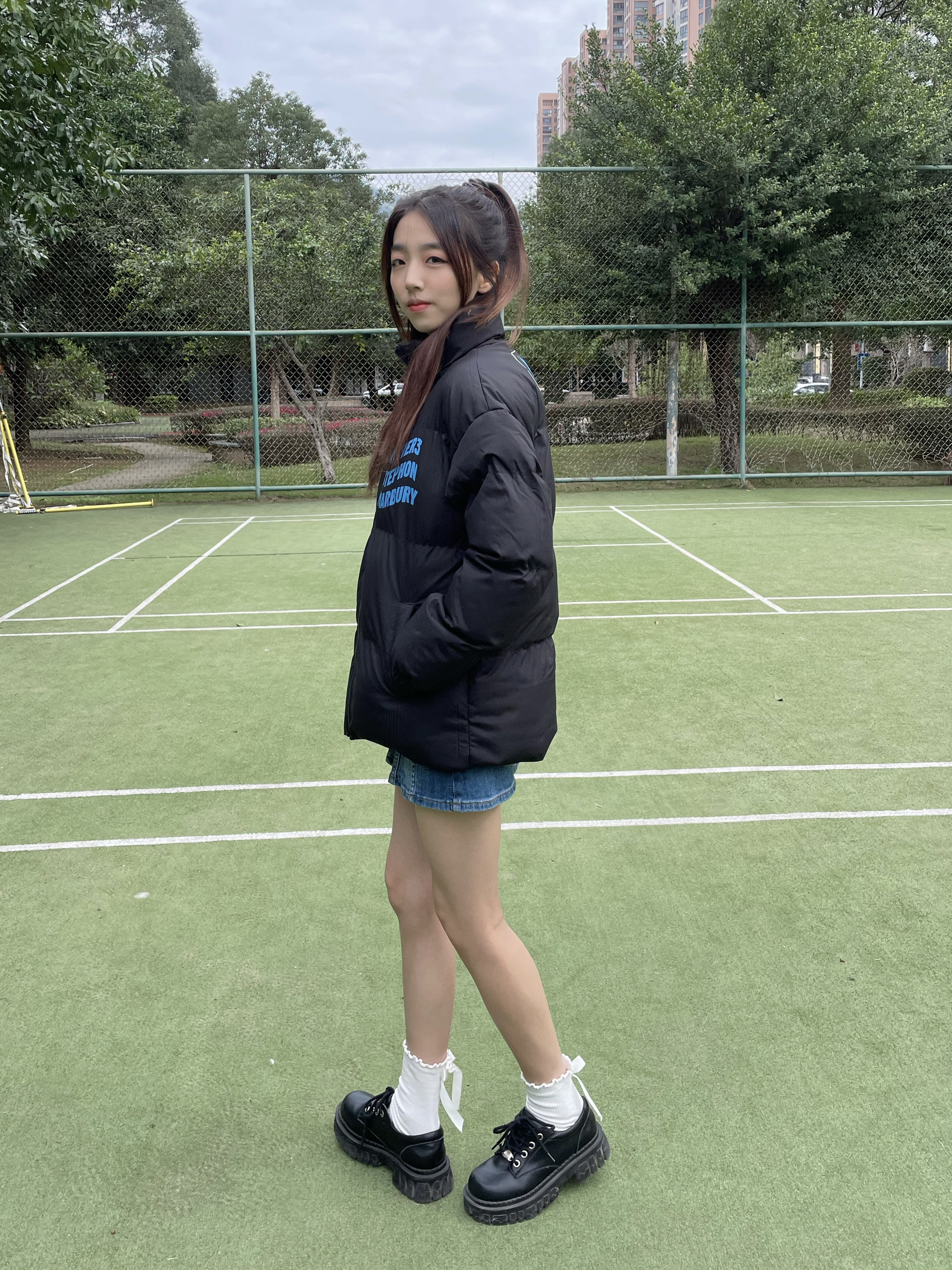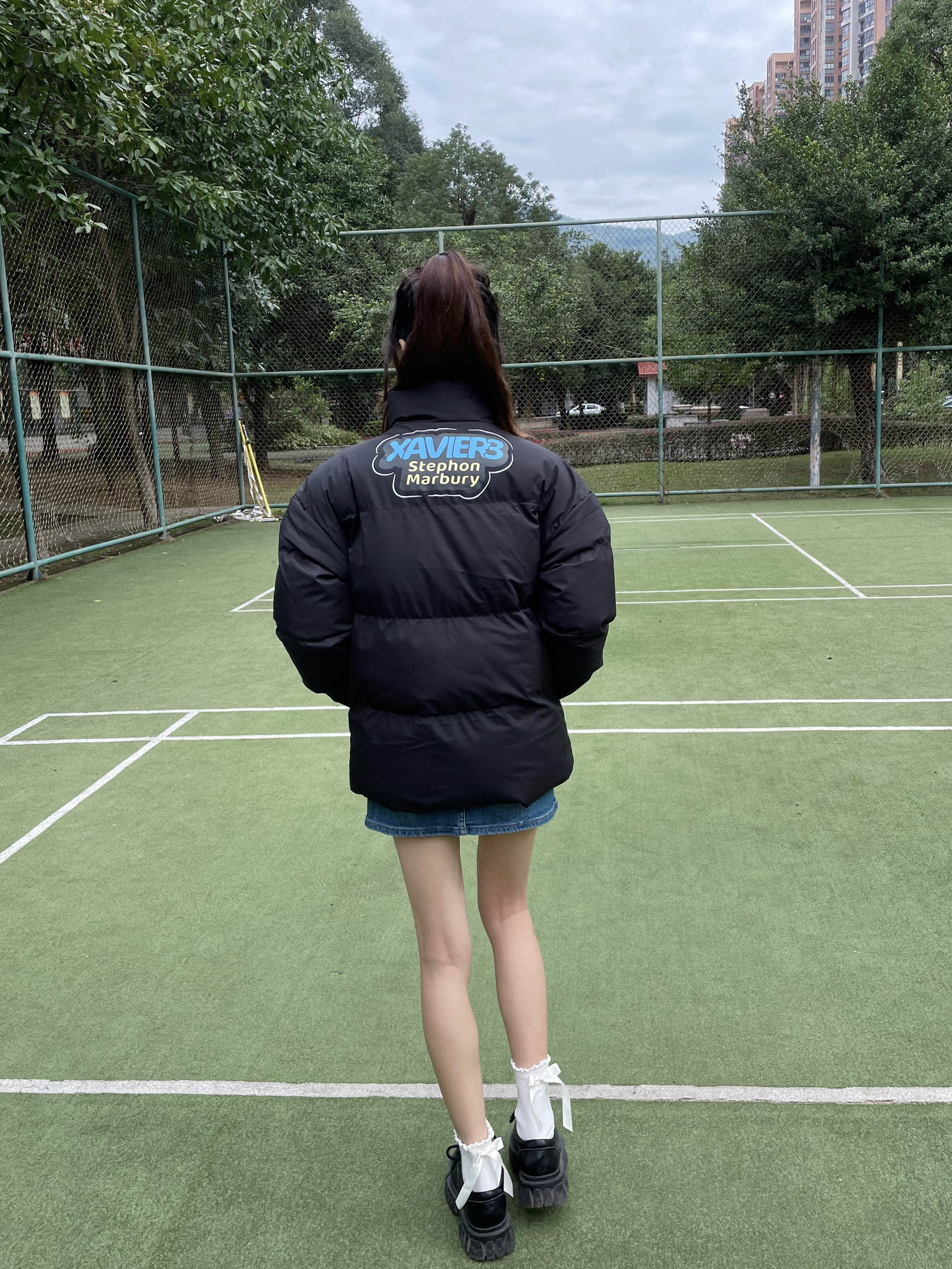 Halo!这里是小铭同学的穿搭分享频道📺 身高:168 体重:44 风格:日系/街头/潮流 美式复古羽绒服🍞➕牛仔裙💙 冬天真的和低饱和度很配~ 胸前和背面的彩色logo设计让黑色不单调 厚厚的棉服太有安全感啦🍁