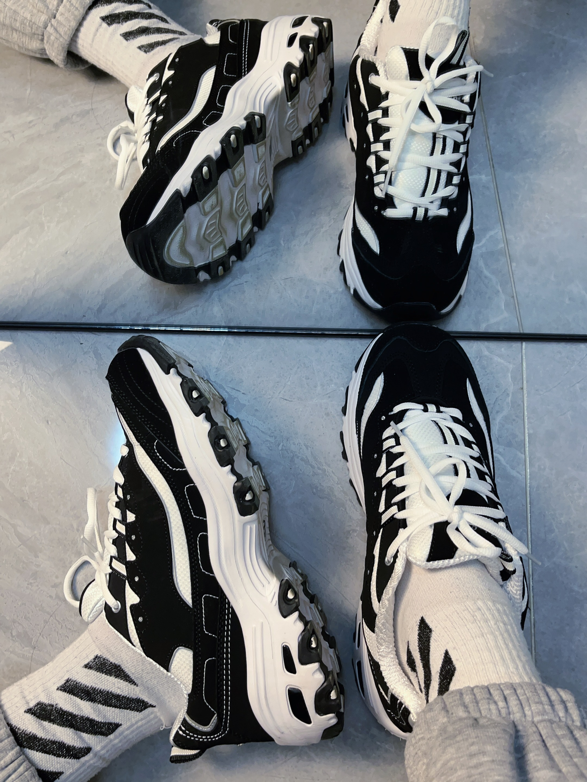 便宜的价格,亲民的质量,满满的情侣感! 给你女朋友送过去吧。 谁说只有女孩子能穿斯凯奇,男生也可以选择的一双斯凯奇黑白熊猫老爹鞋, 经典的黑白撞色反绒皮和网布多层次拼接鞋面让层次感更加丰富, 防撞鞋头保护脚尖,记忆棉泡棉鞋垫提供柔软舒适脚感, 斯凯奇的细节做工可以说是诚意满满 厚底的增高效果不仅女孩喜欢需要, 大底采用EVA、橡胶材质和多沟槽设计既轻质耐磨且缓震防滑