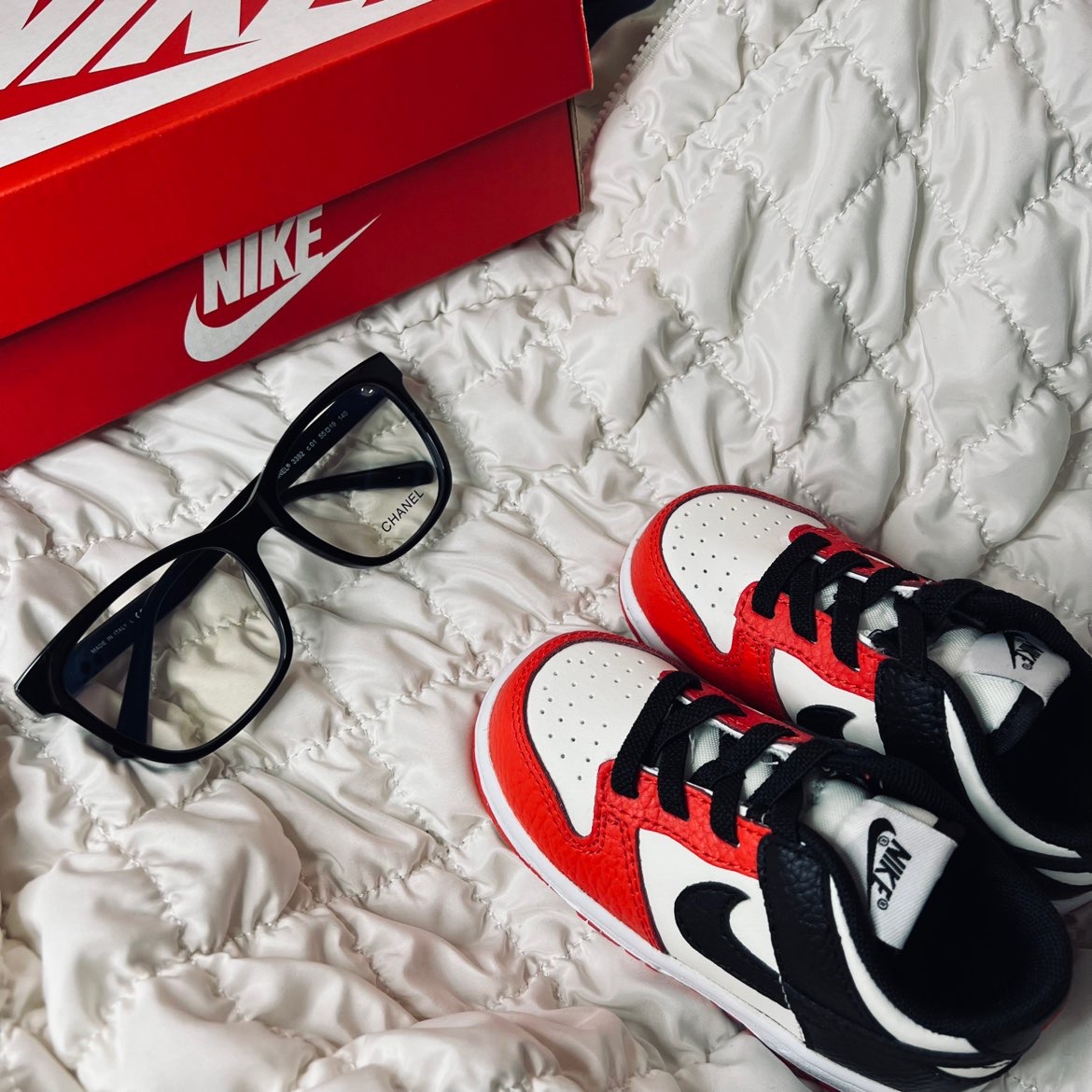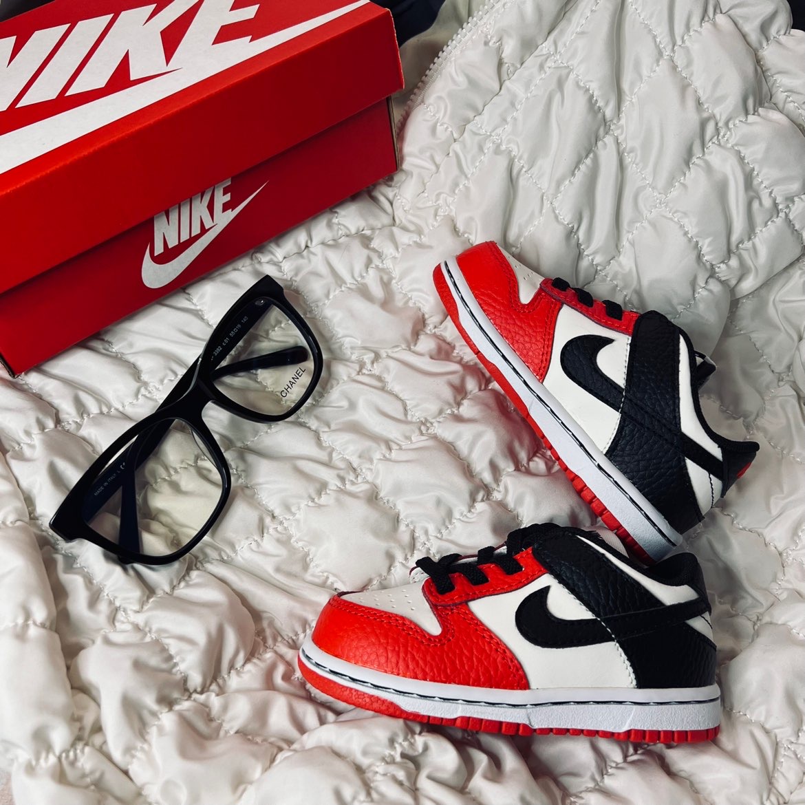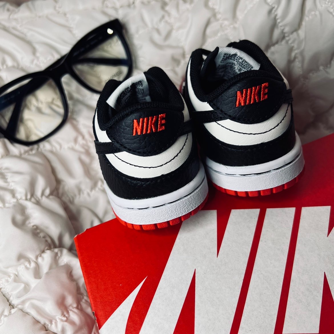 这款公牛配色的小dunk 真的是超级可爱,一只鞋还没有手掌🖐️大小 但是在小巧的同时,质感还是有的 采用了牛皮和荔枝皮的纹路 质感直接拉满,如果家里有宝宝 一定要给宝宝试试这一款