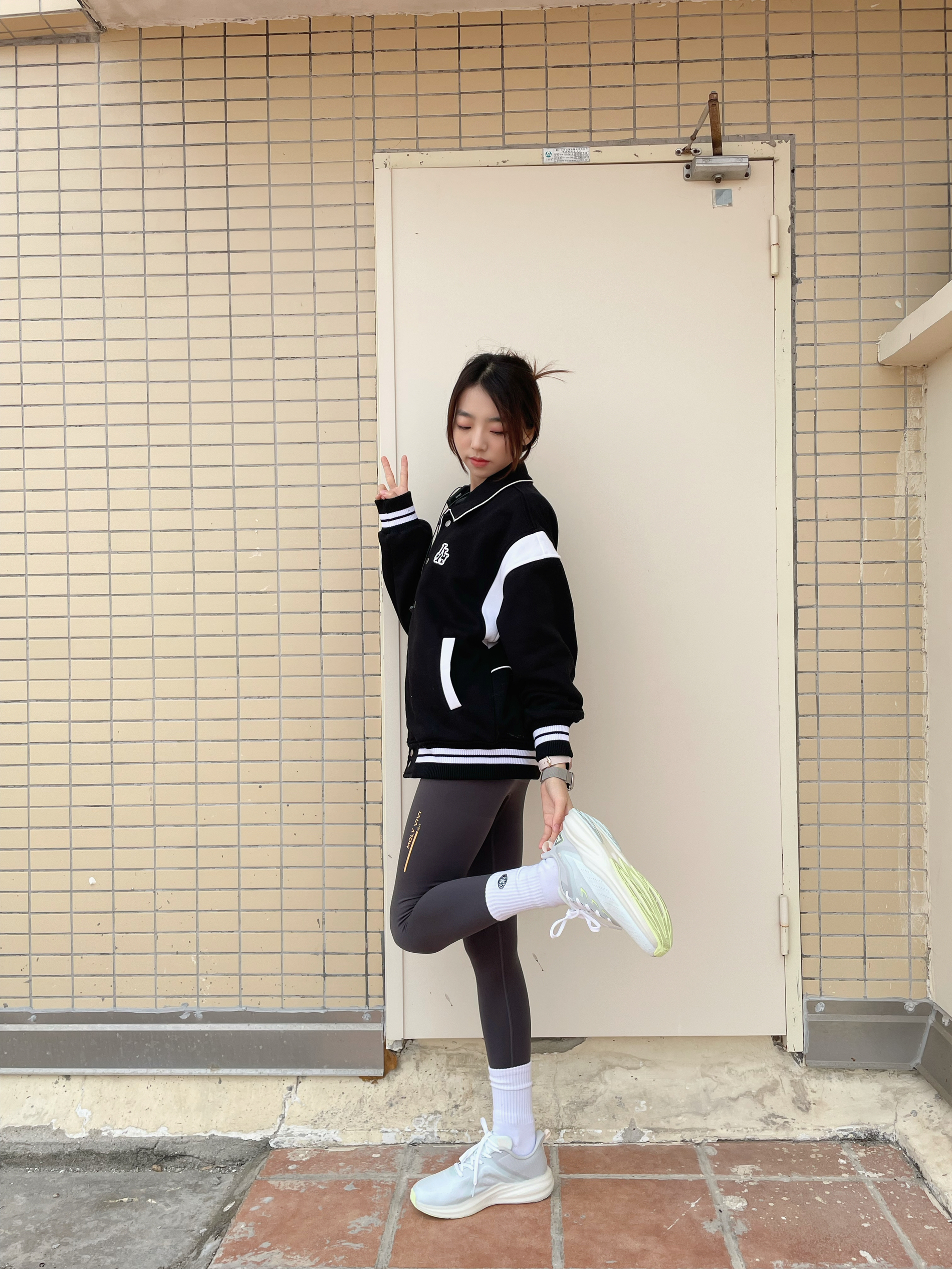 发现了瑜伽裤🧘的新穿法!! 而且超级显瘦诶‼️‼️‼️ 搭配复古黑白相间的棒球⚾️外套 加绒的瑜伽裤 秋冬也扛得住 减龄穿搭我看行~