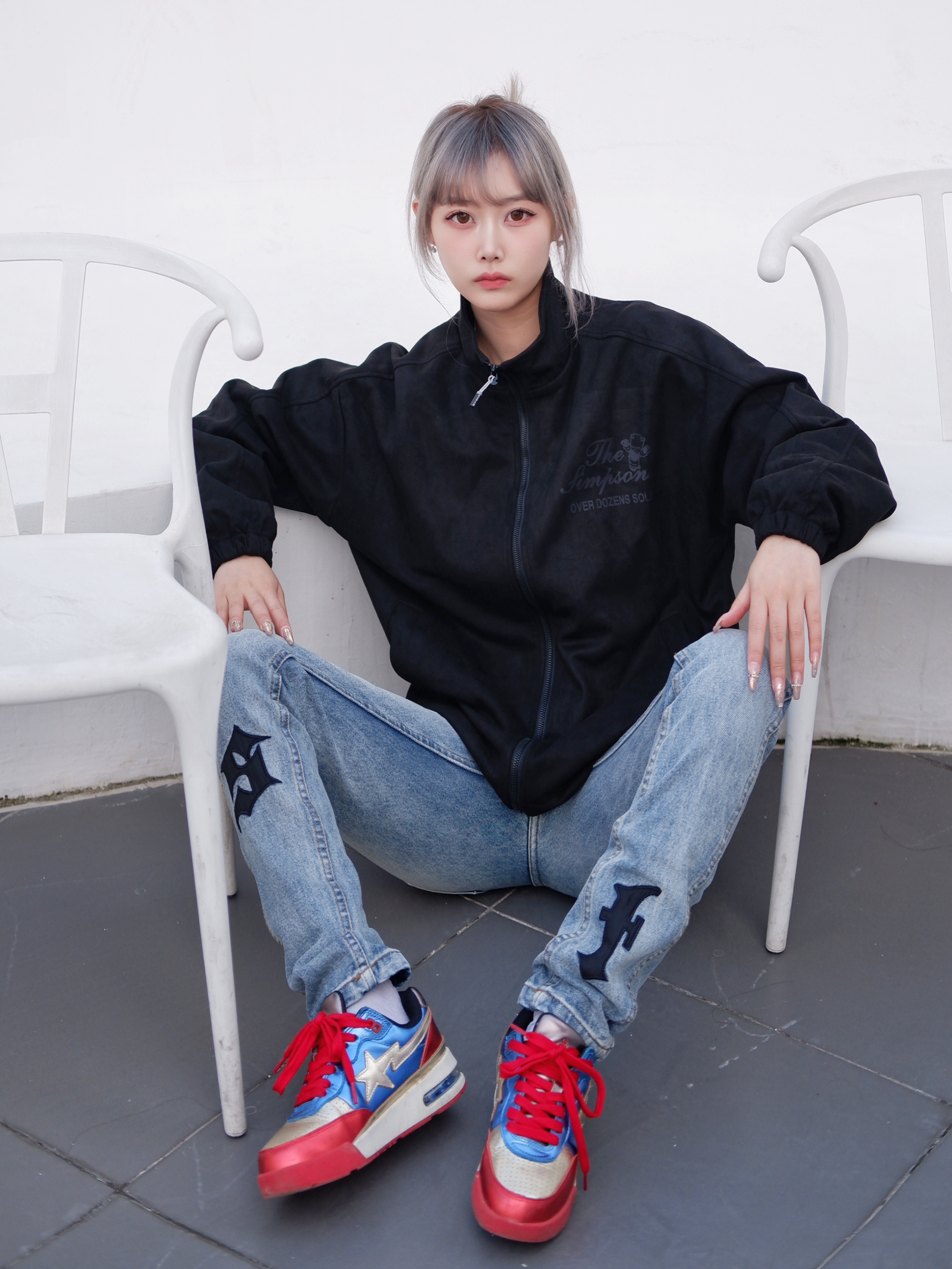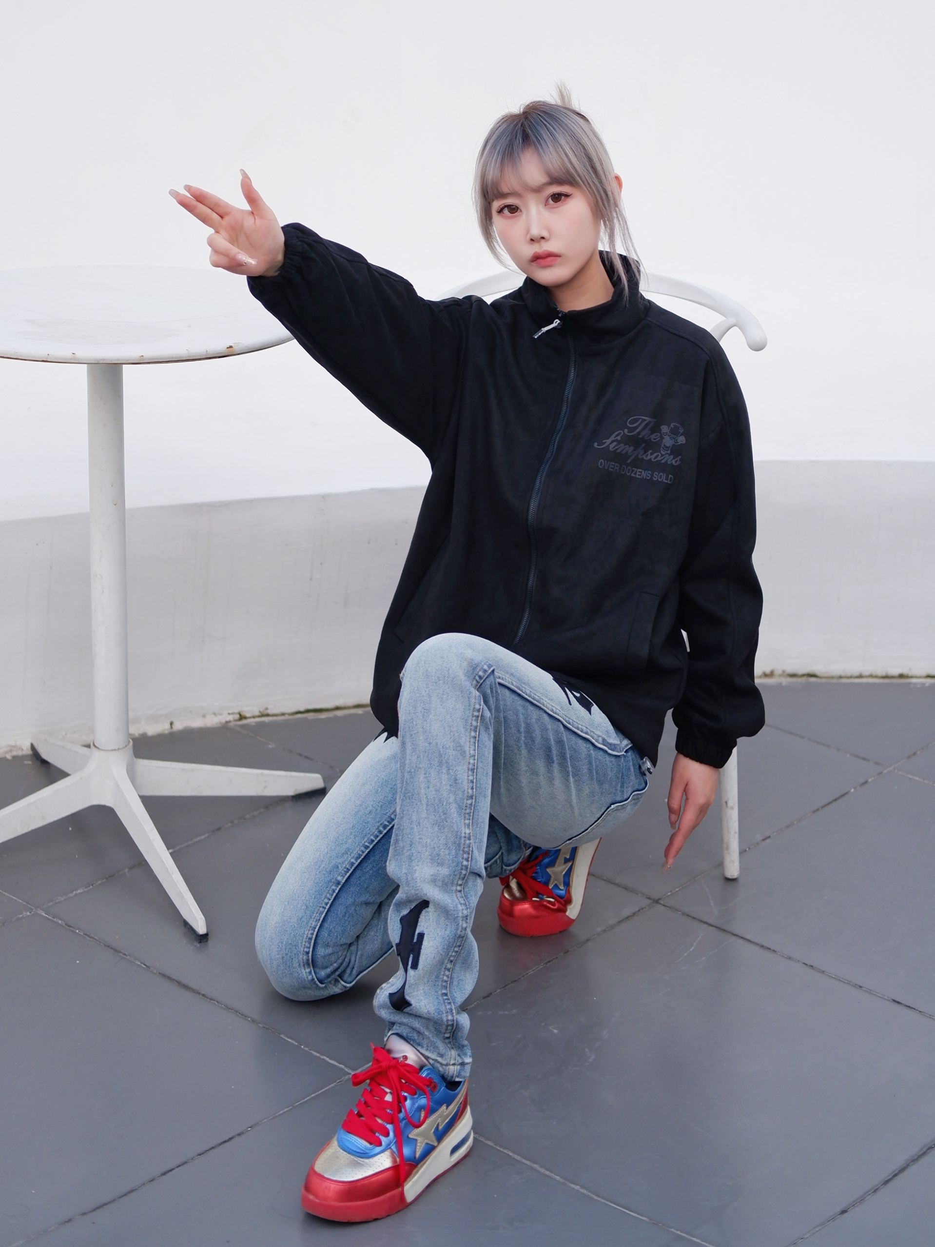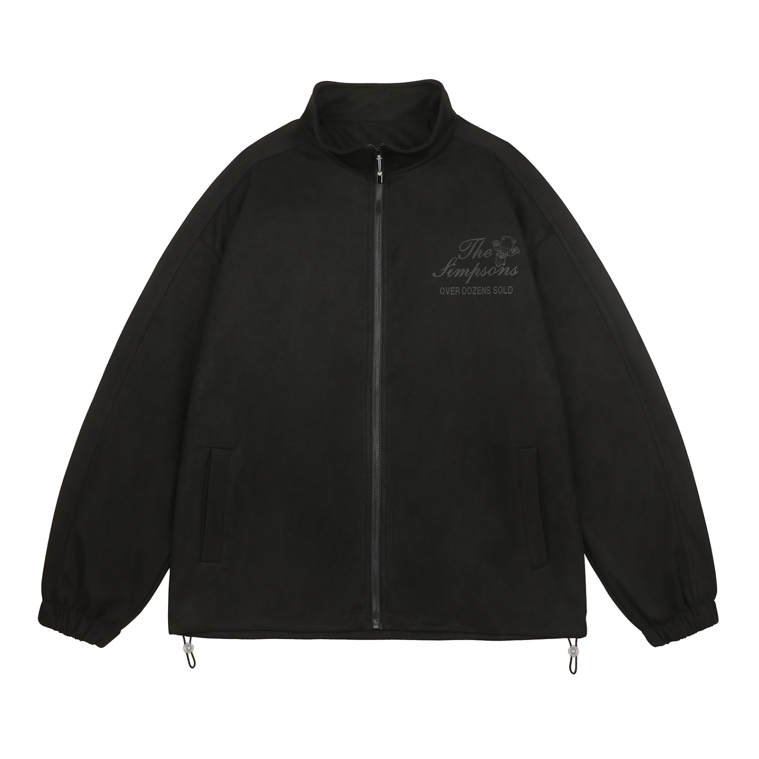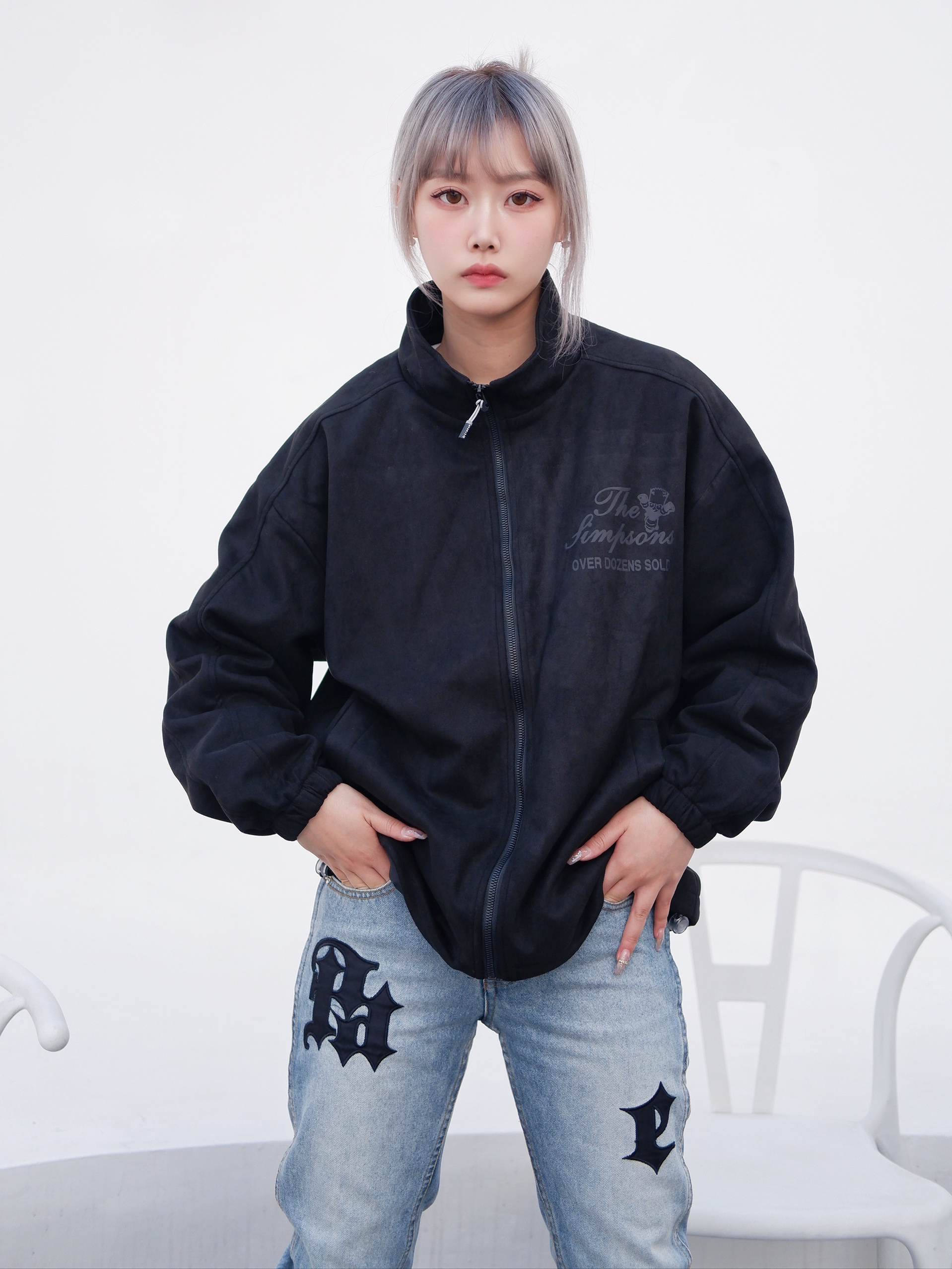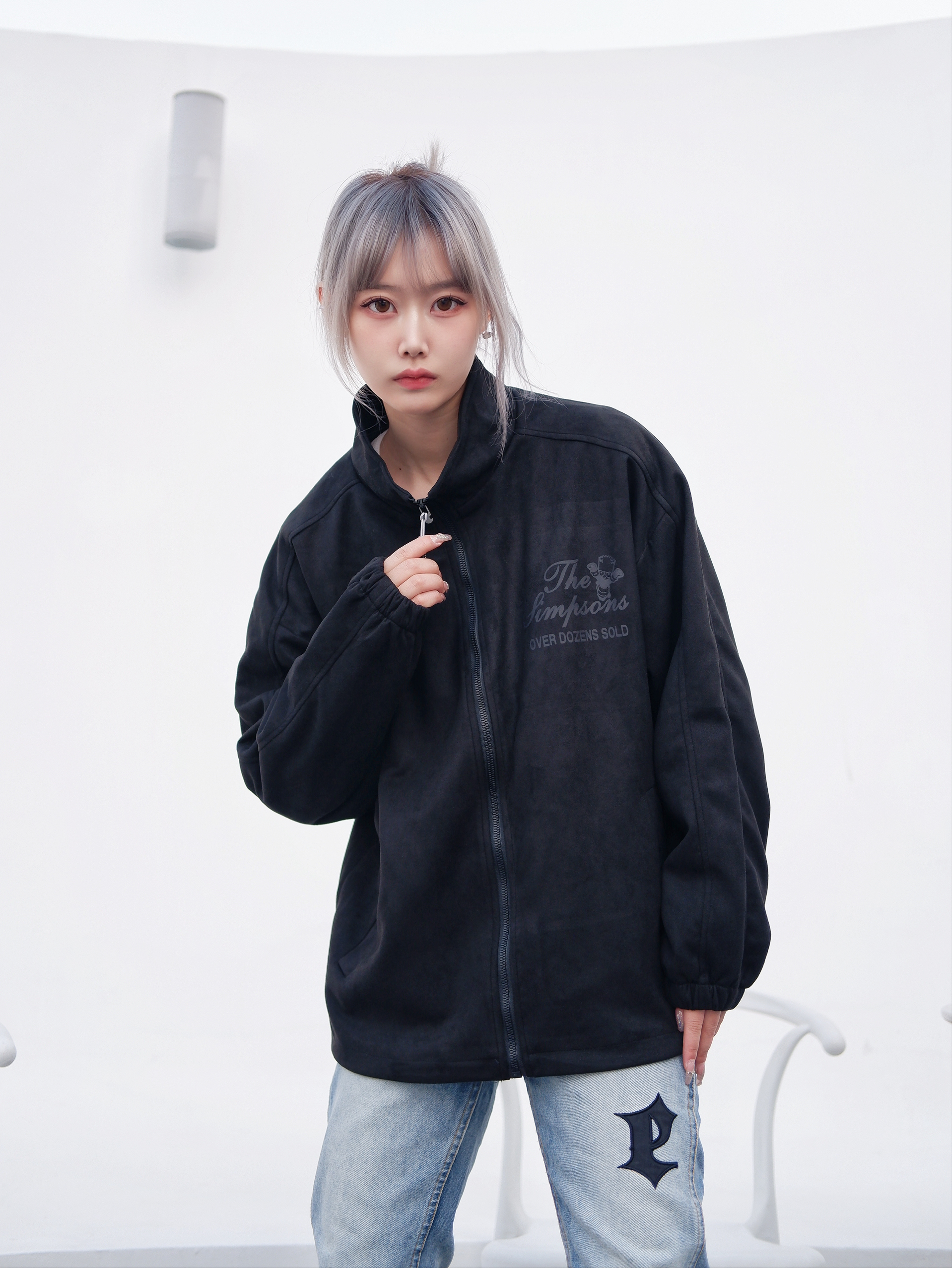 衣柜里🧳怎么能没有一款麂皮夹克 怎么好意思称自己是🧐时髦🆒女孩 🧥 The Simpsons/辛普森一家 基础款印花宽松落肩麂皮绒夹克外套 纯黑色造型感廓形夹绒夹克 非常立体的廓形设计📓 显头身比 材质硬挺有型时髦又节制🤩 hin宽松的版型 穿起来也很随性帅气 搭配直筒水洗牛仔裤 复古又特别 直筒的嘎嘎显腿直‼️ 面料有弹力 厚度适中!很有型! 是我喜欢的长度,可以堆堆佳就很高街👍