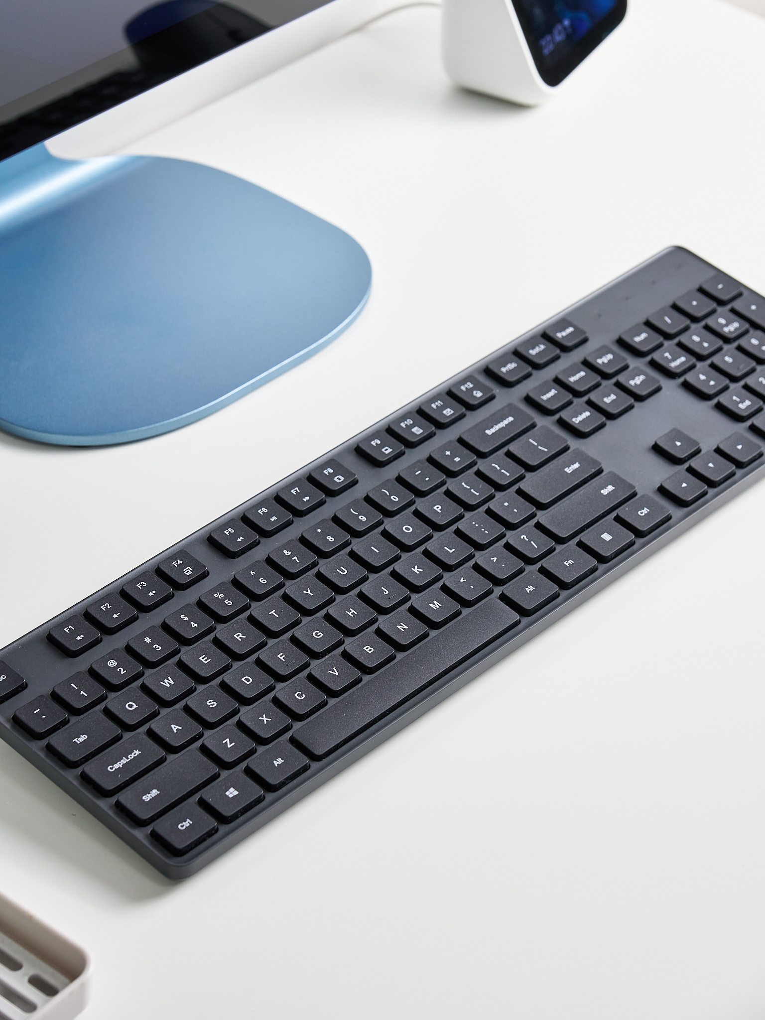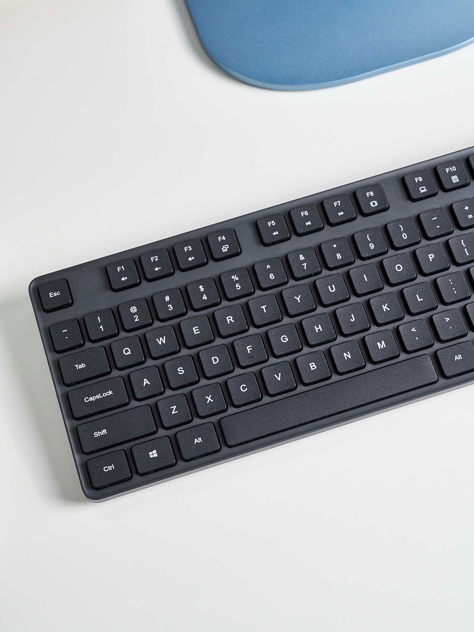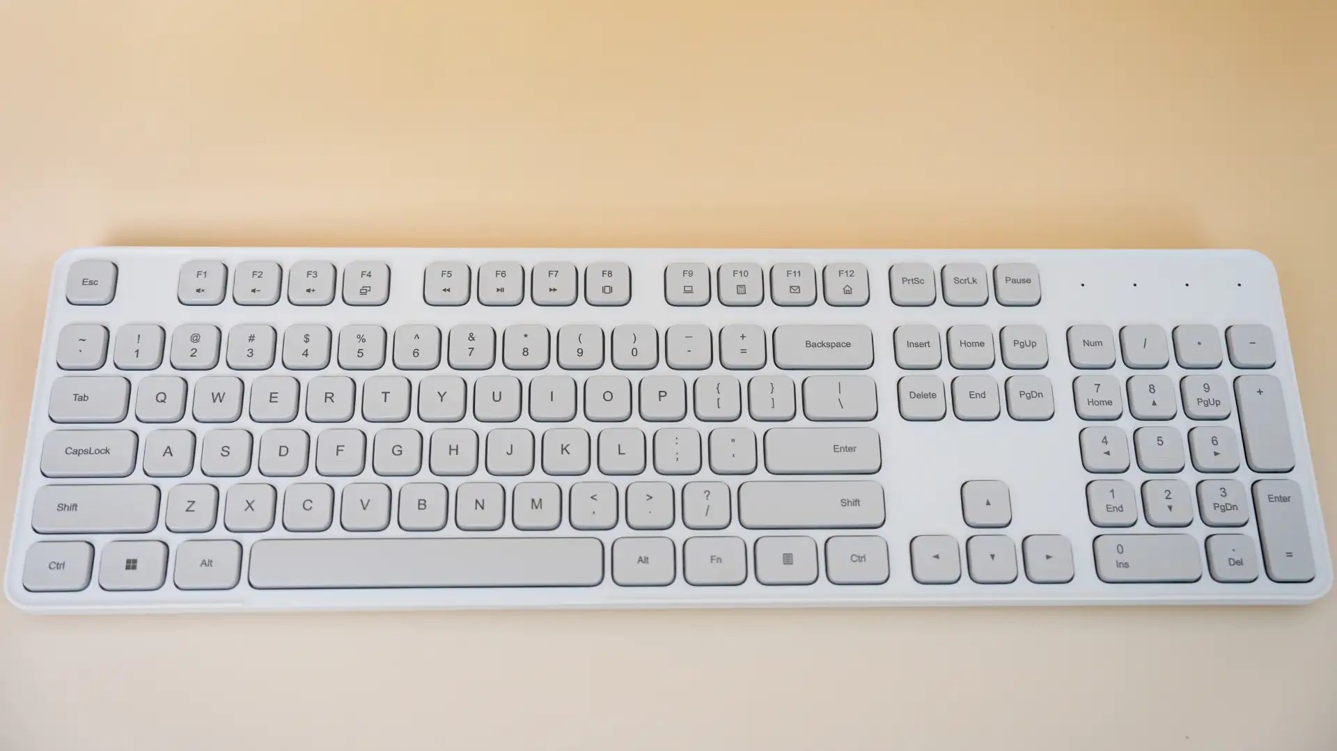 小米无线键鼠套装,它适合用来轻度办公,轻量化设计,价格也便宜。 鼠标和键盘通过一个2.4G无线接收器连接,他们都是用一节五号电池供电的。 键盘是104键全尺寸,三区键位设计,排布紧凑合理。采用的是巧克力键帽,表面微弧曲面造型,磨砂质感敲击挺舒服。 鼠标只有60g的重量,略微凸起方便握持,整体手感是比较轻巧的,舒适度较高。搭载了1000DPI传感器,日常办公足够了。