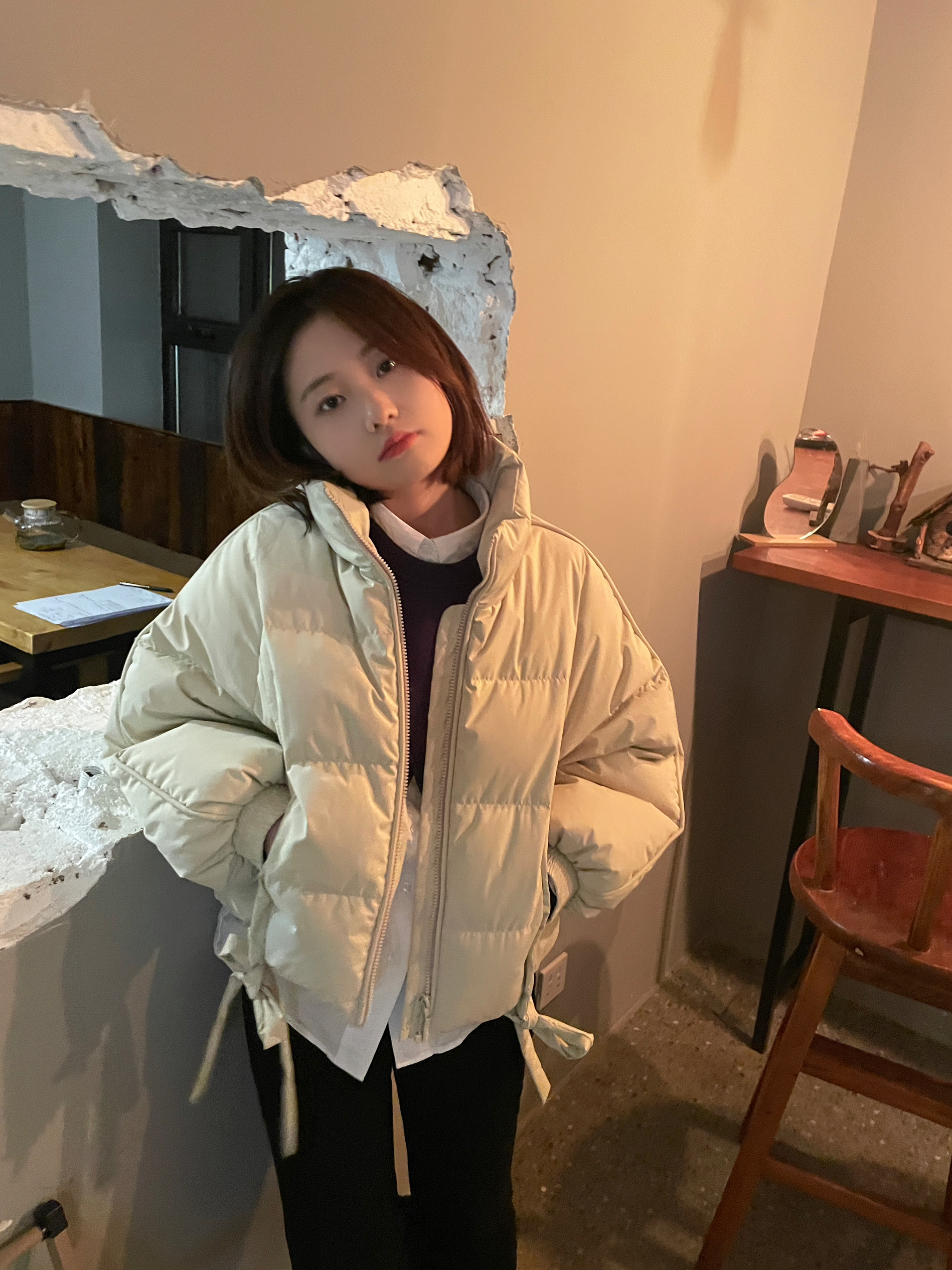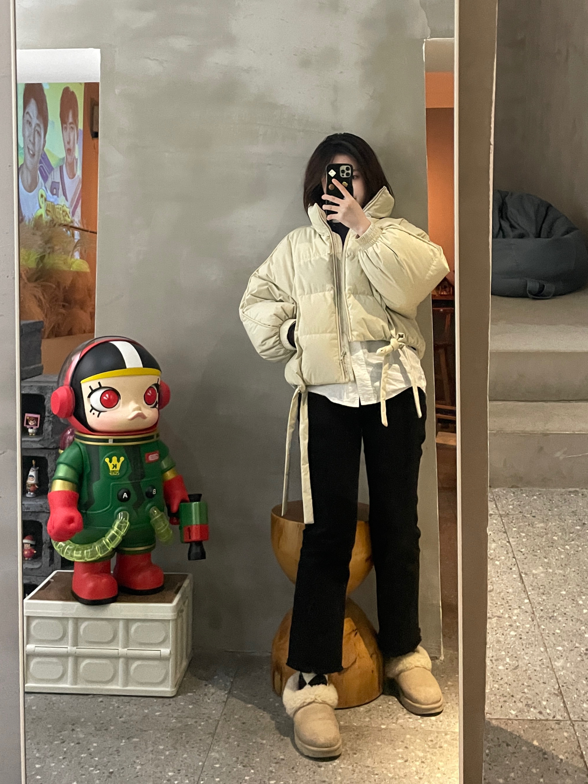 162/47 短款羽绒服和黑色牛仔裤 短款上衣很拉比例 👕/瞌睡兔 👖/zara 👟/ugg