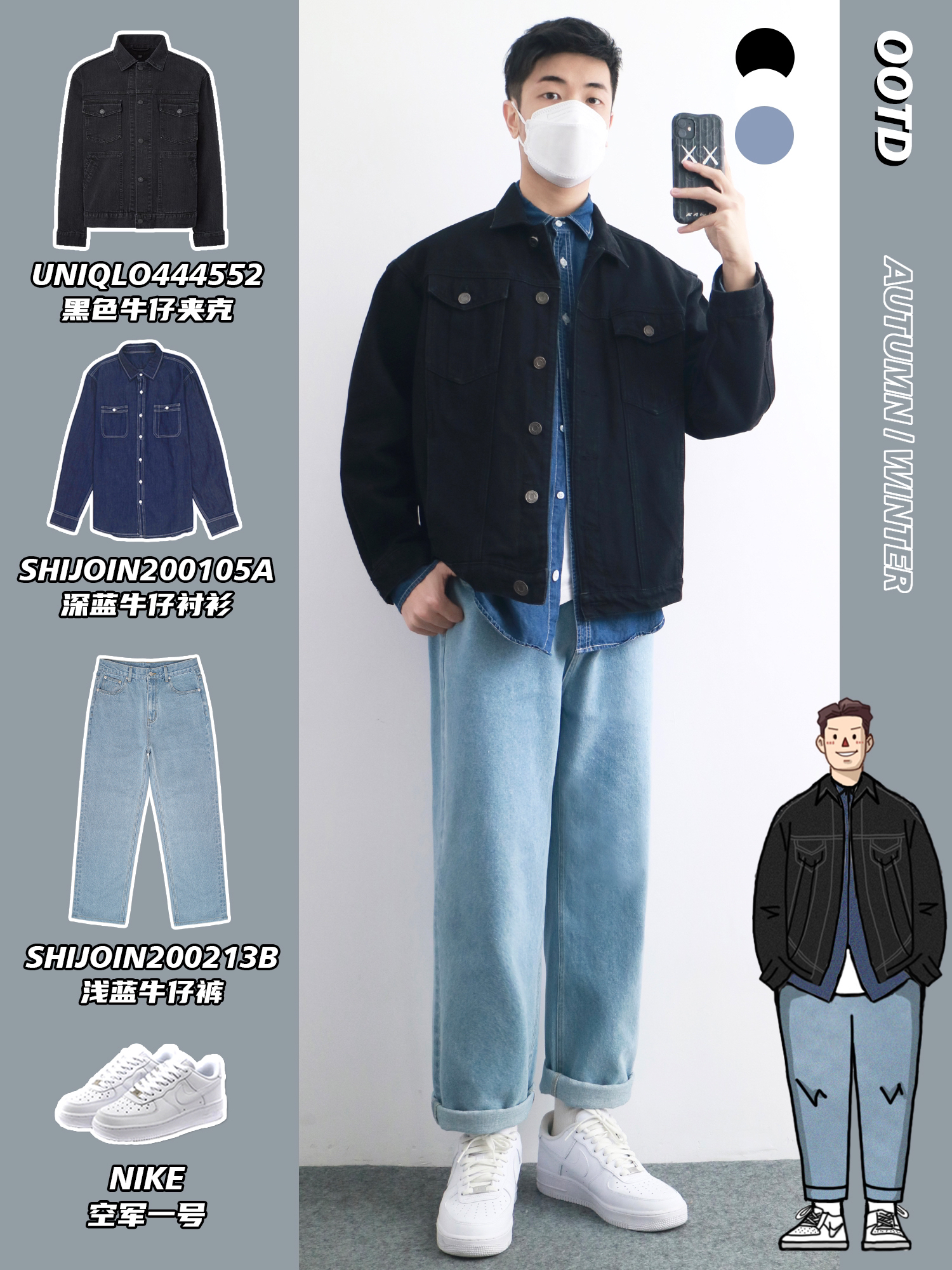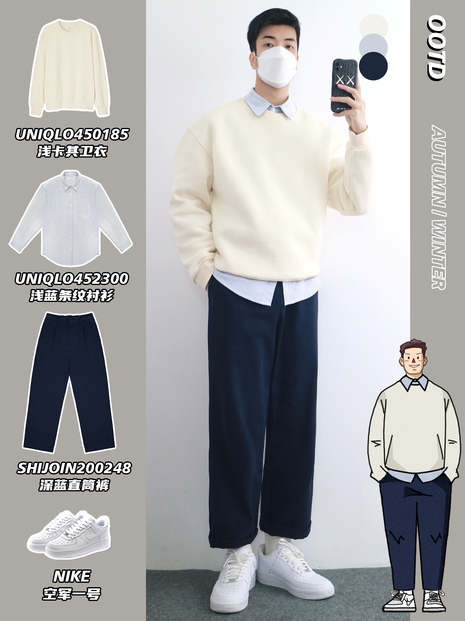 hello,穿衣显瘦脱衣有赘肉的小梁🙋来了! 相信很多人都被优衣库单品👔简约百搭的调性吸引,可是却总是穿不出优衣库模特的高级感🤷,本期小梁分享5️⃣套男生秋冬休闲叠穿,没有明显的颜色跳跃,整体和谐有序✅,基本款也可以搭出高级感‼️ - look1️⃣ 米色圆领卫衣+浅蓝条纹衬衫+深蓝直筒裤 look2️⃣ 飞行员夹克+灰色卫衣+黑色束脚裤 look3️⃣ 黑色牛仔夹克+深蓝牛仔衬衫+浅蓝牛仔裤 l...