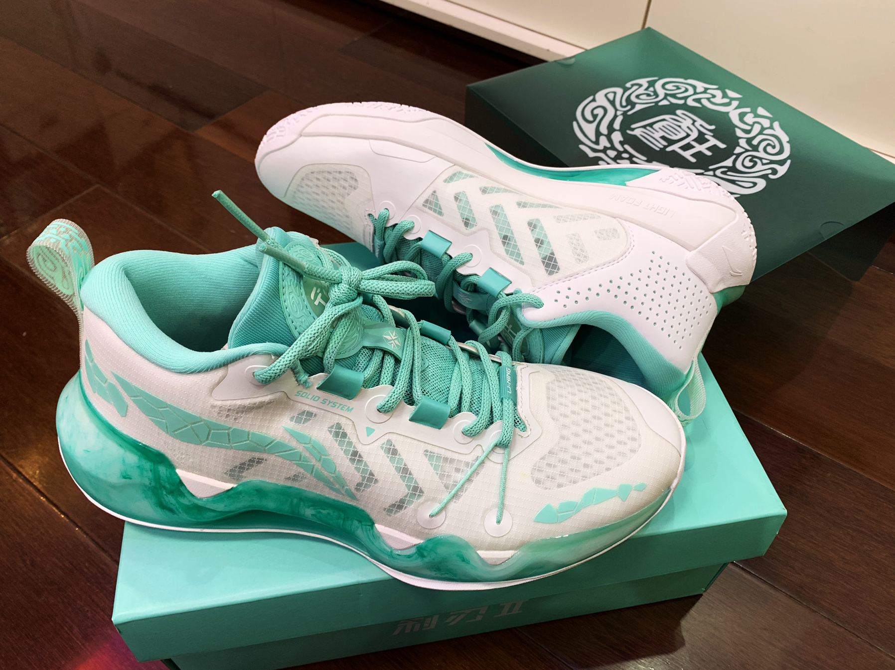👟球鞋名称:李宁 利刃2 低帮/石中玉 👀省流版:颜值>实战、李宁常规配置、2开普通配色、4开特殊配色,同价位选择很多,没有什么特色。 ✅特色:前掌䨻轻弹、solidsystem系带系统、整体填充较为厚实、鞋面透气、中国风配色颜值颇高、特殊鞋盒、外底拼接设计很讨喜 ❌不足:前掌偏宽 包裹不足,导致顶脚趾很严重、防侧翻角有开胶风险、外底抓地性能一般,容易打滑、后跟重心略...
