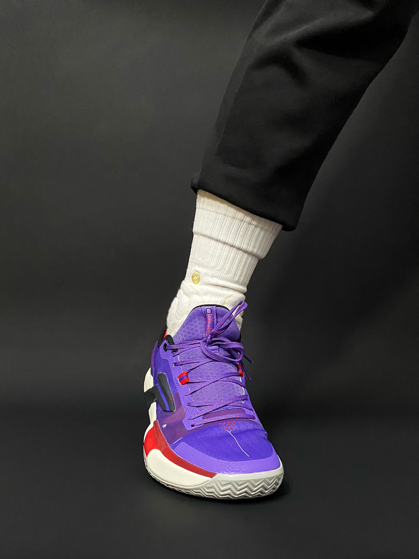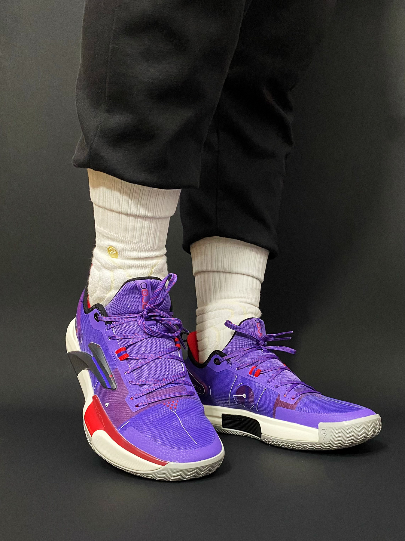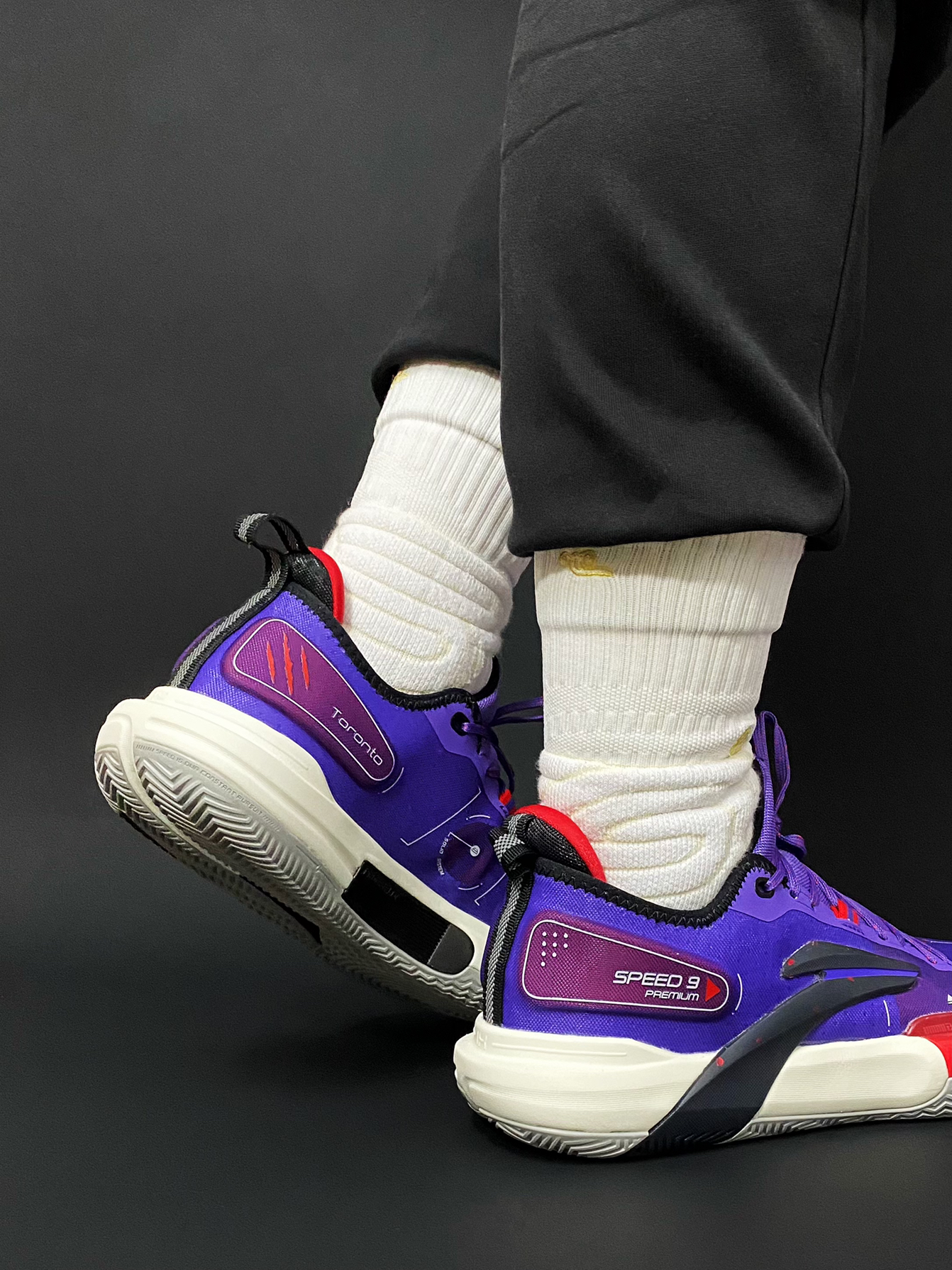 目前冰点的价位,闪击9这双鞋还是非常值得推荐的,很适合轻体重后卫前锋。 1️⃣外观方面,配色以紫色为主,用少量的红色进行点缀,设计细节的地方,就是鞋身内侧和鞋垫都印有红色的爪印。这个配色是比较耐脏的,对不喜欢打理球鞋的朋友是一个很好的选择。 2️⃣配置方面就简单的说一下,全掌的lightform框架,前掌添腹式䨻,搭配超大铲型tpu,初上脚,能感觉到鞋子很轻,但舒适度不是那么的好,整双鞋的脚感是偏...