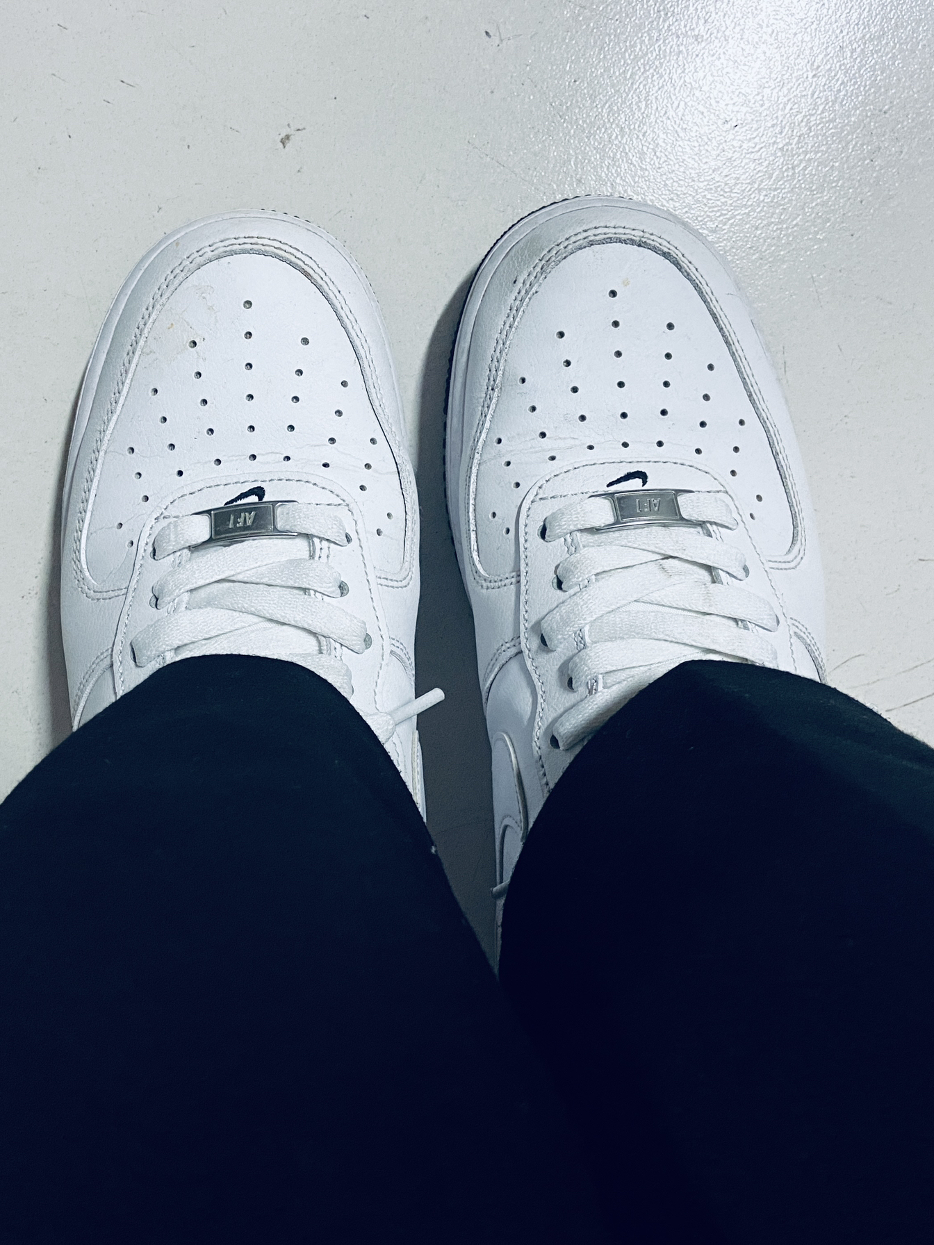不知不觉这双鞋子已经穿了2个月了 也是我穿着最多的鞋子最喜欢的鞋款 很爱护我的每一双鞋子 因为它陪我们走了很多路 整体白色的鞋身,黑色的中低黑色的鞋尾 很简单很百搭 基本上能够搭配我的所有衣服 自己很喜欢,我鞋柜里最多的也就是AF1 我的女朋友也很喜欢空军一号 入手的时候是749原价入手的现在来看这个价格确实很香 挺耐穿的大爱鞋款!