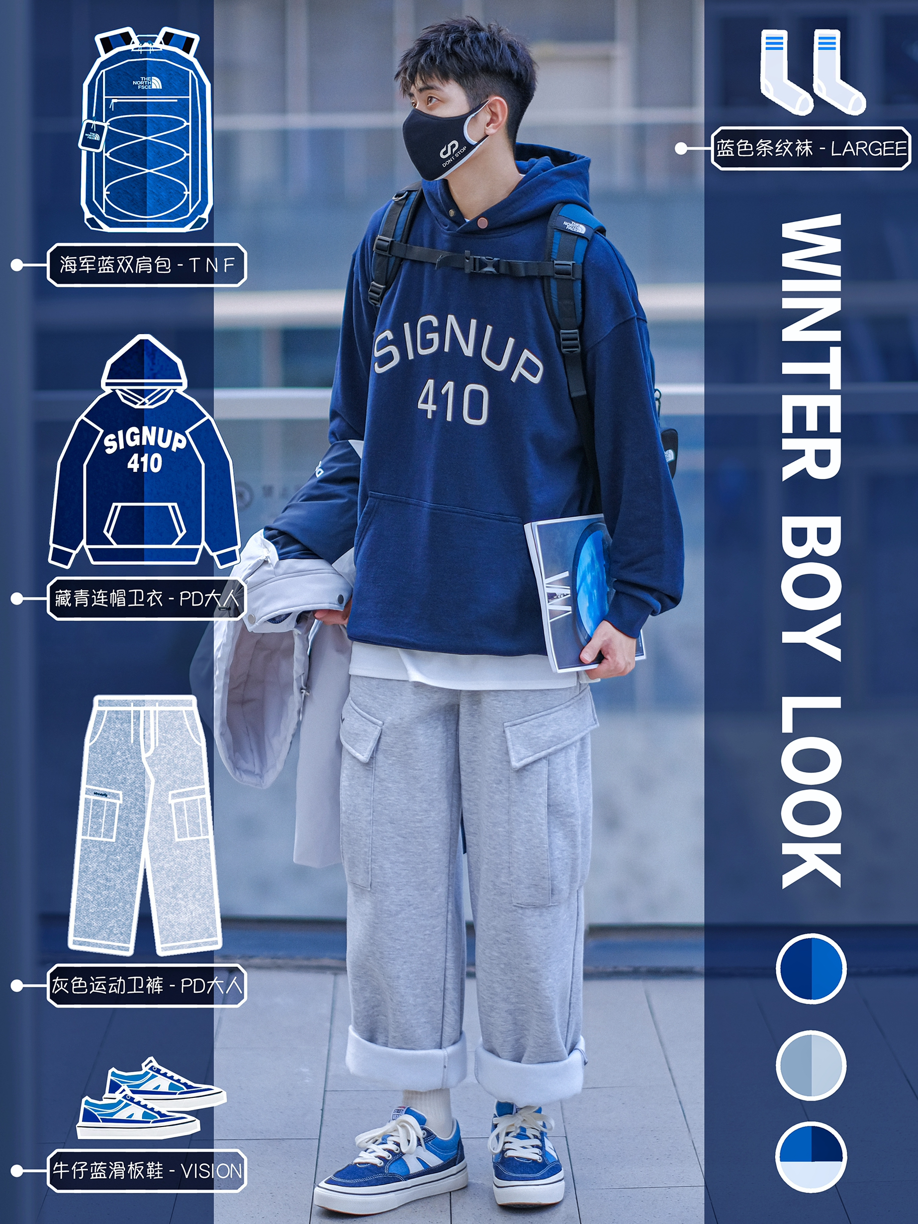 🔹我!真的!好喜欢!穿“卫衣”!🌀💤 — ⚠️本人身高|体重:176CM|63KG(🉑️参考) — ⭐️关于今日份“蓝色系”少年感穿搭:“蓝白双色搭配”🔵⚪️: · 1⃣️·🔵【藏青色】连帽卫衣,复古日系单品,色感清爽,满满的校园少年感!✨ 2⃣️·⚪️【灰白色】运动加绒卫裤,简约宽松版型,保暖又好穿,好适合男生秋冬懒人穿搭!✨ 3⃣️·🔵【牛仔蓝】滑板鞋,深浅牛仔拼接,复古学院风单品,适合学生党...