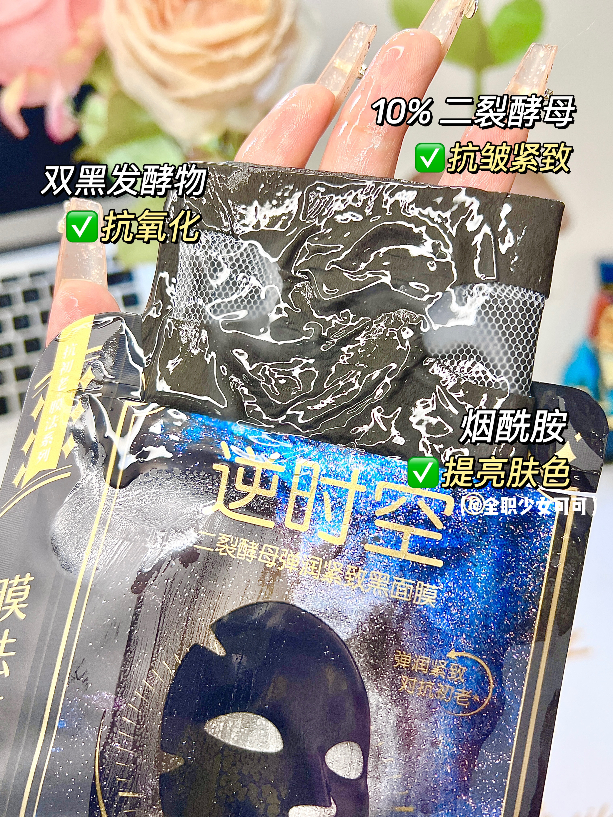 加班熬夜后,脸色蜡黄像老了10岁? 那就看看这个帮助疲惫肌肤恢复元气的好登西~🥰 🧚♀️不老女神王心凌安利的膜法世家逆时空黑面膜 不到10块的价格💰 却添加了小棕瓶同款贵妇成分二裂酵母!✨ 10%的浓度抗zhou紧致效果直接拉满!💪 还有双黑发酵物抗Yang化和烟酰胺提亮肤色~ ✅美丽修行成分全绿灯,敏感肌也可放心使用哦~ 每次高压工作时,我都会用它来急救❗️ 哪怕熬了一晚大夜,敷了它第二天也能...