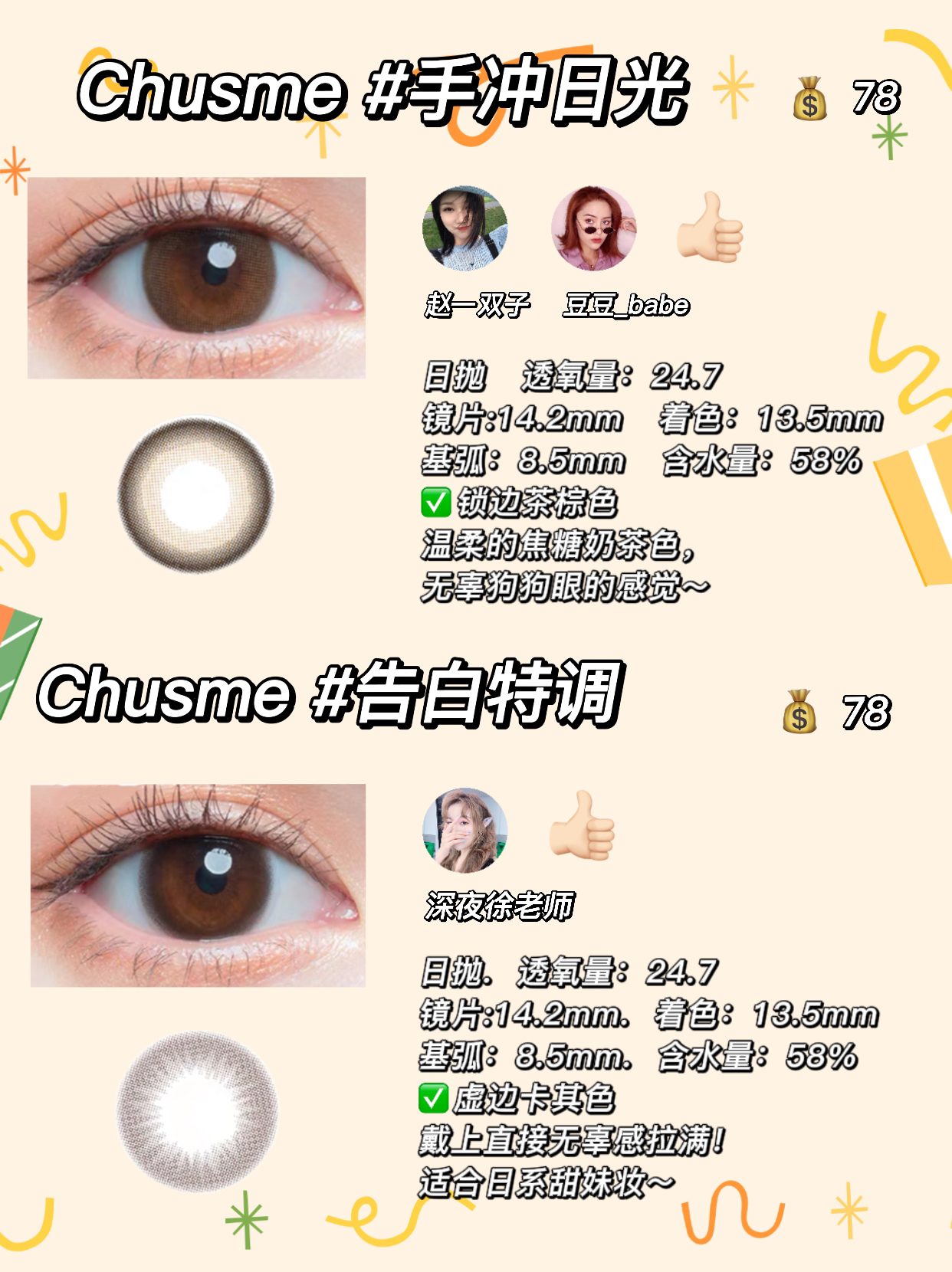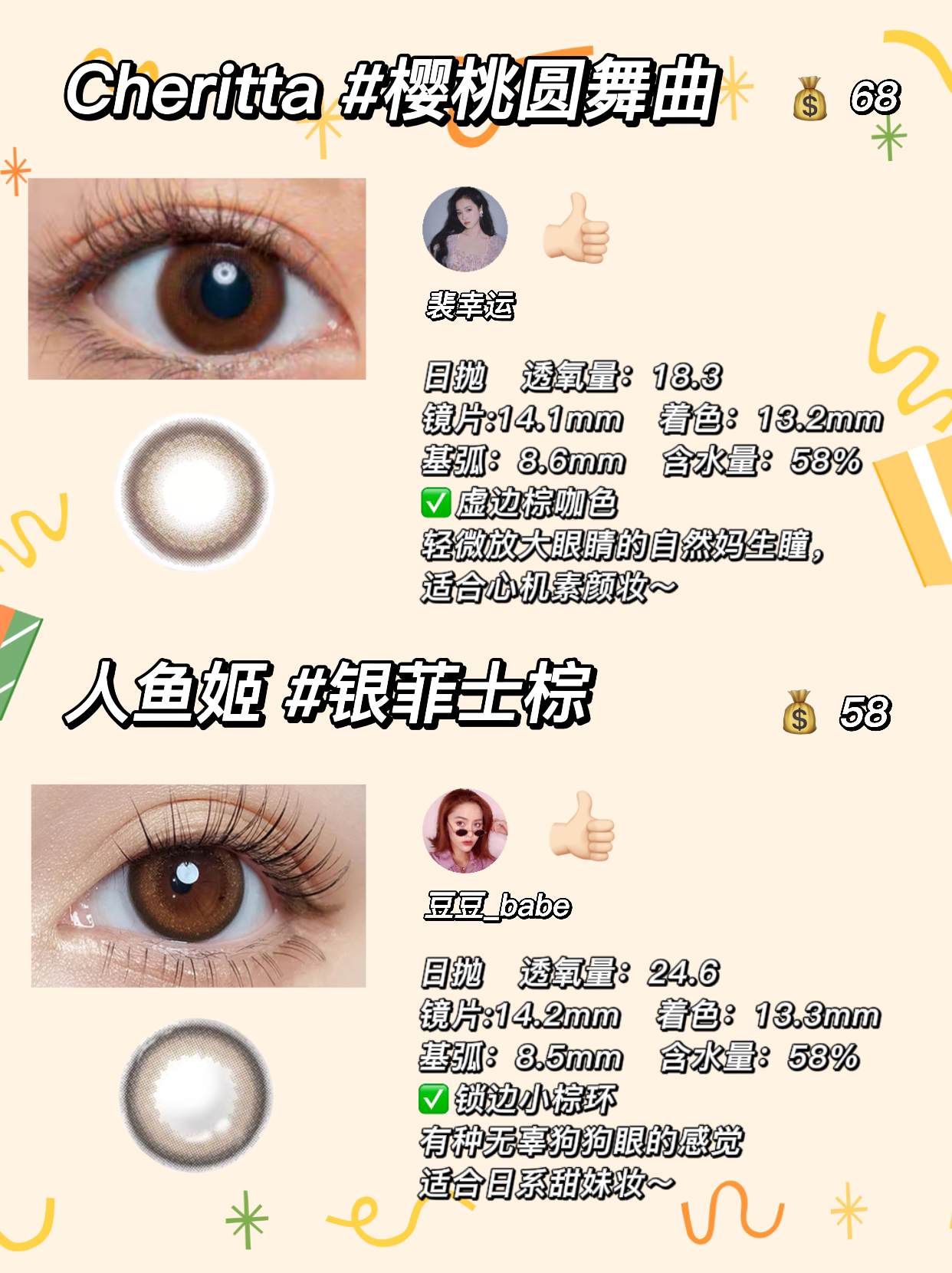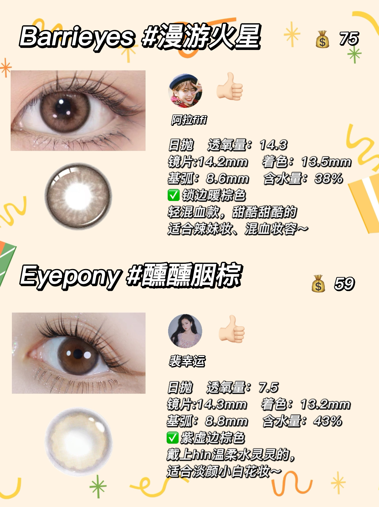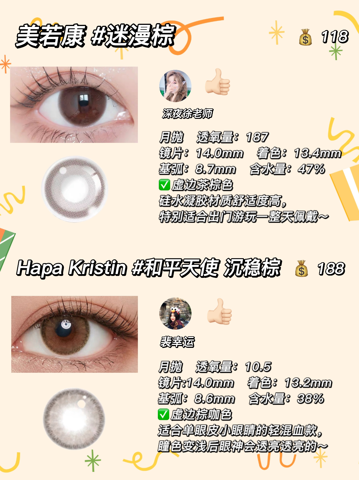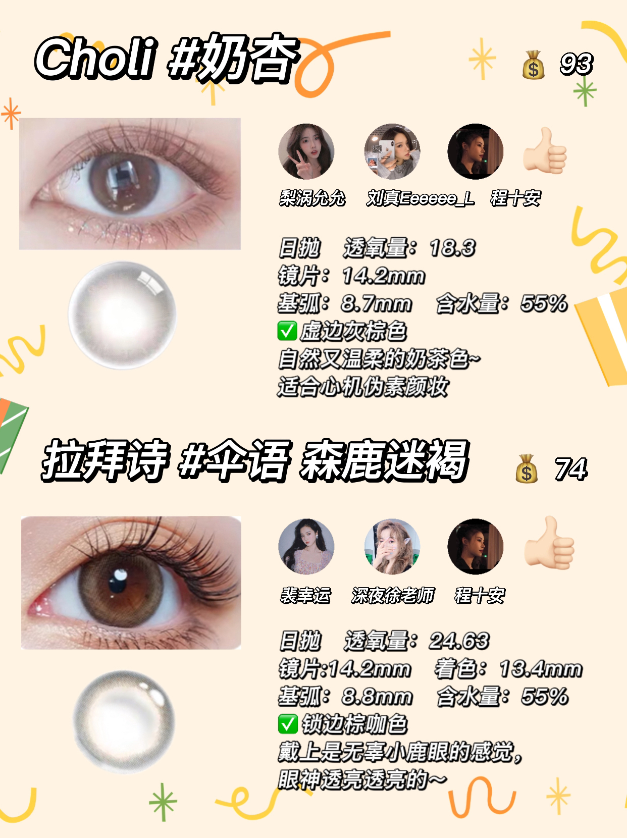 本篇笔记关联了choli 奶杏宙斯系列日抛小直径14.2mm美瞳 奶杏、拉拜诗 日抛伞语系列小直径美瞳 自然温柔微混血三明治工艺 森鹿迷褐14.2mm、Flanmy T-Garden月抛小直径14.0mm美瞳 枫糖蜜戚风等商品,为用户提供真实的使用体验和购买参考。