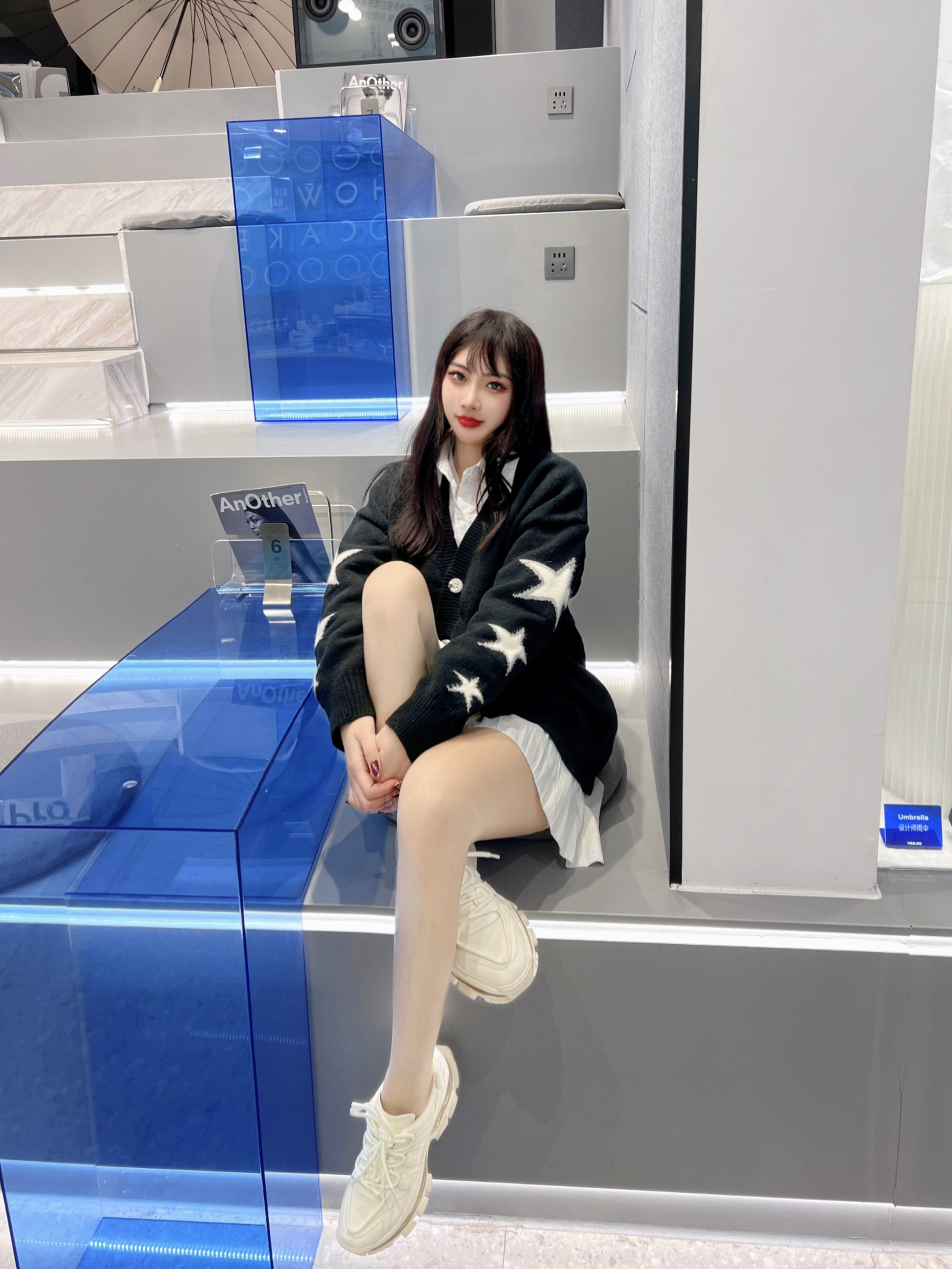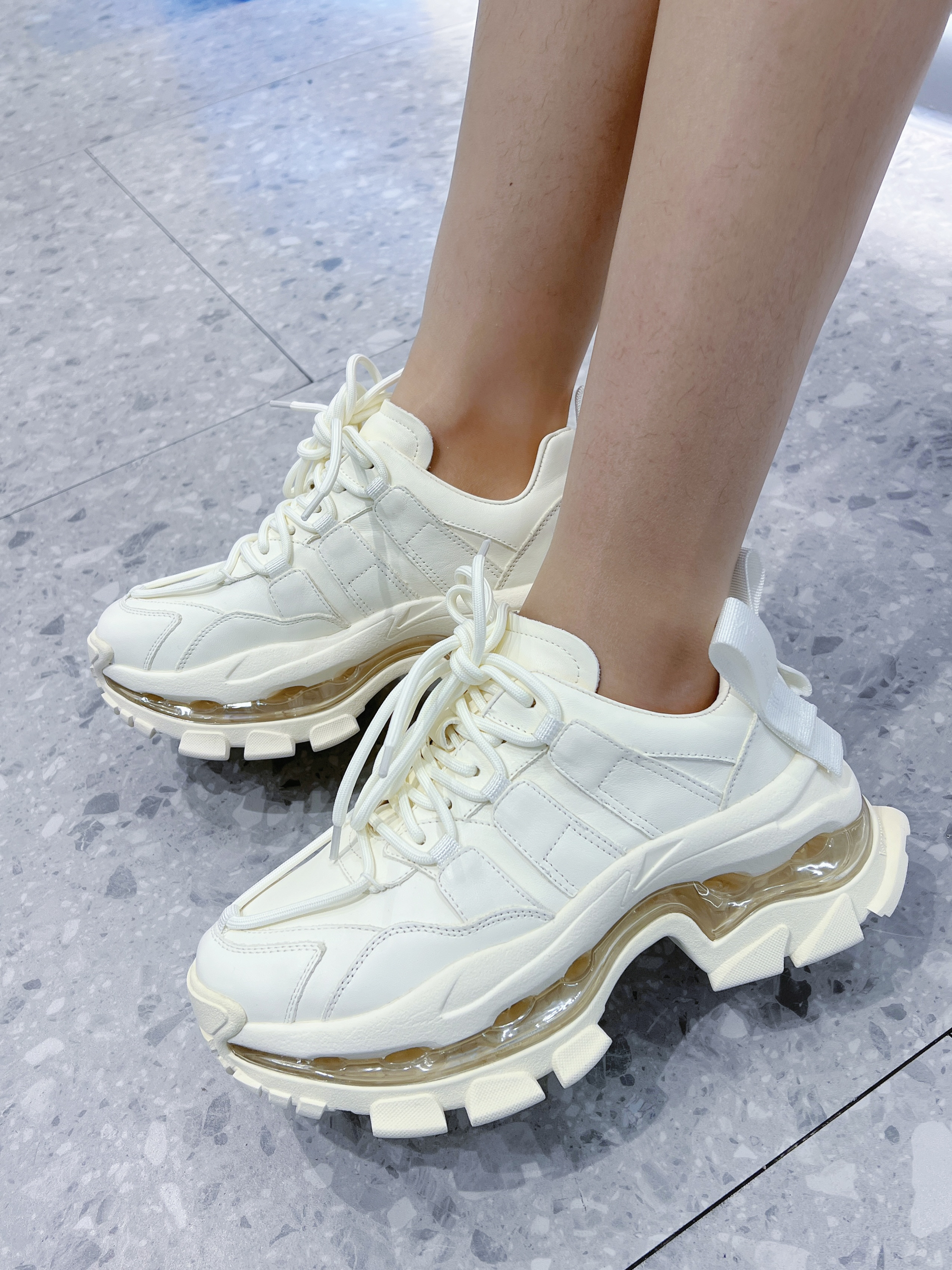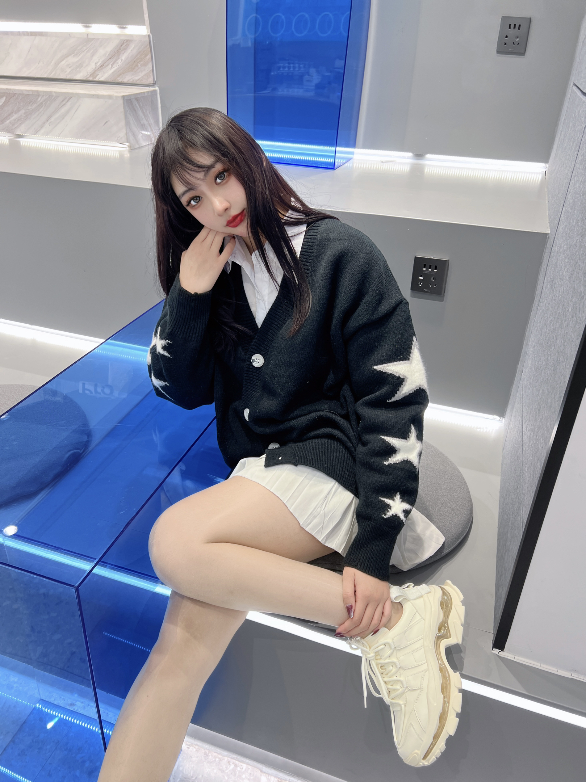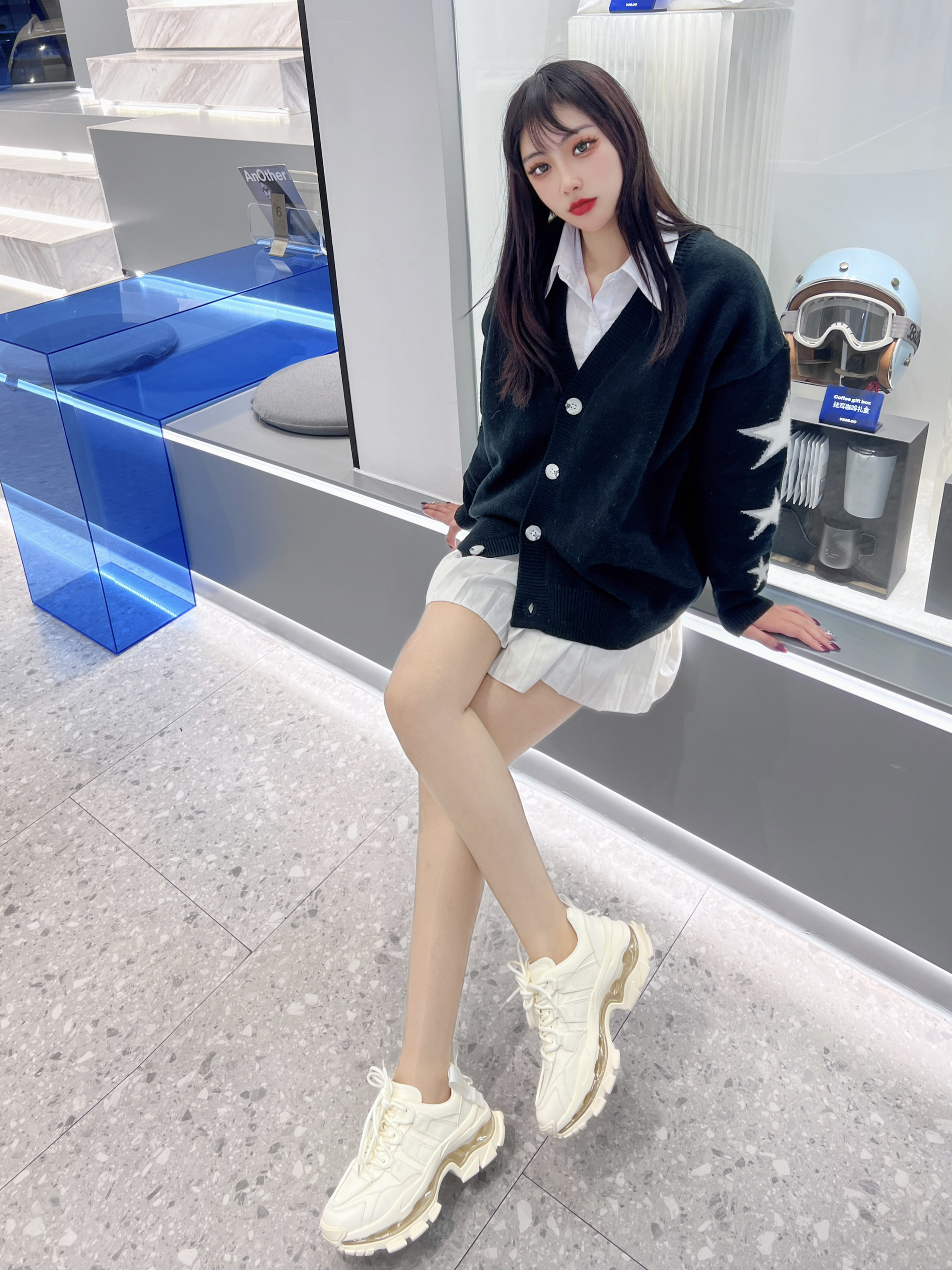 👟:VITTORIO VENTURA气垫厚底休闲绑带老爹鞋 🧦:涞觅 ⭐️今日份可爱女生穿搭,黑色的毛衣外套搭配白色的短裙,下身穿了涞觅的丝袜,还有这双厚底老爹鞋~ ⭐️头层牛皮的材质,双鞋带叠层交叉系带设计十分个性,7cm全气垫,增高显腿长,最近超爱的百搭鞋子,真的超级洋气~