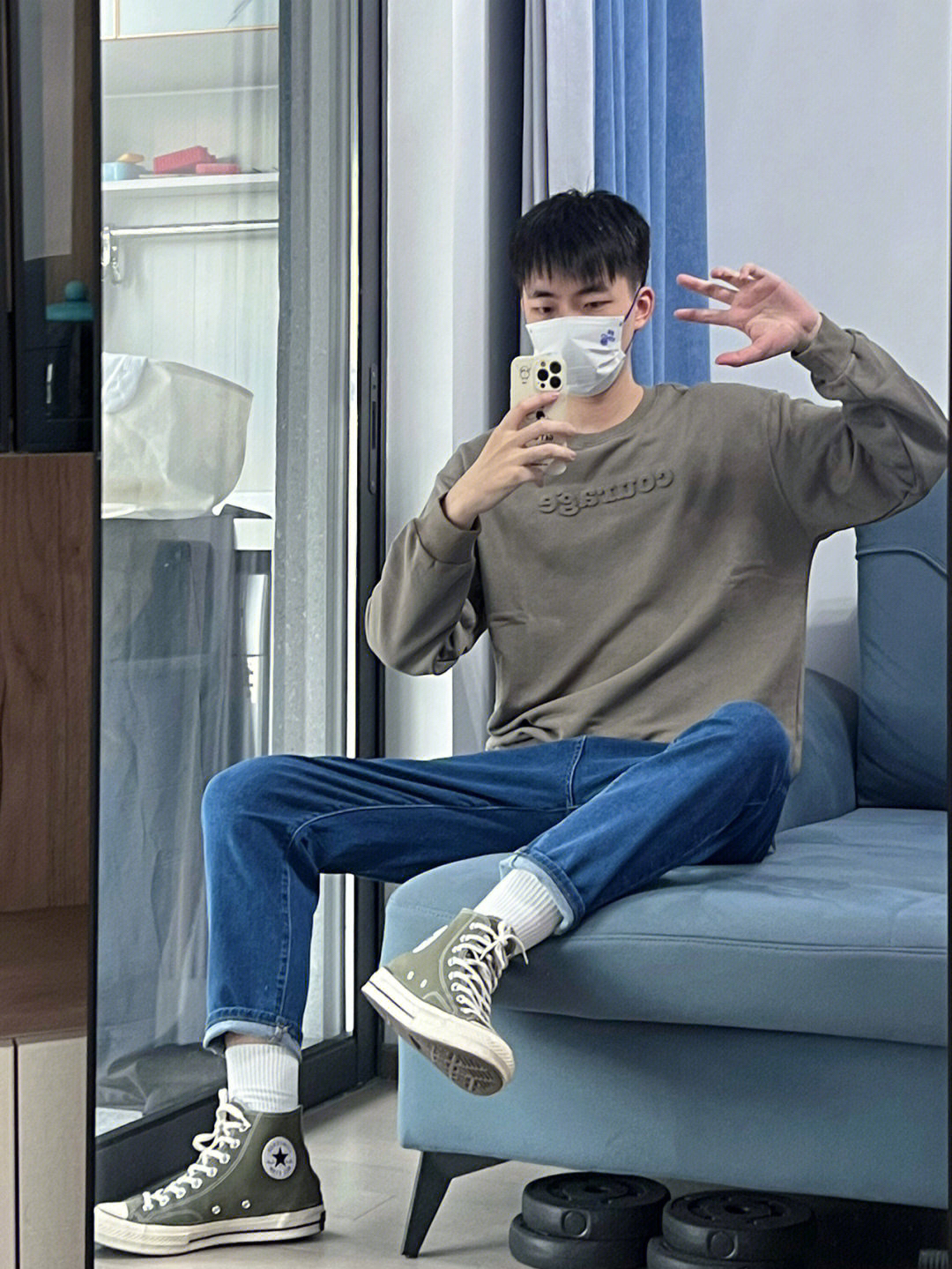 💙今天浅尝试了一下弹性比较大的紧身牛仔裤,颜色和传统的牛仔蓝一样,版型比较贴身体,配上同样轻薄款的卫衣,和窄脚的高帮帆布鞋,整体会让人小一个size。 💙紧身的牛仔裤,相比休闲裤来说,纯色的牛仔裤更好的显腿长,拉伸腿部比例。 (图来源于网络)