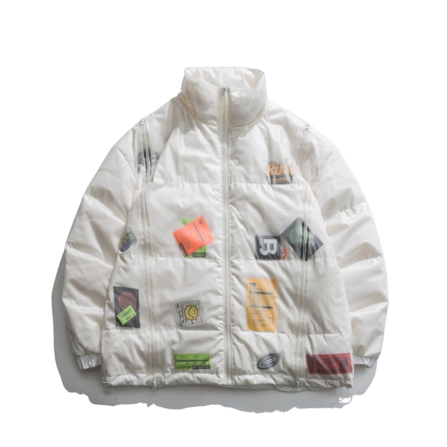 衣服领口采用立领设计 经典款式 松紧袖口 保暖性强 🤗 门襟采用拉链设计 丝滑拉链 拉住你想要的温度😉 五彩斑斓的贴标点缀 增加细节上的设计👏独特有个性 不易撞款 而且是透明的材质 更是独一无二⭐️ 搭配灰色束脚裤立马变身女大学生有没有? 图源自网络