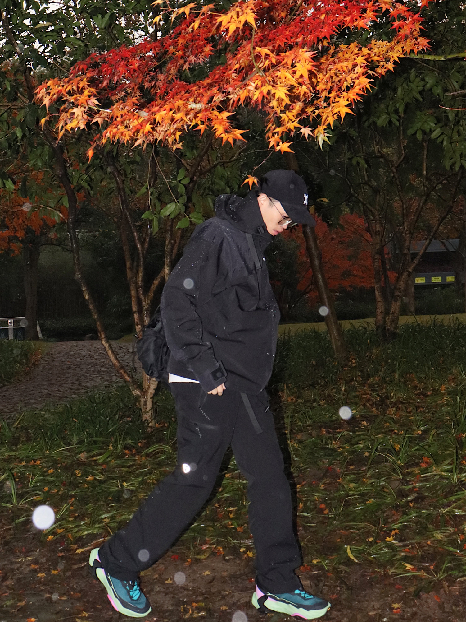 是永远都会心动的all black风! 如果只能选择一种穿搭风格的话 All black风永远都是我的首选 - 超高级的利落的冲锋衣内搭一件白T增加层次 配上一件同色系的休闲裤就会很有质感啦! - 超有未来感的撞色球鞋设计真的很戳我的心 亮眼的绿色+黑色+紫色等的碰撞真的很酷 而且它的鞋型设计比较炫酷 加上厚厚的立体鞋底 日常搭配起来运动潮酷感会比较重一些哦。