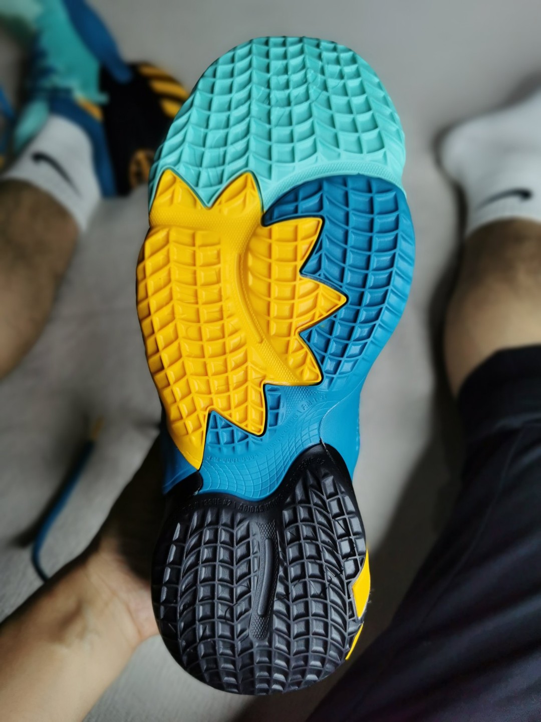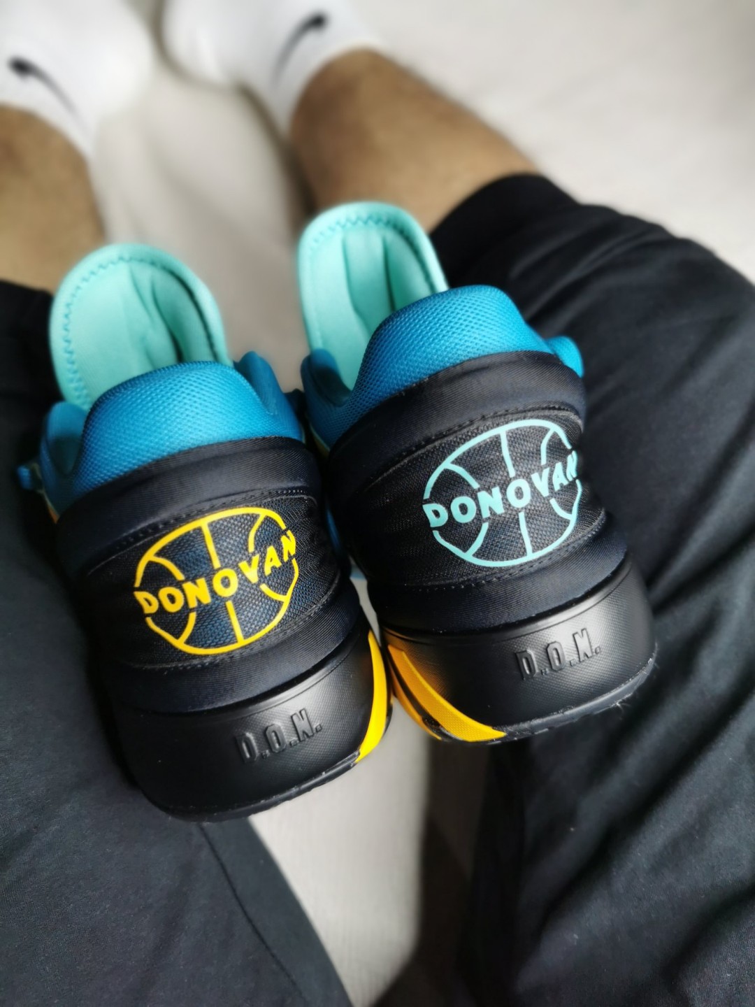 这双米切尔2配色挺帅的,看上去也比较清爽,色彩搭配得蛮不错,细节挺丰富。 1.左右脚后跟位置的 DONOVAN标识分别以蓝色和黄色呈现,颇有鸳鸯视觉感,四种颜色组合的大底看上去也很赞。 2.鞋垫上面的漫画图案是米切尔2018年获得最佳突破运动员奖的高光时刻。 3.鞋身外侧波浪纹处注入了 3M 反光设计。 都知道米切尔2实战性能不错,后跟填充非常厚实,包裹性特别好,脚如果不是特别特别宽和肥,正常...