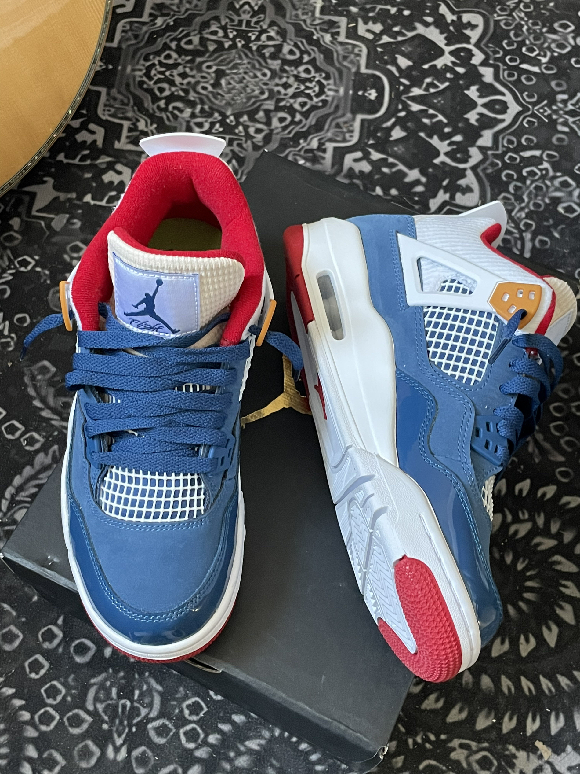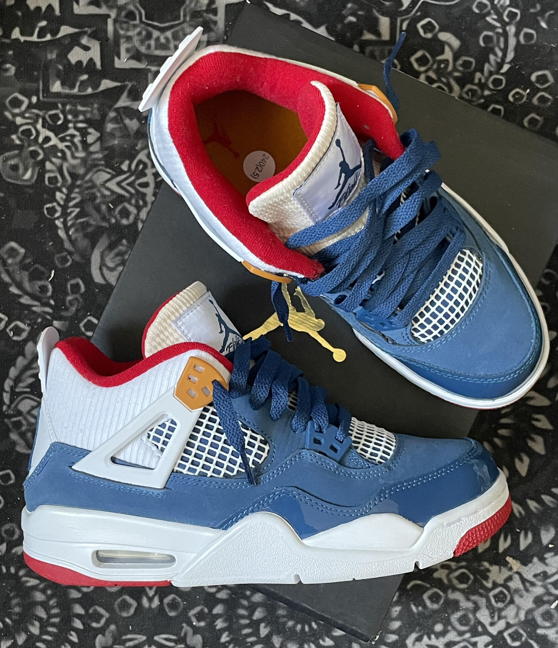 本篇笔记关联了Air Jordan 4 运动休闲鞋 舒适缓震防滑耐磨复古简约时尚百搭支撑织物合成革轻质 GS/法国蓝/白色等商品,为用户提供真实的使用体验和购买参考。