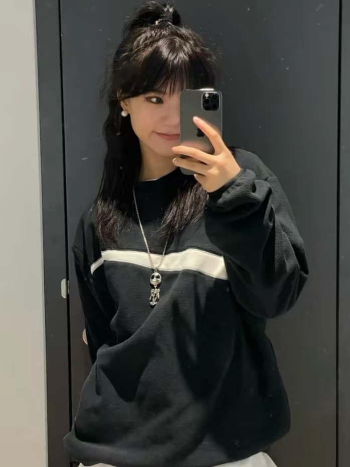 🌈布料很隔风的感觉,穿上挺不错的,我的身高体重165 43Kg 很暖和,这个颜色也不显黑,不粘毛图案印花清晰水洗也不易掉。 ☀️布料超级舒服,版型不挑身材,没有多余的线头上身好看,宽松的版型,真的超级韩系有种韩国女高,衣服很好看。 (图来源于网络)