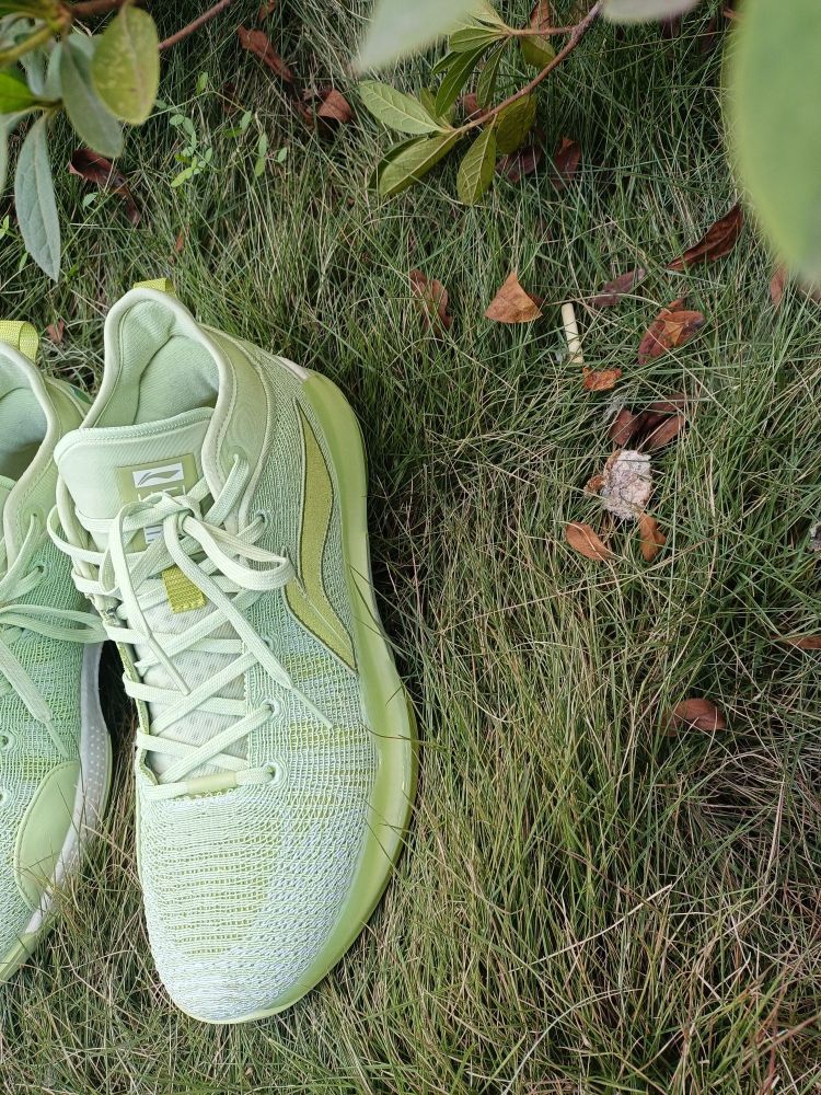 草丛里怎么突然多了一双篮球鞋啊?原来是驭帅13䨻香草绿啊😁它碧绿的外观和青青草地交相辉映,真是好看啊!你认为它是一双又帅又能打的实战篮球鞋吗?😺