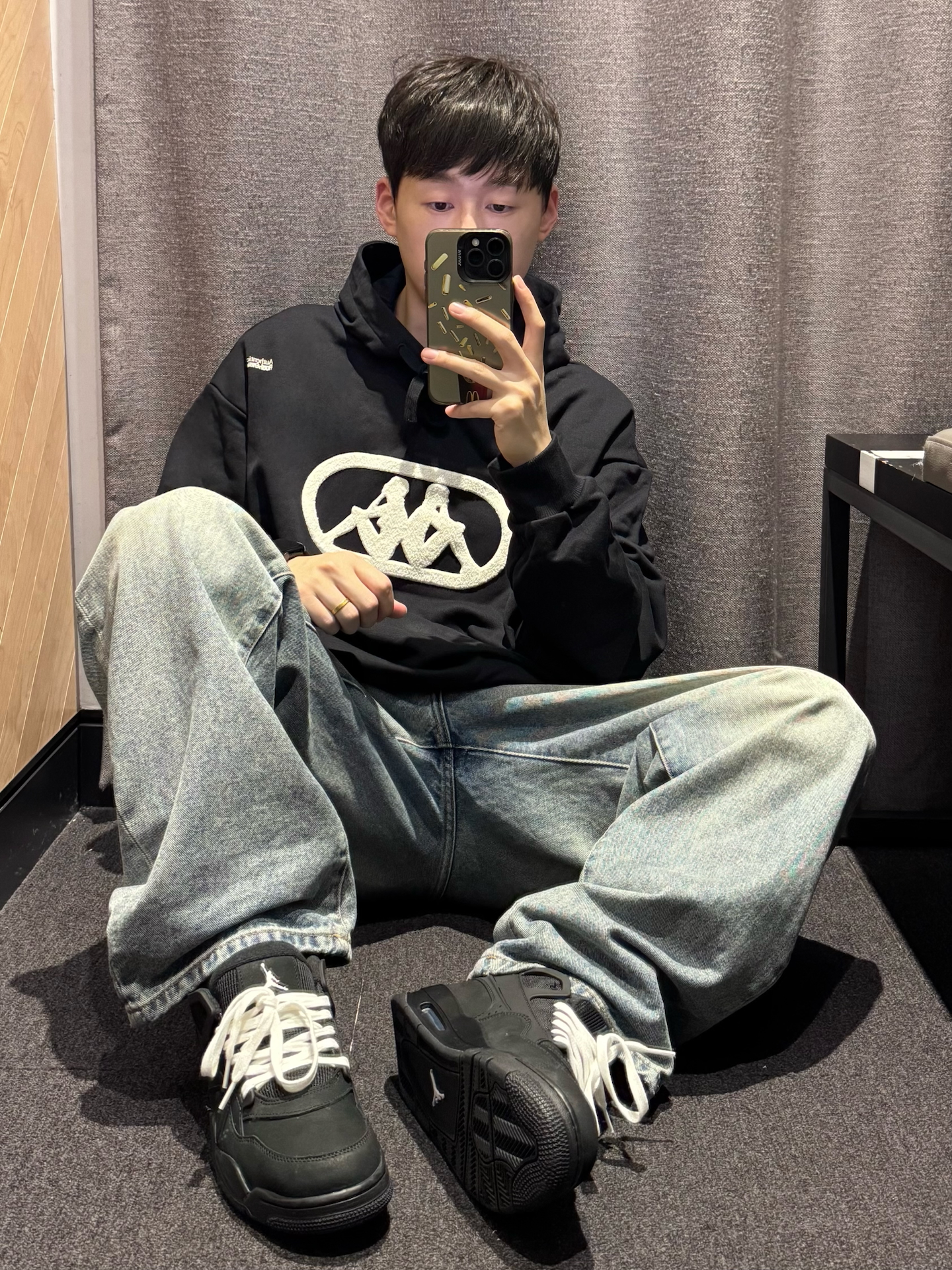 北面卫衣湛青色,真的好看,美美的! 这身穿搭真的很OK!出街穿美美的! 黑色织物帽+湛青色卫衣+黑色运动裤架米白休闲鞋 今日穿搭,你Get到了吗?