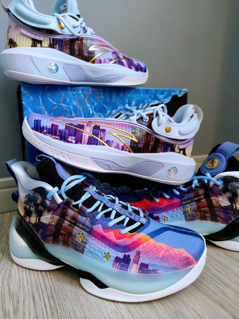 🌆Kt8历城配色也发售了,这个配色也是kt的经典配色,以勇士所在的奥克兰和旧金山为灵感注入,两地标志性建筑及景色再配合蓝紫色主调一同呈现,kt7的金星变成安踏的金标,也是非常霸气的⭐