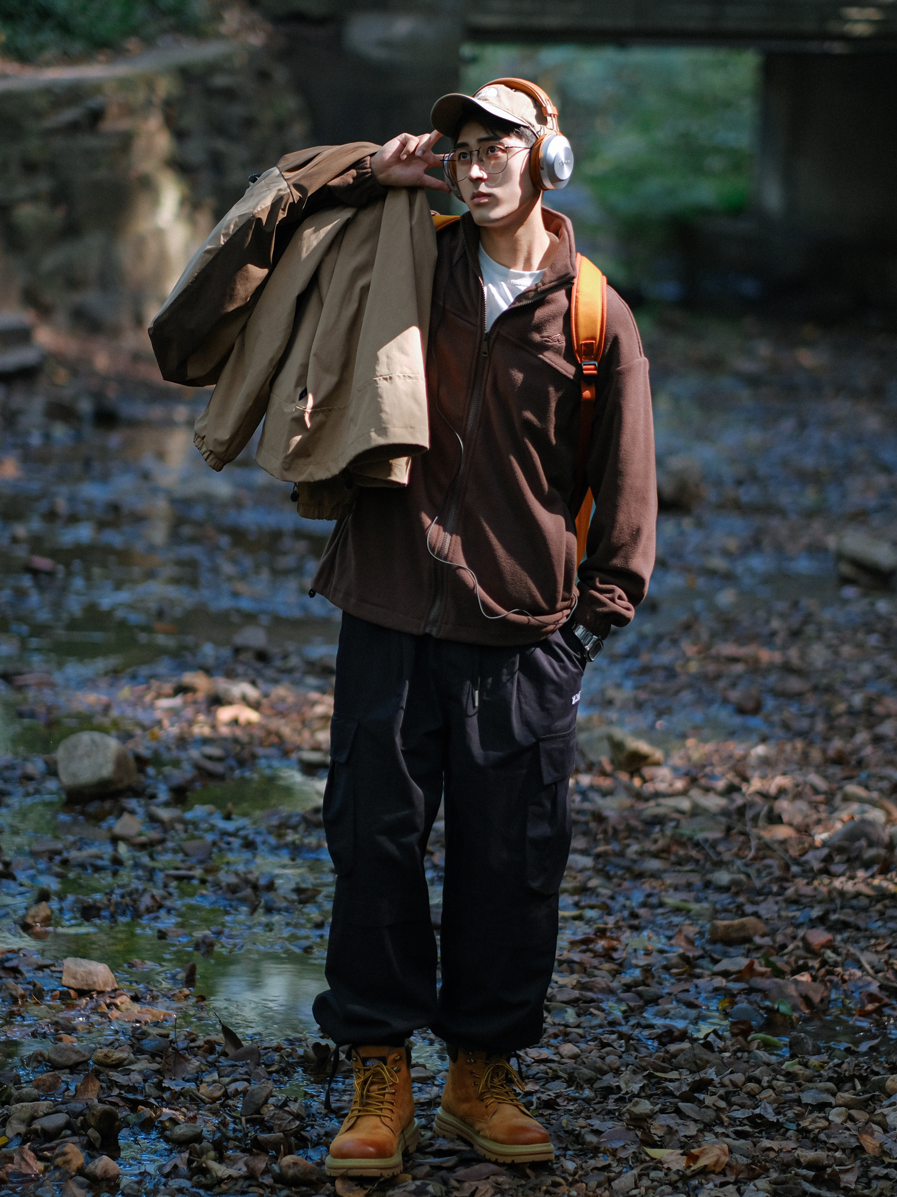 ▪️答应我!这个冬天—定要尝试一下“冲锋衣”户外山系穿搭!🔝✔️…… — ▪️这个周末虽然有点冷,但是天气很不错!所以约了朋友来九溪徒步拍穿搭,顺便呼吸一下山里的新鲜空气!今天这套“冲锋衣”秋冬叠穿,整体色彩低饱和大地色系,真的好适合普通大学生的周末穿搭,简简单单。另外,细节搭配上,双肩包和马丁靴的亮色,增加了整体色彩的层次感,好适合男生冬季穿搭!😊✨…… — ⚠️本人身高|体重:176CM|63...