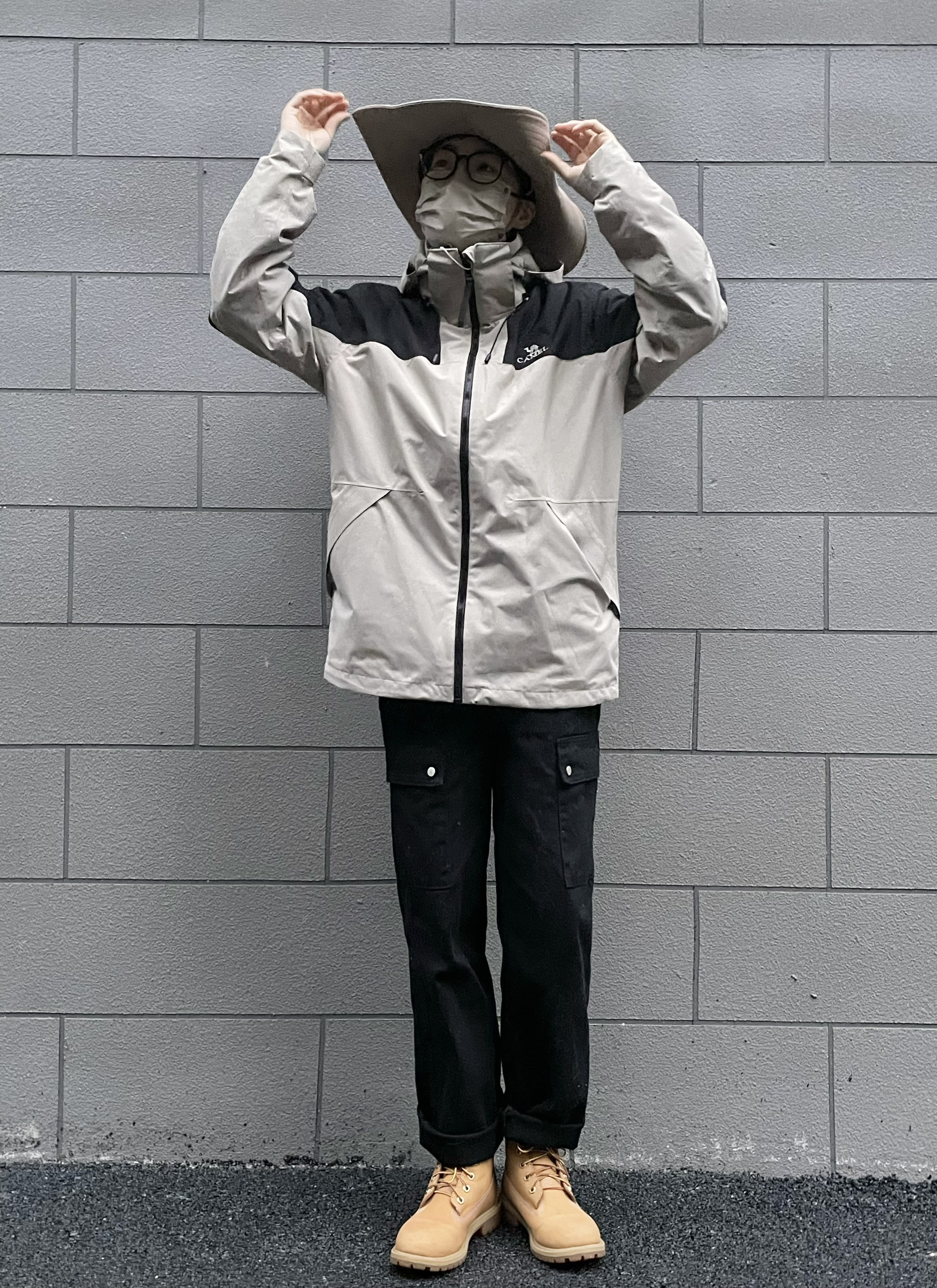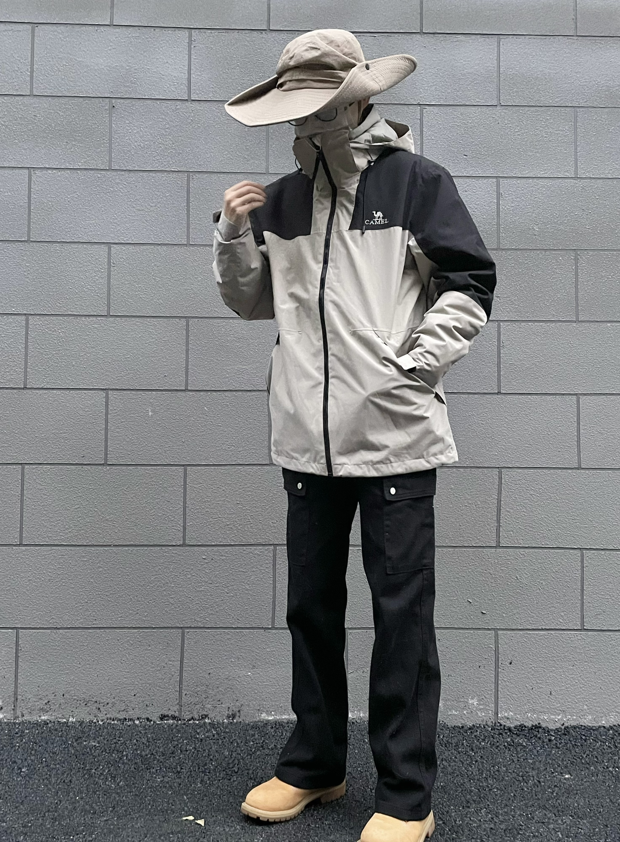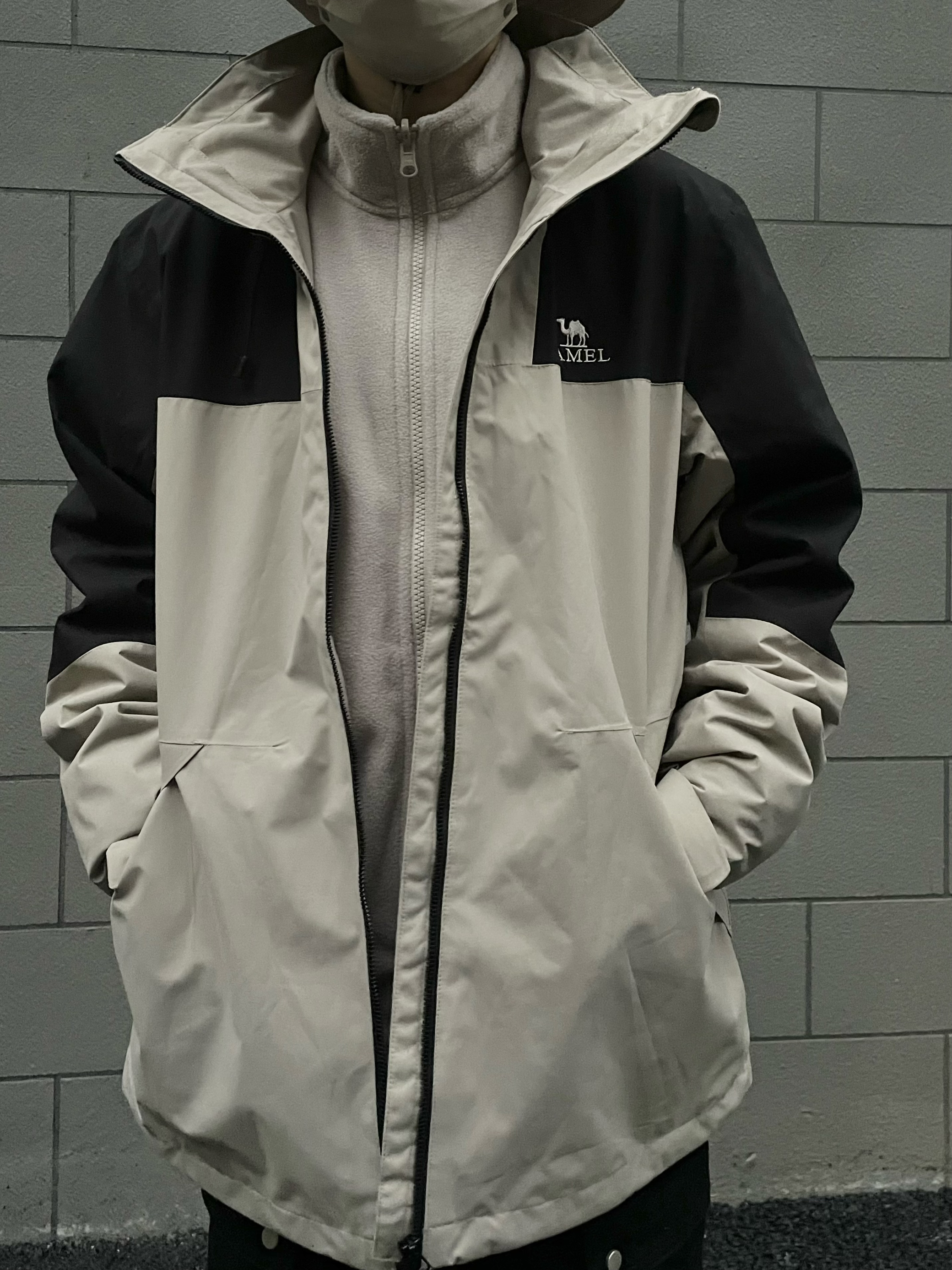 防风效果杠杠的 这个拼接我太喜欢了 卡其色和黑色 超级适合秋冬啊! 内里有摇粒绒内胆 是三合一 可拆卸 买一件三种穿法 配上摇粒绒超级暖和 跟北面相比 真的性价比超高 而且完全不输 面料也是防水的材质 雨天也不怕 搭配上踢不烂 户外风拉满 👔:camel 👖:KGK 👟:Timberland