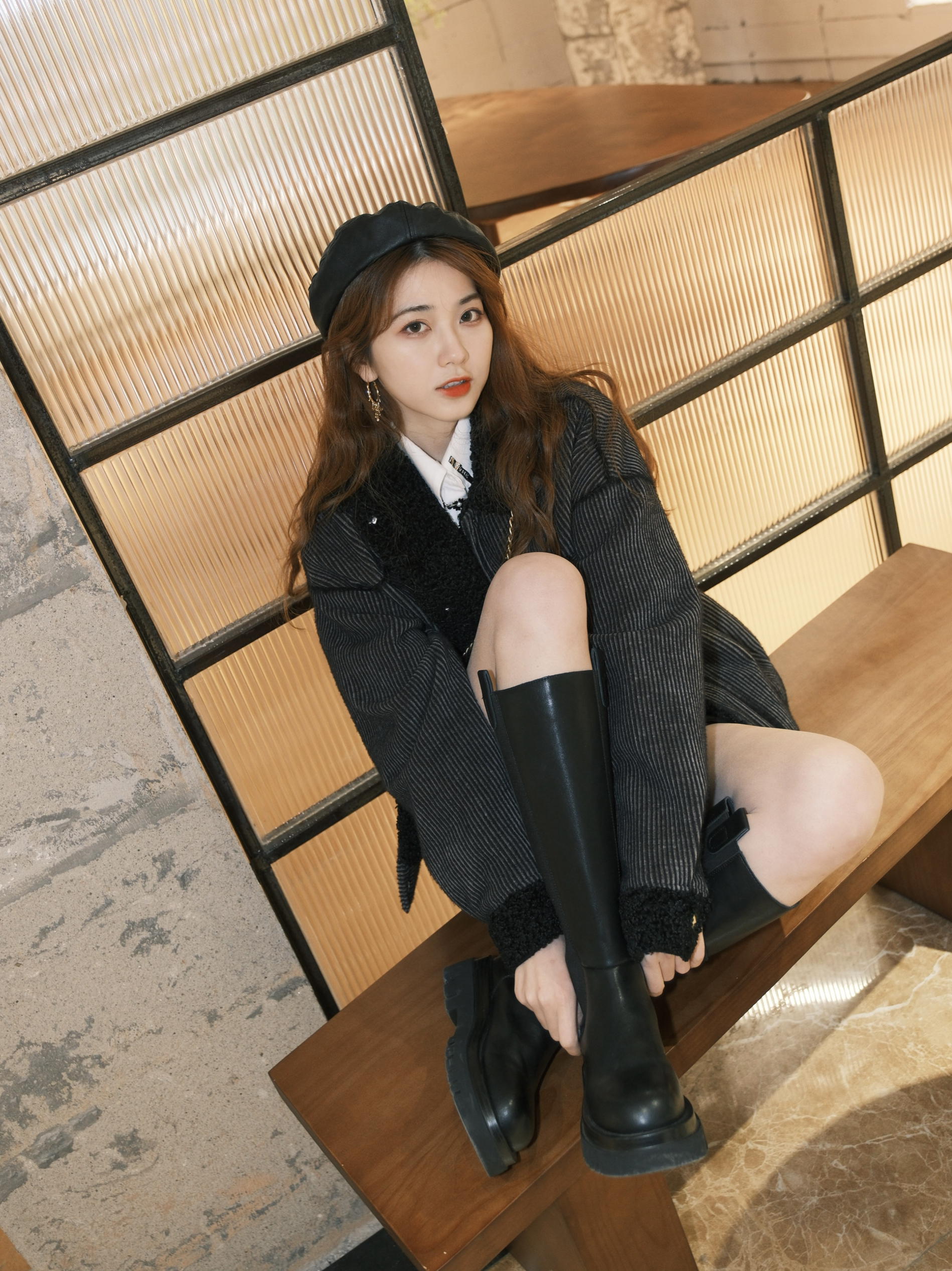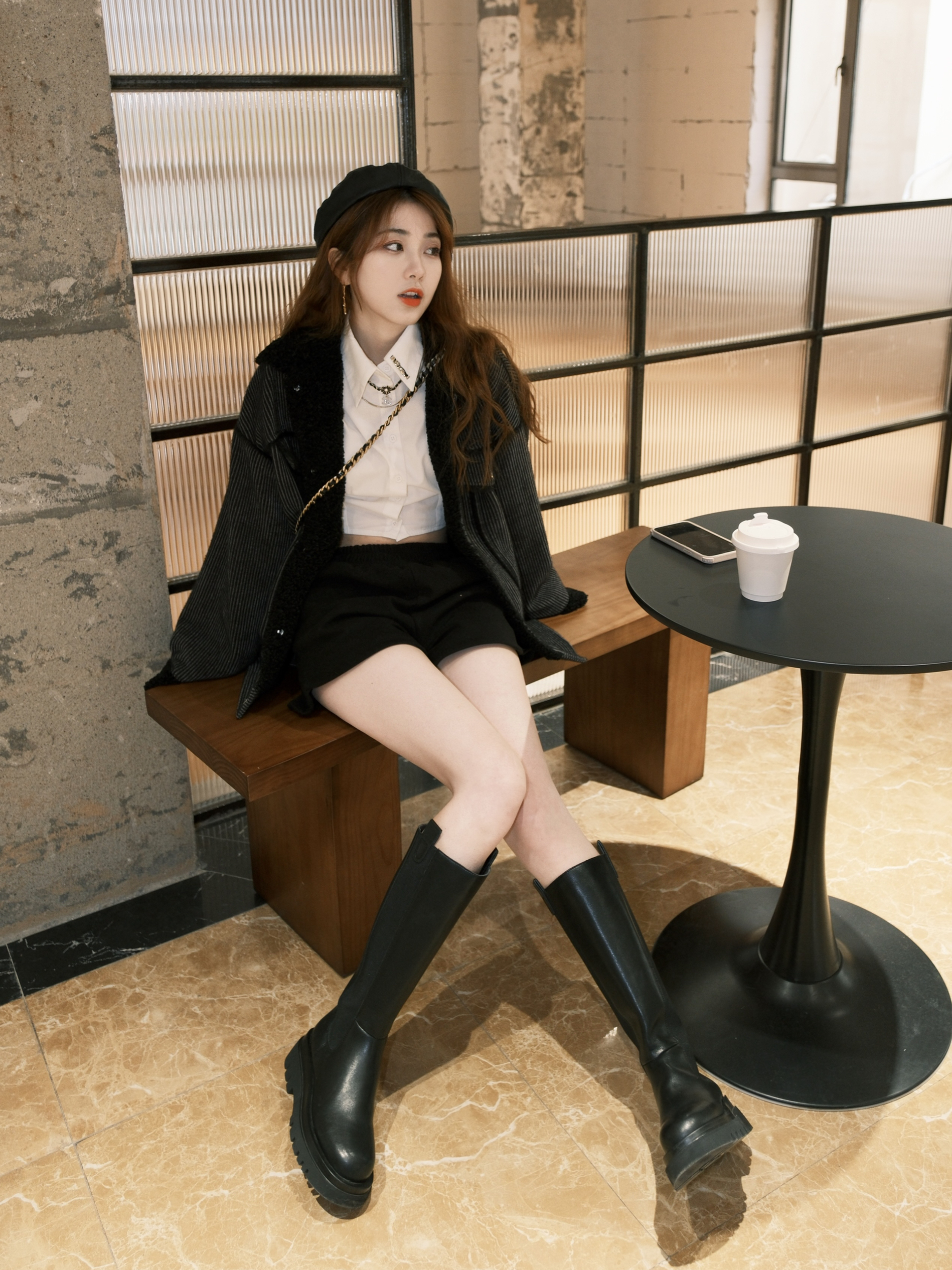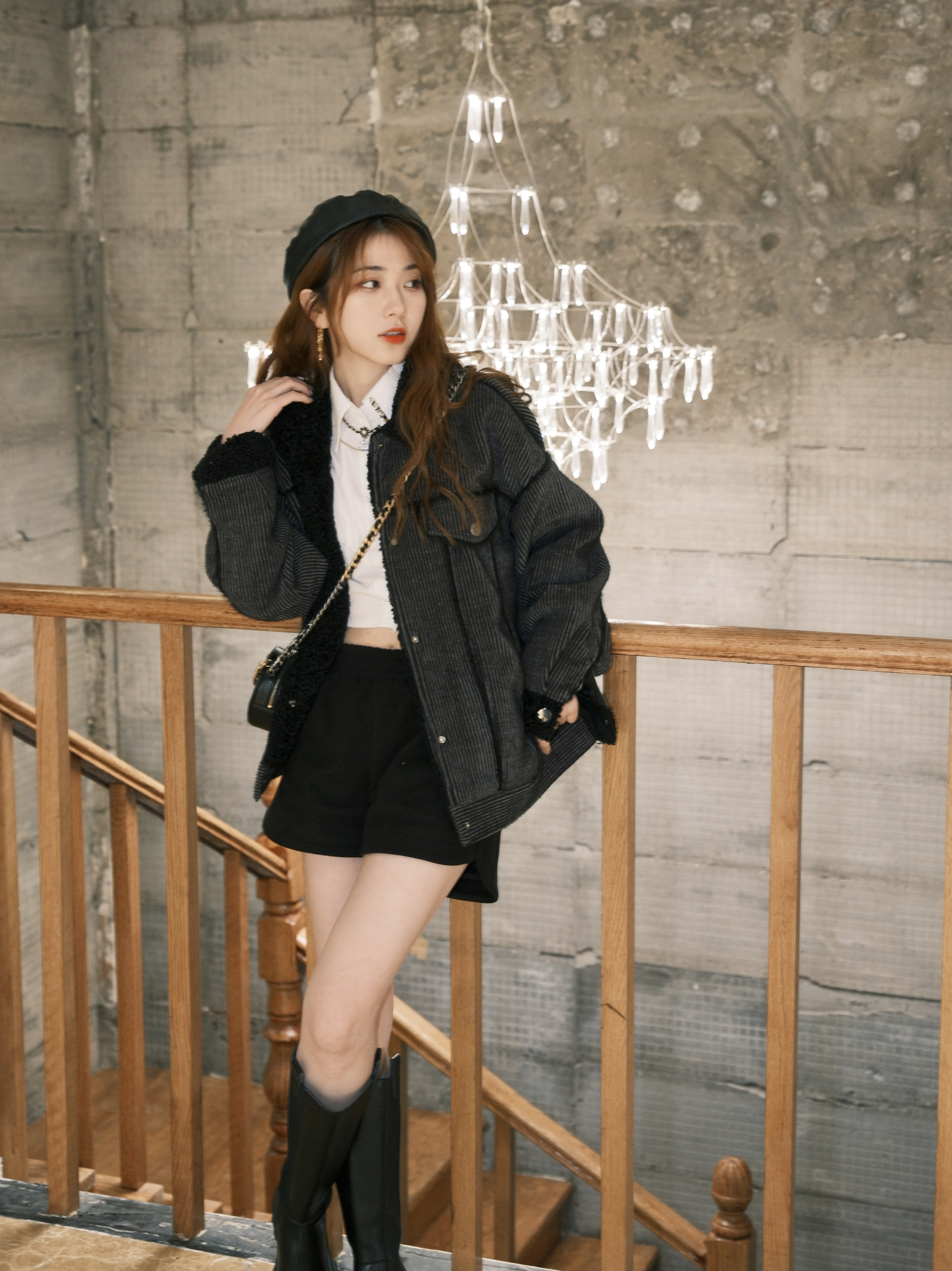 最近太爱学院风了 休闲的毛绒夹克外套➕白衬衫 衬衫外面可以搭配一条小项链增加点缀 皮质贝雷帽也是我秋冬经常戴的单品 当然高筒靴也是我秋冬出门经常穿的 冬天可以穿短裤和小裙子咯 这双也是最近新入的,很嗲 喜欢这种经典简约的,版型也有点像骑士靴 筒口宽,显的腿更细 大小姐风格一下子就来了