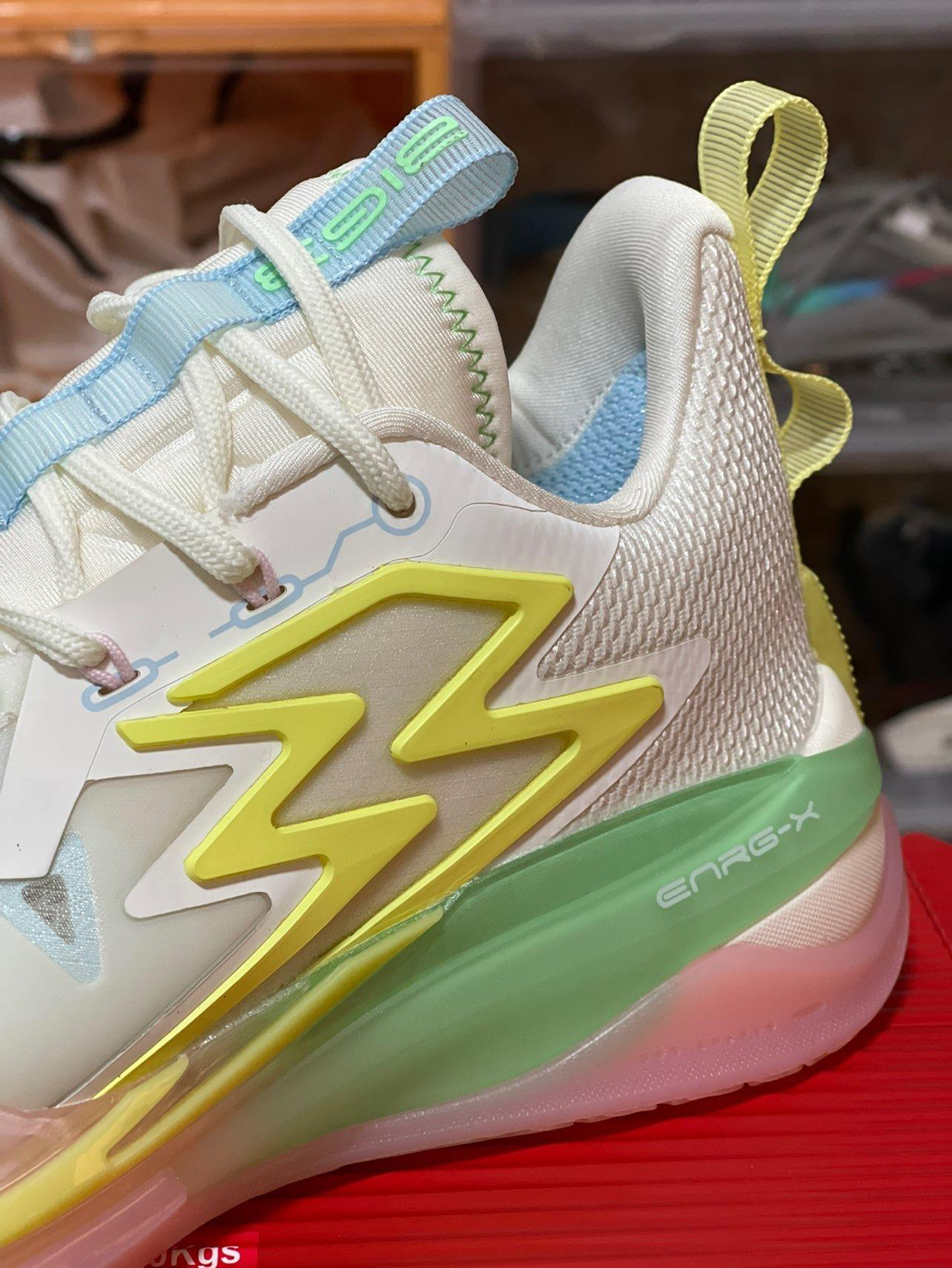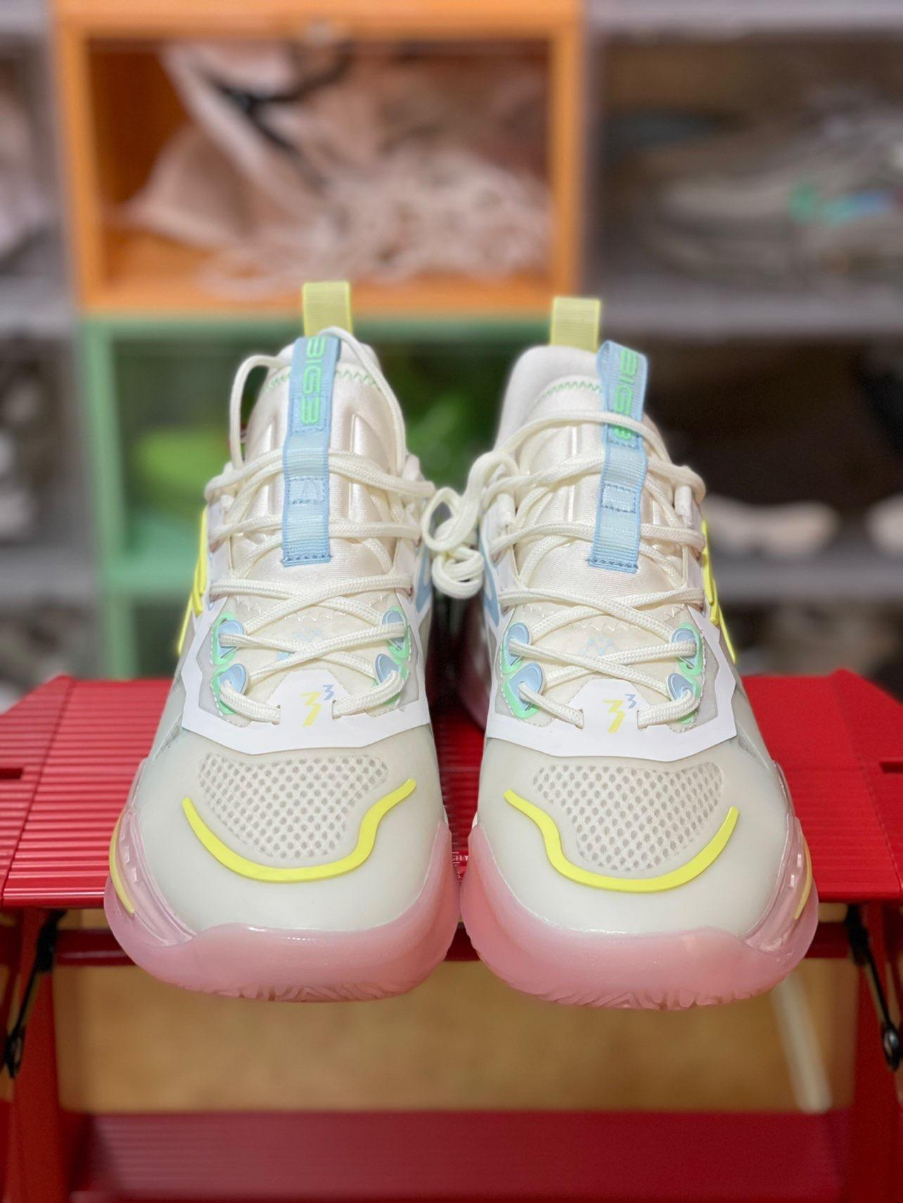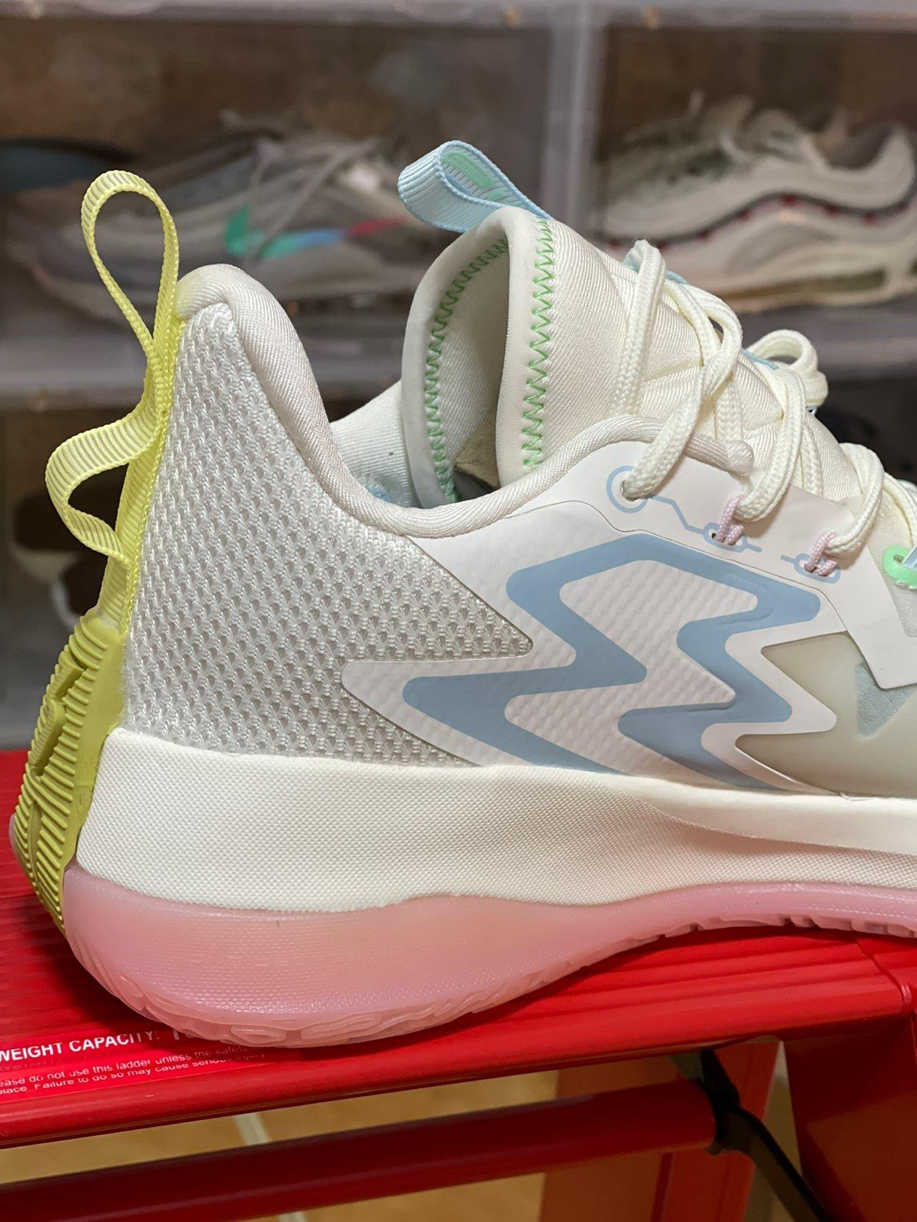 拿到鞋的第一感觉就是清爽,配色以白色为主,辅以亮眼的清新配色非常有夏日感觉。 鞋面采用蝉翼、热压以及织物材质相拼接组成,前掌蝉翼材料下方还有透气网布,进一步提升透气性能。 一体式鞋舌打造半内靴,增加包裹感受,鞋舌顶端的提环还有 361 的品牌 Logo。 鞋头有大面积的外底橡胶上翻,一直延伸到前掌内侧跖骨附近。 蝉翼材质一直延伸至鞋身中段,并有热压材料加持,让球鞋在侧向蹬地发力时有更好的支撑表现,...