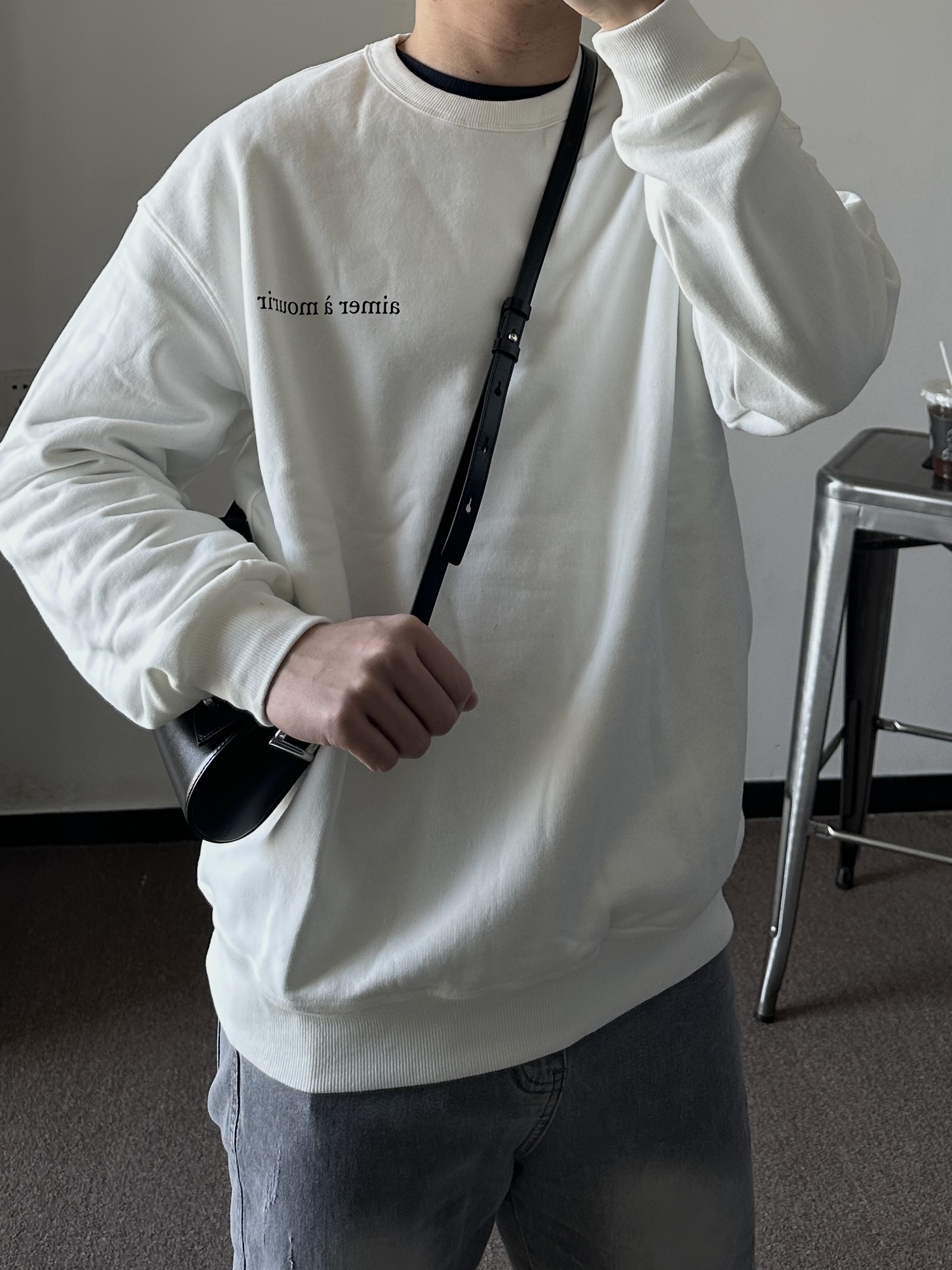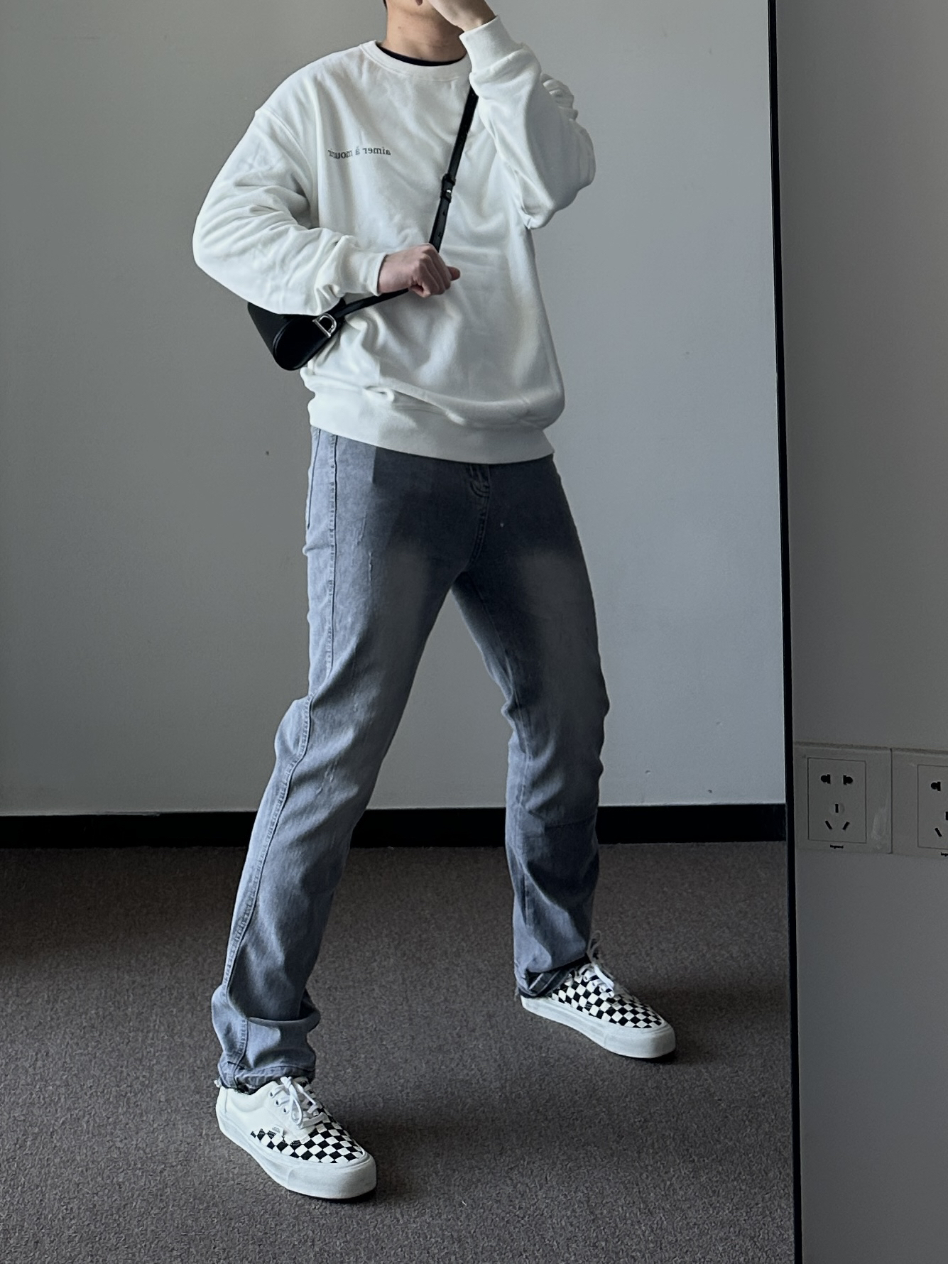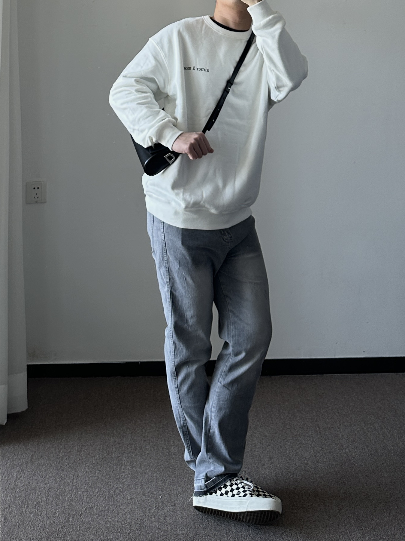 素人也能好看系列~ 174cm/65kg 🧥- 纯白色卫衣除了不耐脏之外,易撘性没问题。短款毛呢夹克,高街风必须整体倒三角。卫衣上身L,外套上身M。 👖- 微弹面料,修腿版型~ 👟- 挑鞋楦窄的,反季节买vans、匡威。真香~
