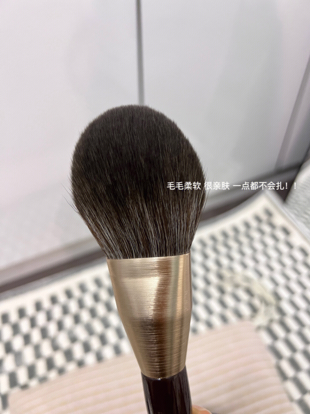 本来觉得自己的散粉刷已经很大了 直到买到这个!!拿到手真的惊呆了 赶上我手掌的程度 毛毛很柔软 完全不会扎脸!! 上妆扑粉也很匀