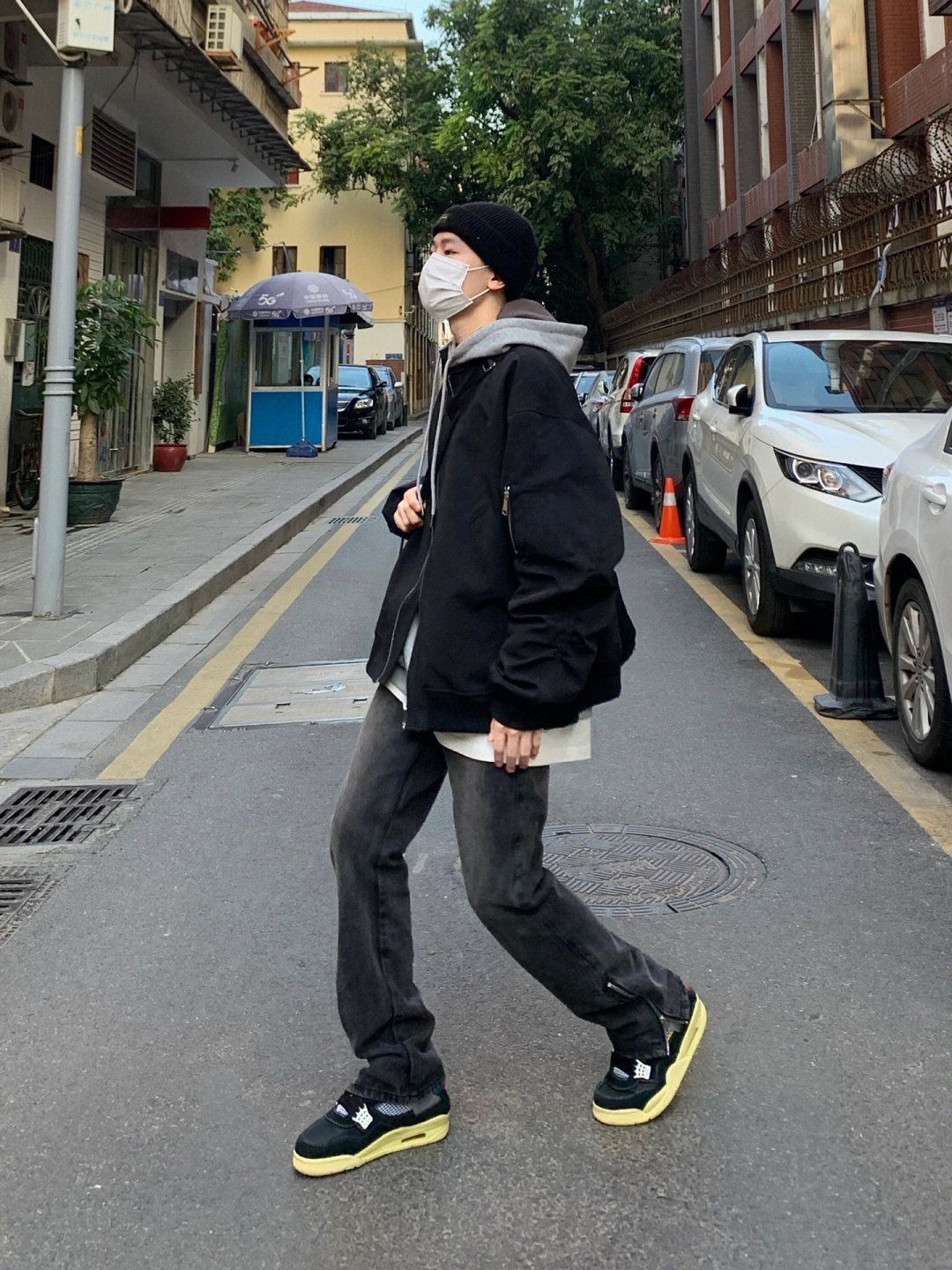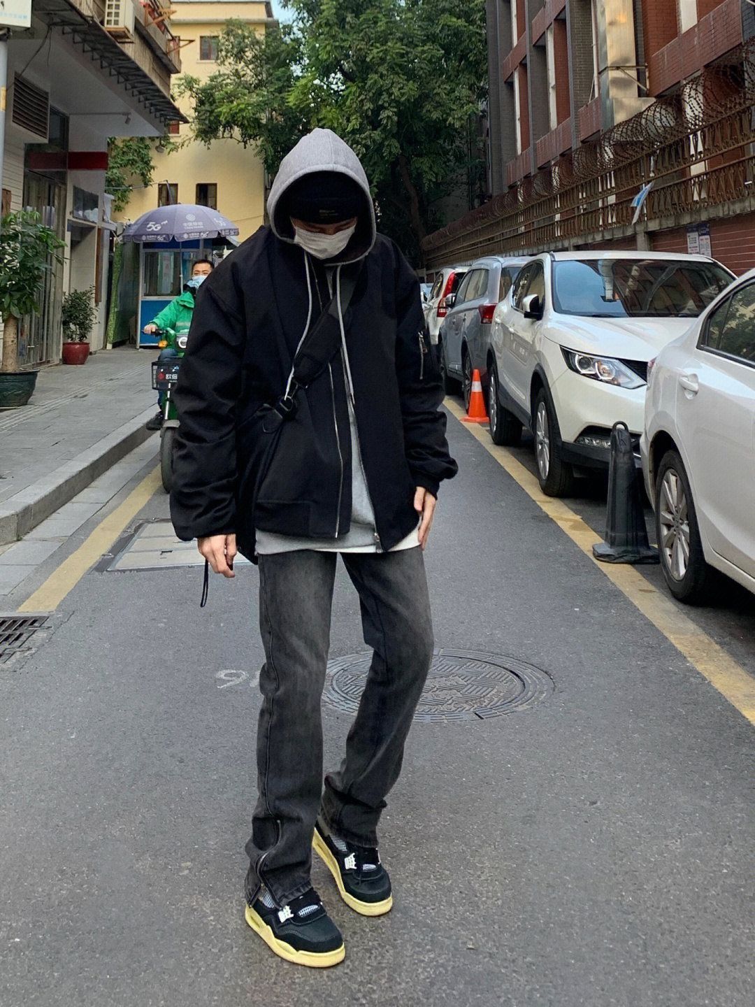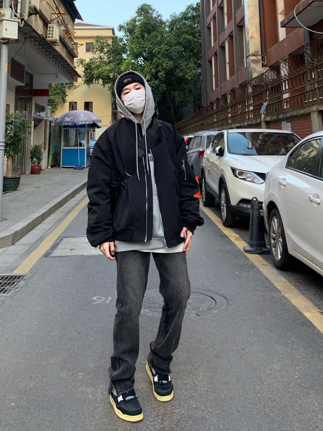 👔这一件飞行夹克真的很帅 版型跟面料都很很绝穿一件太单调里面可以+一件连帽卫衣层次感就出来了 👖搭配这一条黑色拉链牛仔裤真的不错 宽松直筒的版型很修身显瘦 好看又百搭