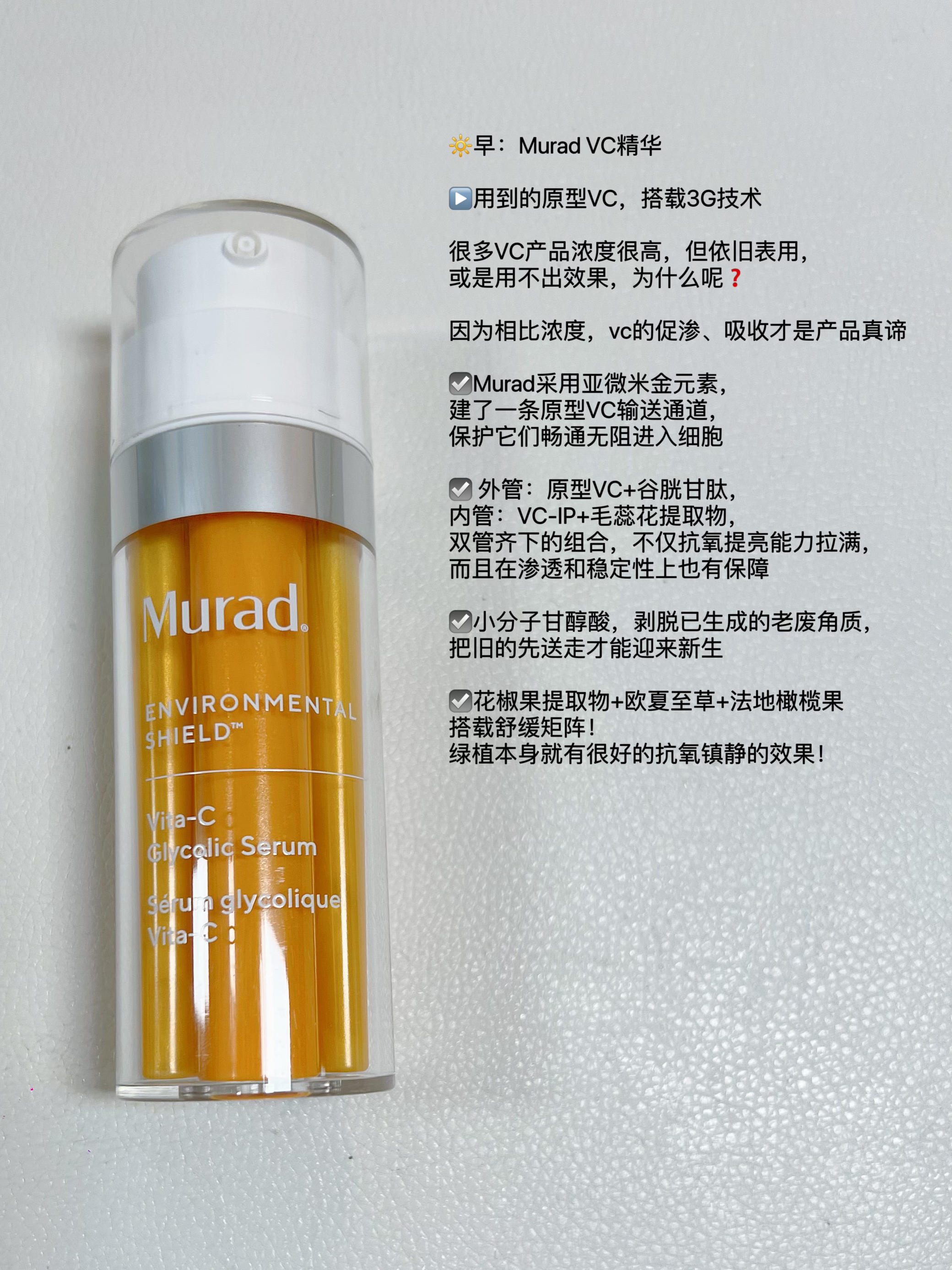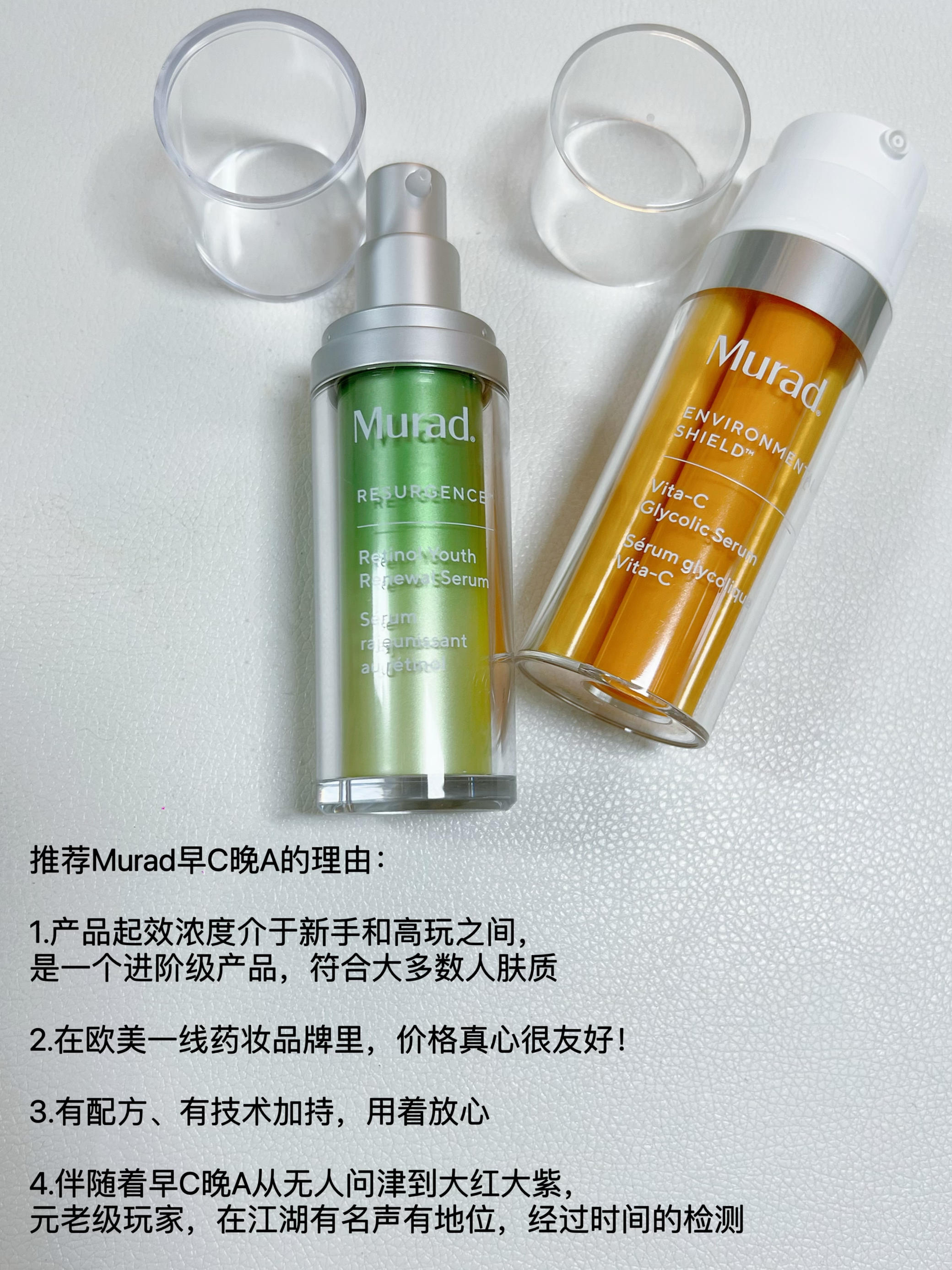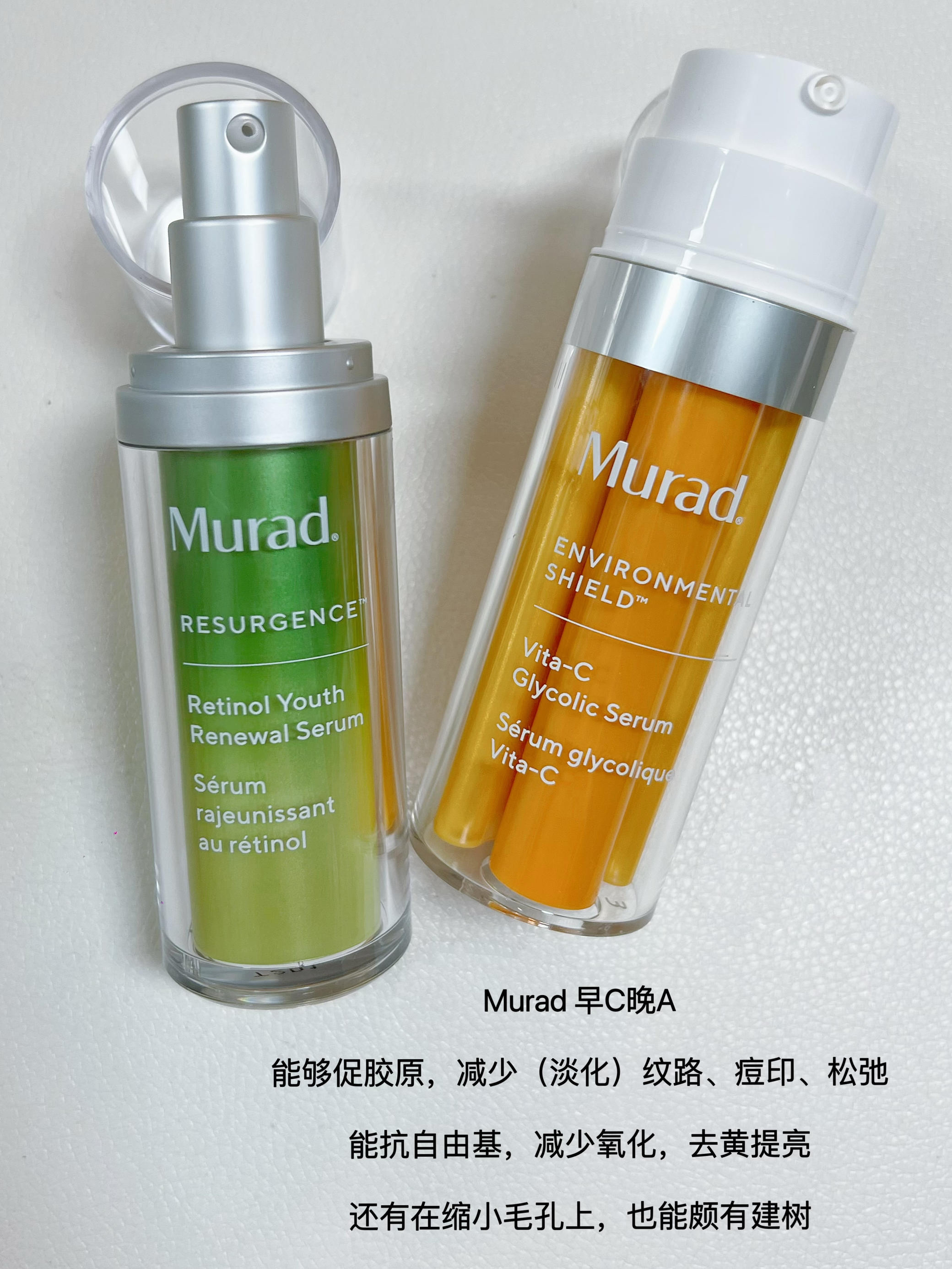 本篇笔记关联了Murad/慕拉得 视黄醇A醇精华 抗老紧致淡化细纹 改善肌肤、Murad/慕拉得 黄金VC光感双管面部精华液 抗氧化 提肤色 1瓶、【小样】Murad/慕拉得 A醇视黄醇面部精华液小样 5ml等商品,为用户提供真实的使用体验和购买参考。