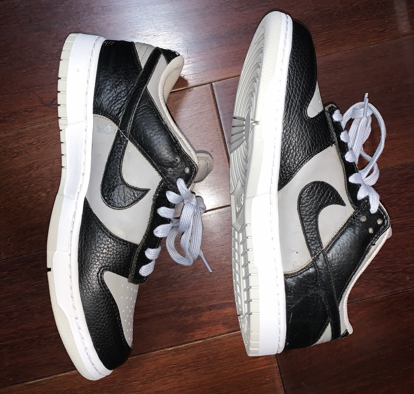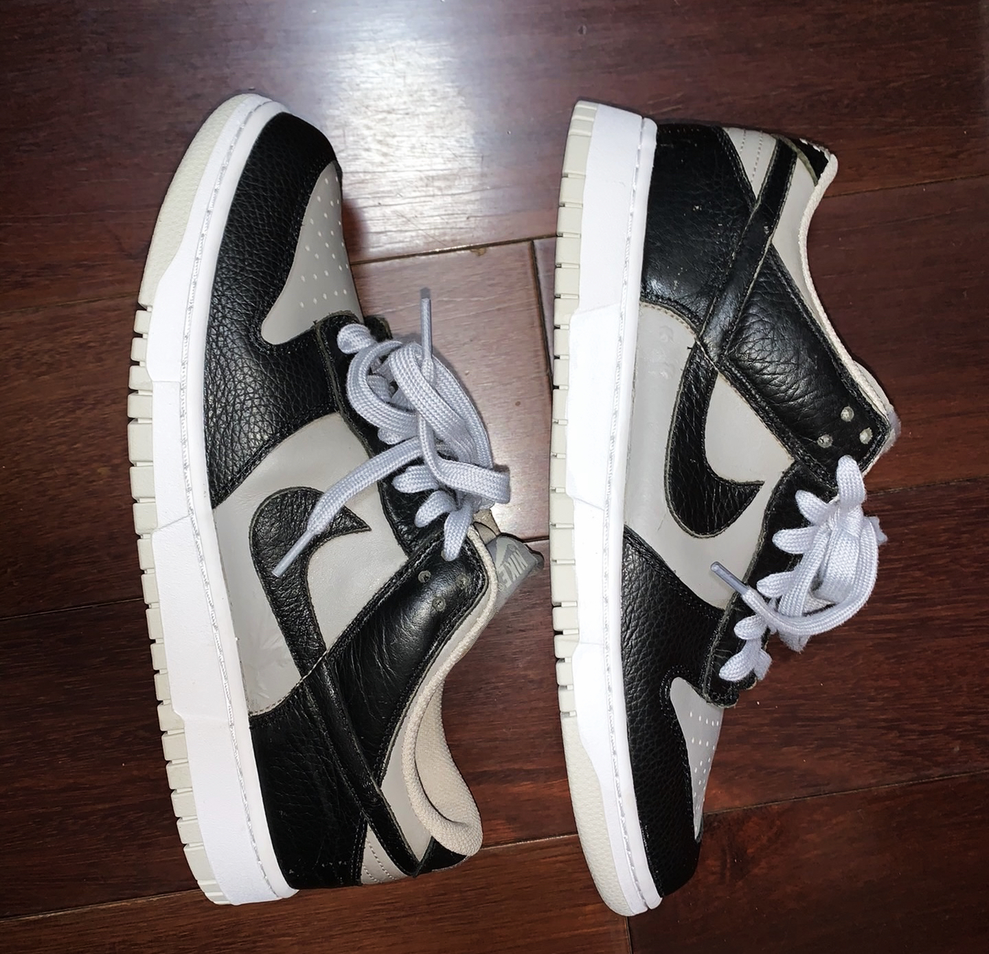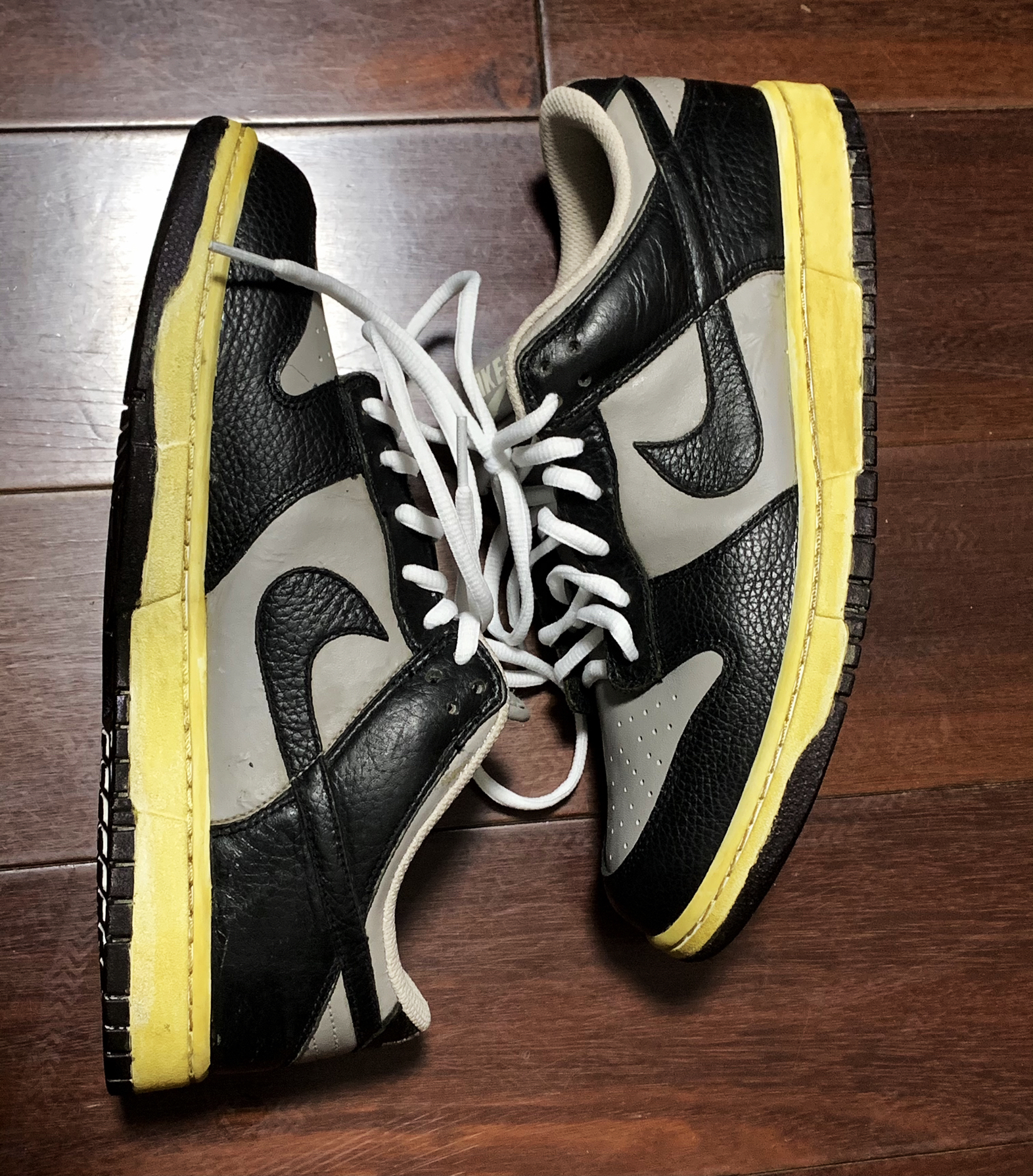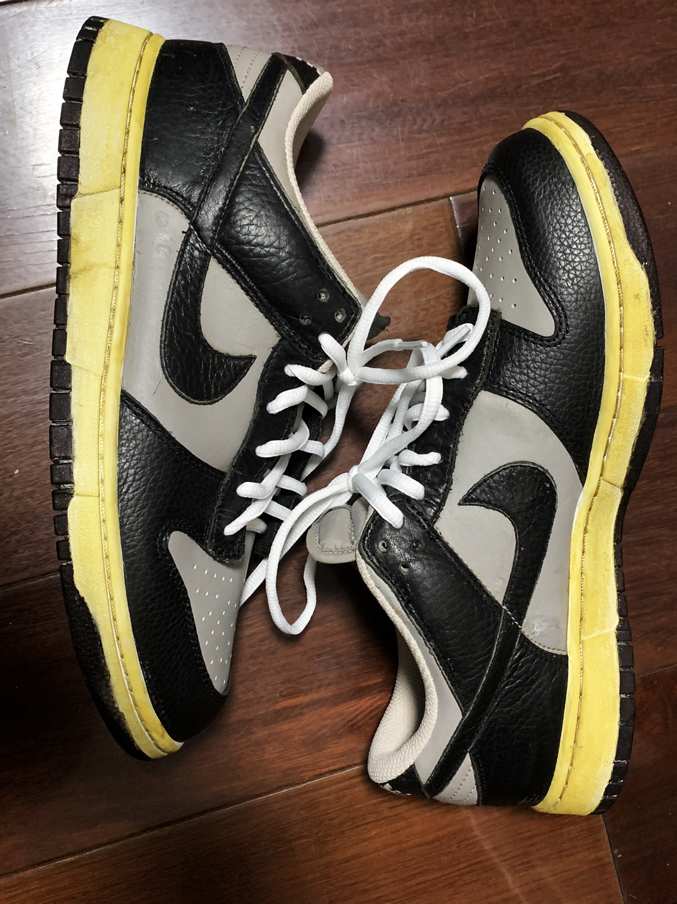 👟球鞋名称:Nike Dunk Low Black Light Bone 低帮/灰色/黑色 🔢货号:318020-006 (球鞋中古,得物等app都已经搜不到了,识货上还有) 🧵整个过程手工操作,上手容易,不怎么耗时 📷p2、p3是原来的样子,p4、p5是做旧后效果 整个效果对比奉上,大家可以参考一下,喜欢的可以自 己动手试试。 👀手工做旧效果肯定比不上自然...
