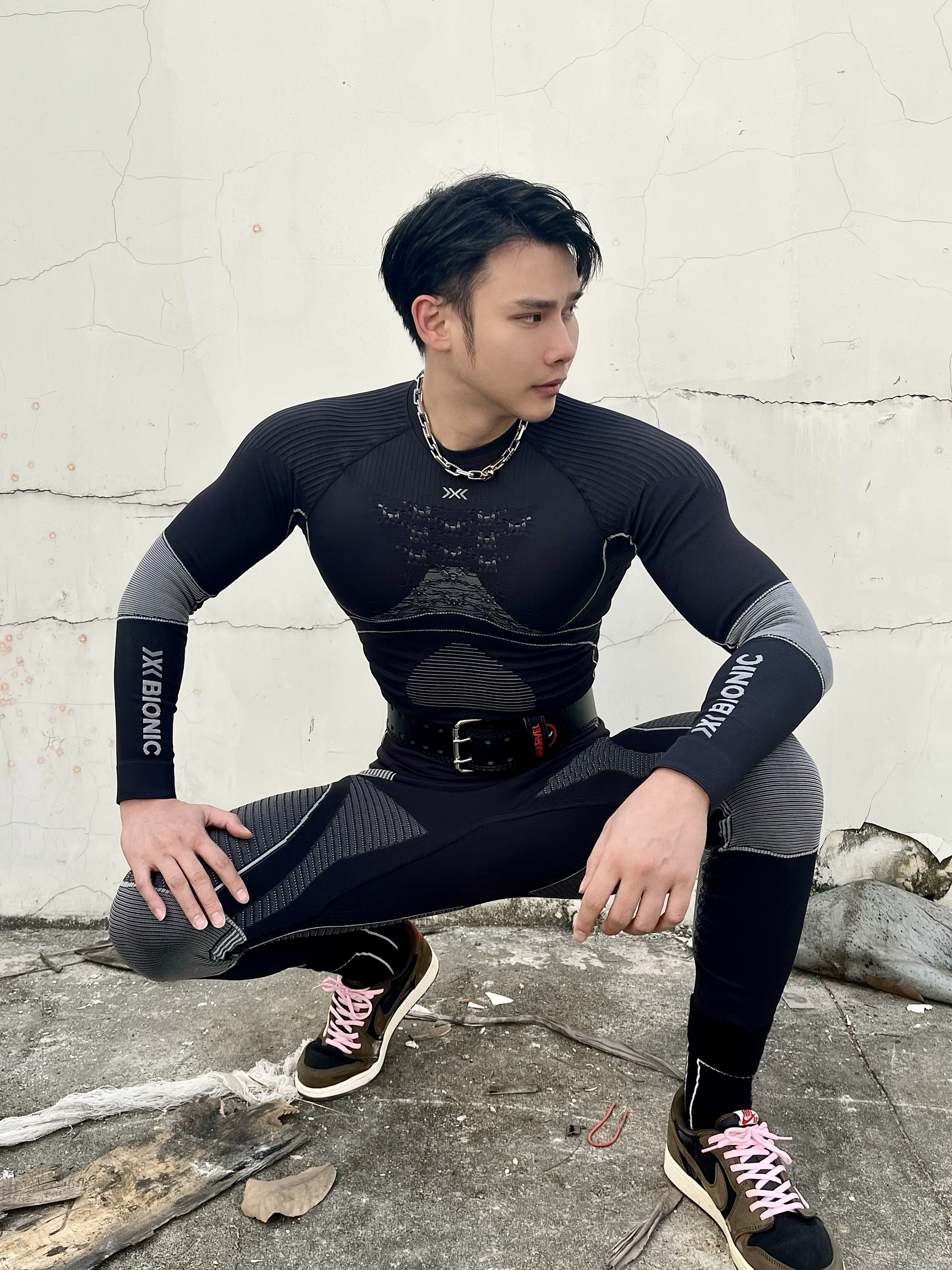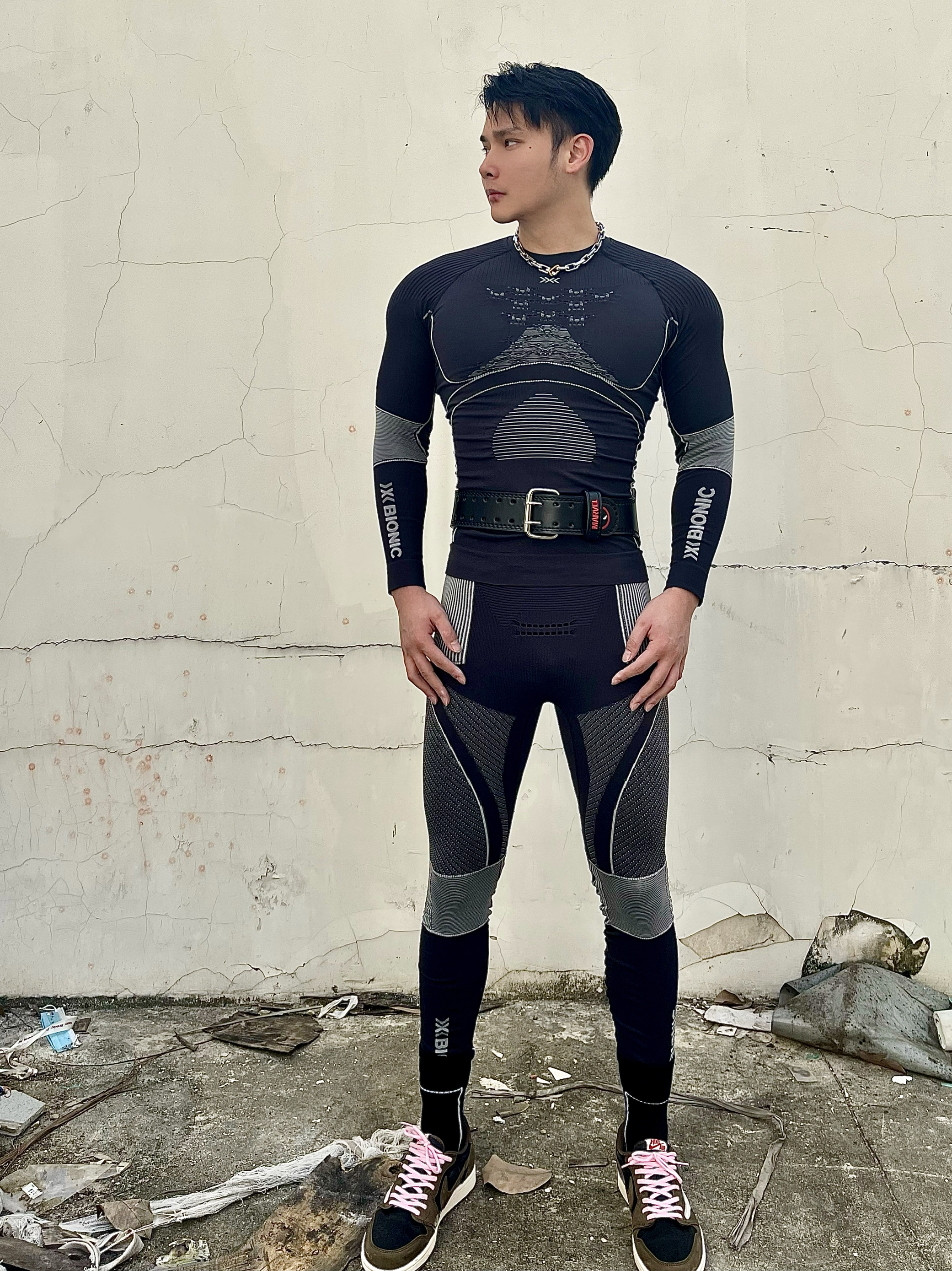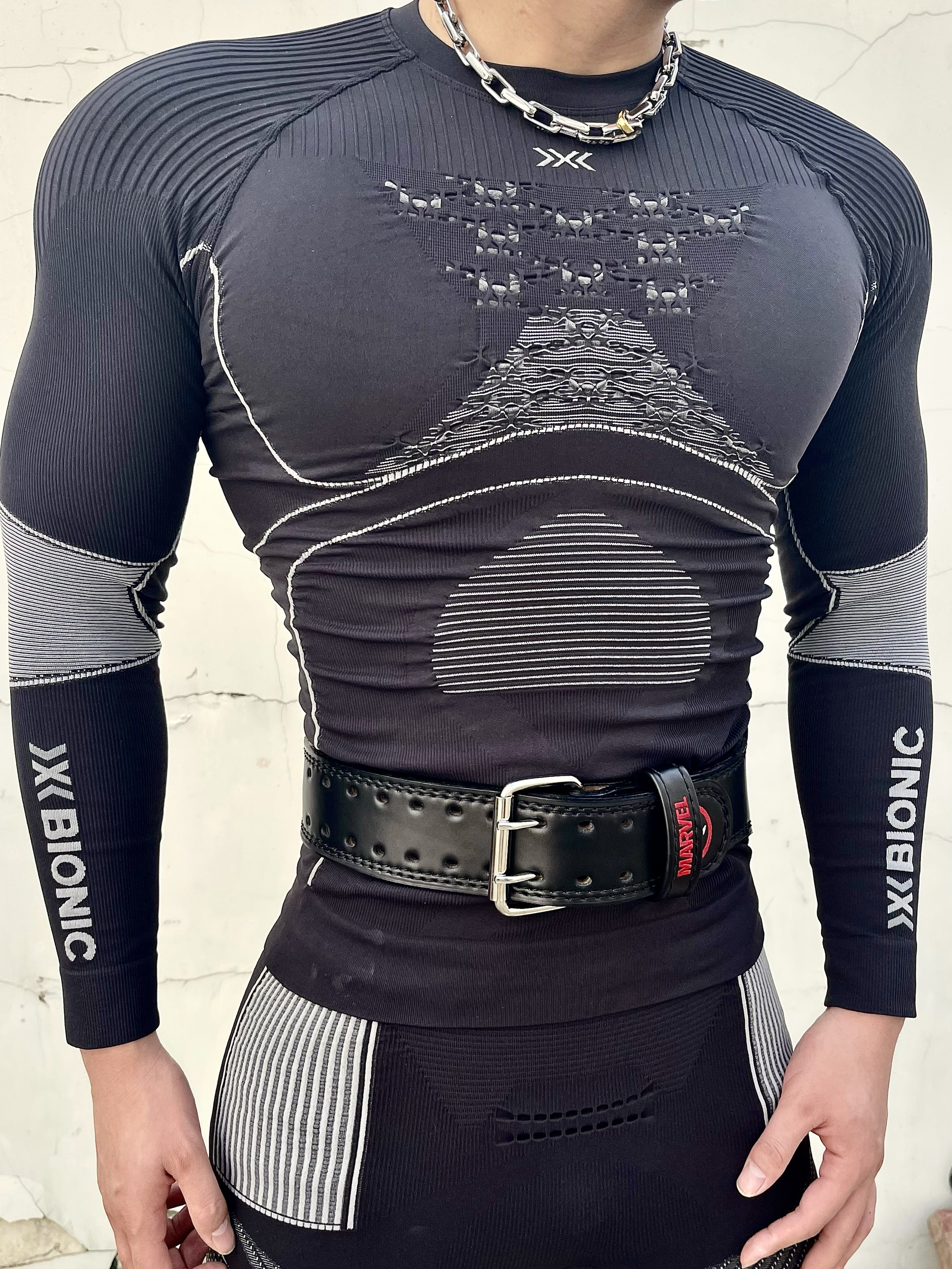 健身服:X-BIONIC 腰带:RAWNESS 项链:RAWNESS
