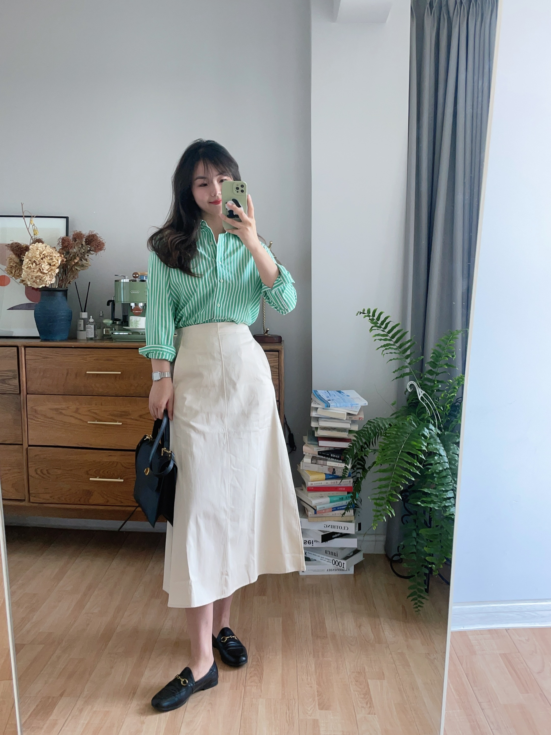 hey 这里是每天记录穿搭的社畜日记。 科室剩两人 苦命冬阴工 只能好好穿搭让心情好一点 藏蓝工装外套长度合适短人必备(优衣库428991) 蓝色条纹衬衫同色系搭配很温柔的感觉 棉质的衬衫上身很舒服 竖条纹显瘦干练 垂坠西裤拉伸腿长 是短腿的福音了🤣 同色系复古跑鞋代替皮鞋保留一点少年感 手表搭了同色系的藏蓝小方块做呼应 以上我乱搭的,轻喷。🙈