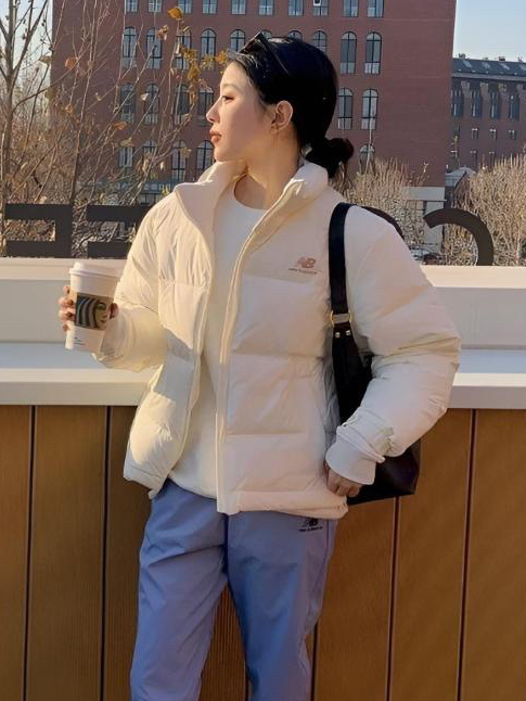这款是New Balance 加绒保暖短款羽绒服 女装 ,这款真的是氛围感满分啊,短款的羽绒服更加修身更加显气质! 搭配图中小姐姐的这一条牛仔裤真的也太好看啦,很适合出去玩的时候搭配上这一身超级有气质的穿搭 这一身穿搭真的是回头率满分的那一种,也太好看太温柔了 (图源来自网络)